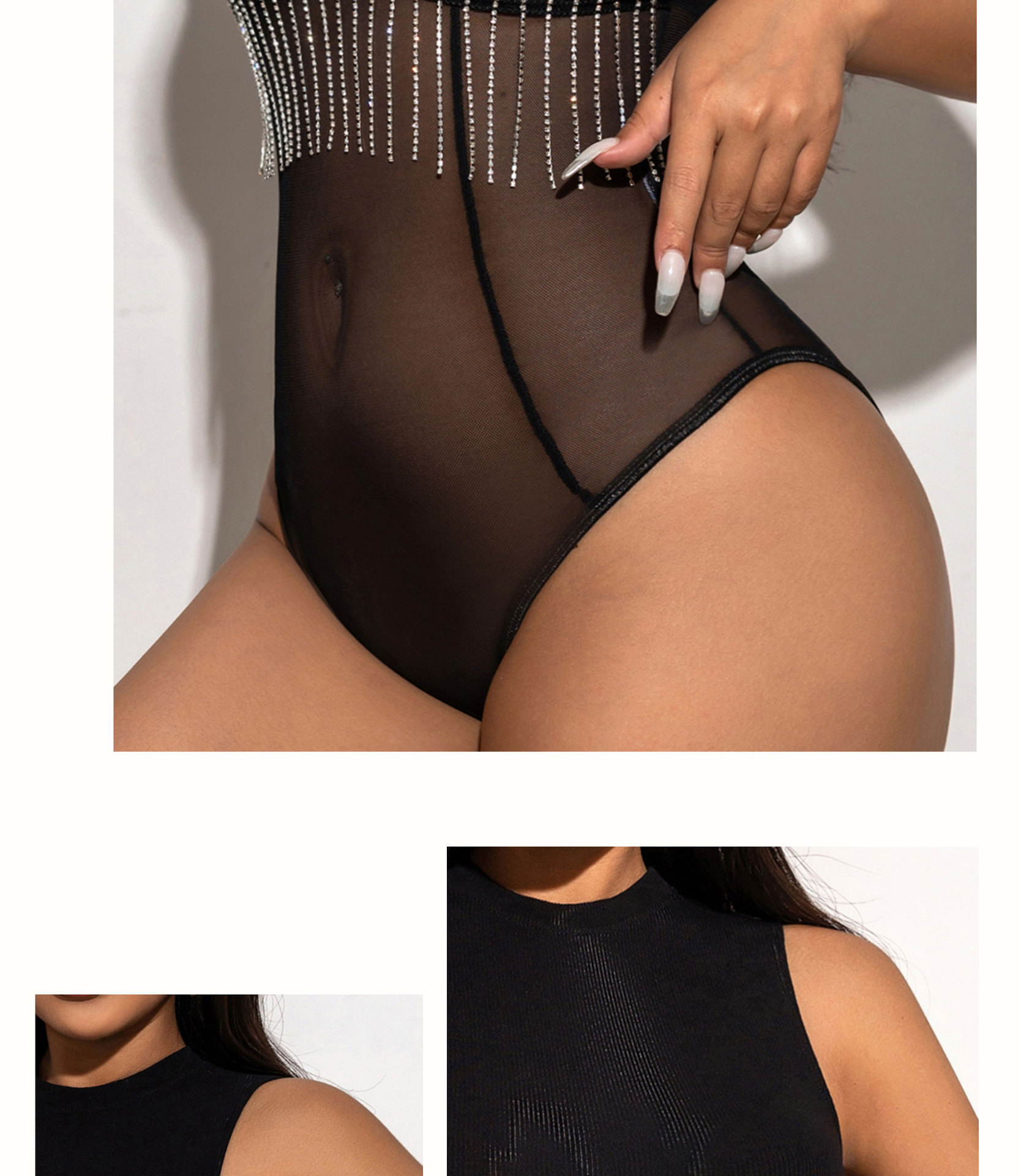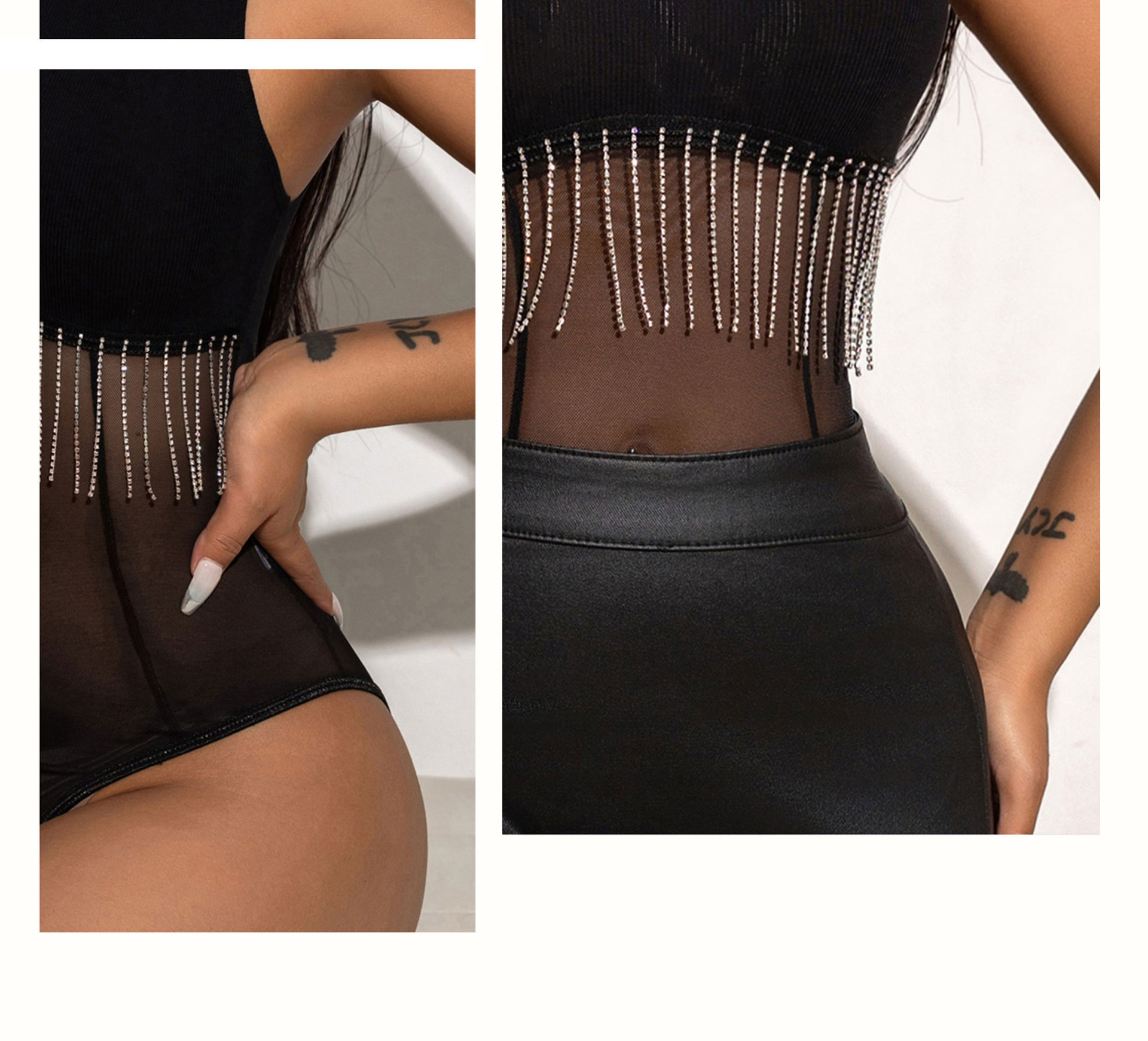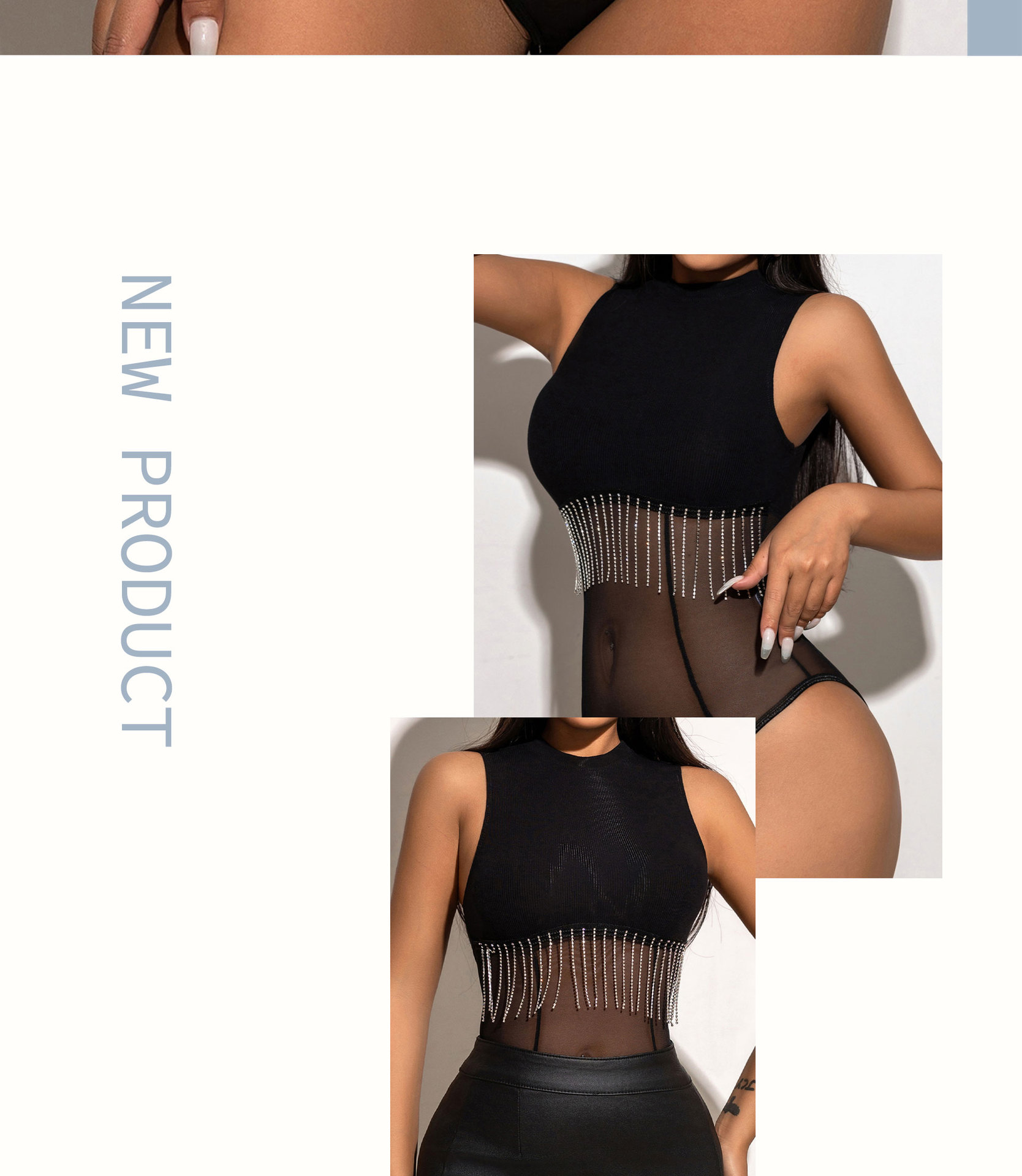 2024 лето новая европейская и американская горячая девушка сетчатая пряжа сшитый костюм с бриллиантами цепочка кисточки без рукавов обтягивание внутри жилет