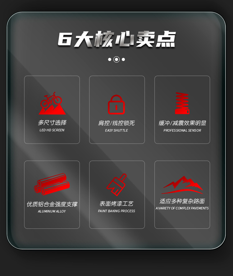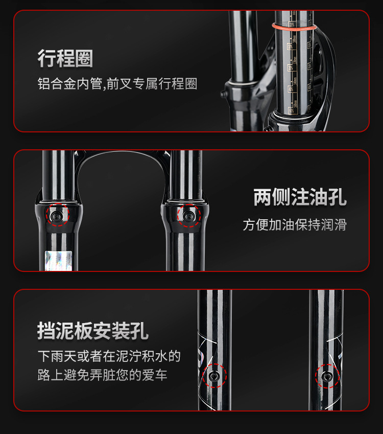2. It features an oil and gas damping system that provides a smooth and comfortable ride on rough terrains, absorbing impacts and vibrations. 它采用油气阻尼系统,可在崎岖地形上提供平稳舒适的骑行体验,吸收冲击和震动。