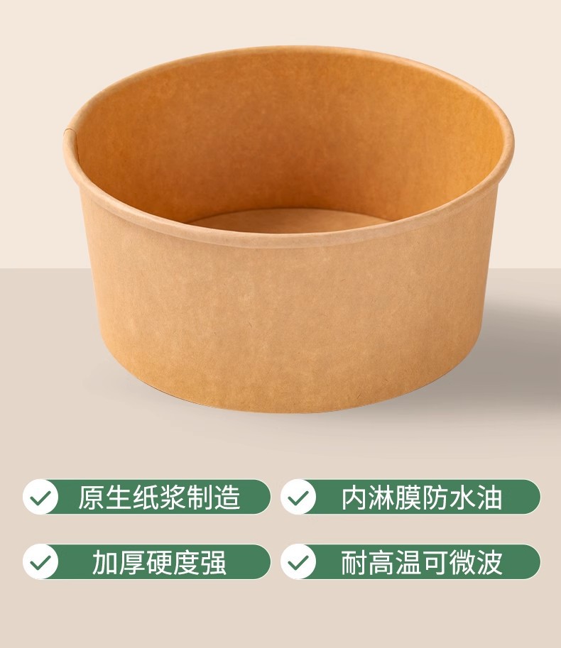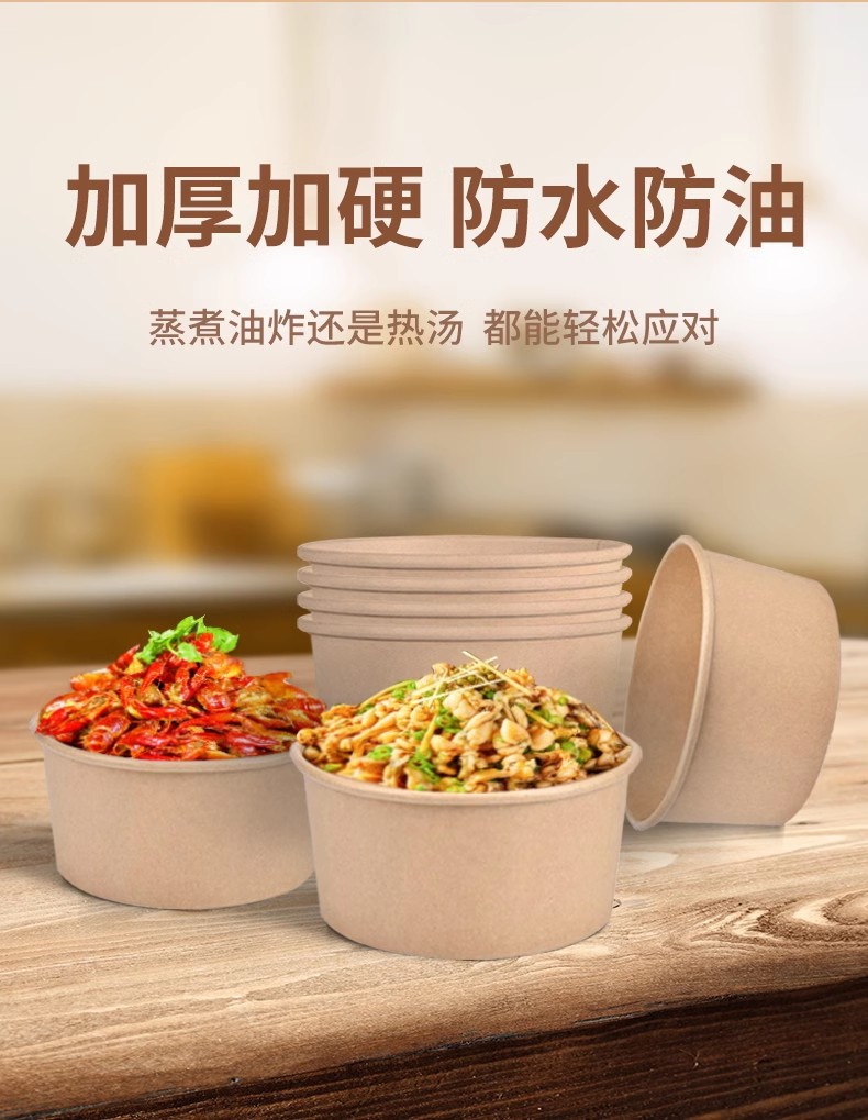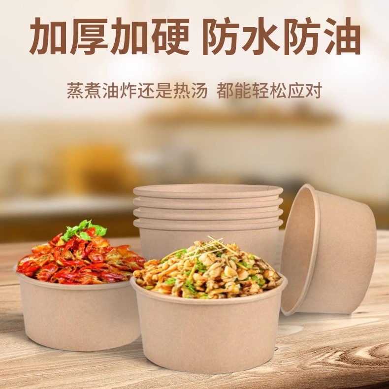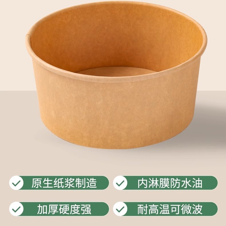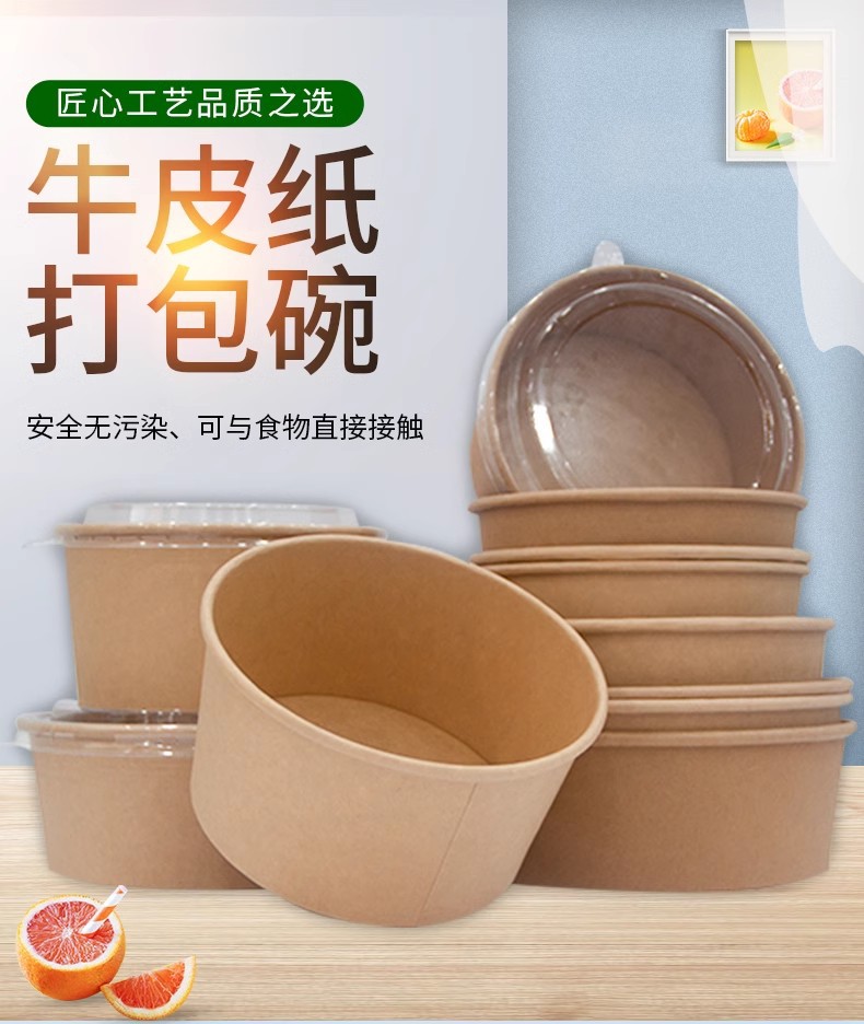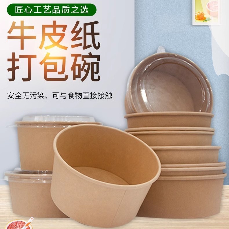 Одноразовая миска из крафт-бумаги, салатница, миска для лапши, уличная бумажная миска для закусок, утолщенная упаковка для фаст-фуда, бумажная миска, миска для ланч-боксов