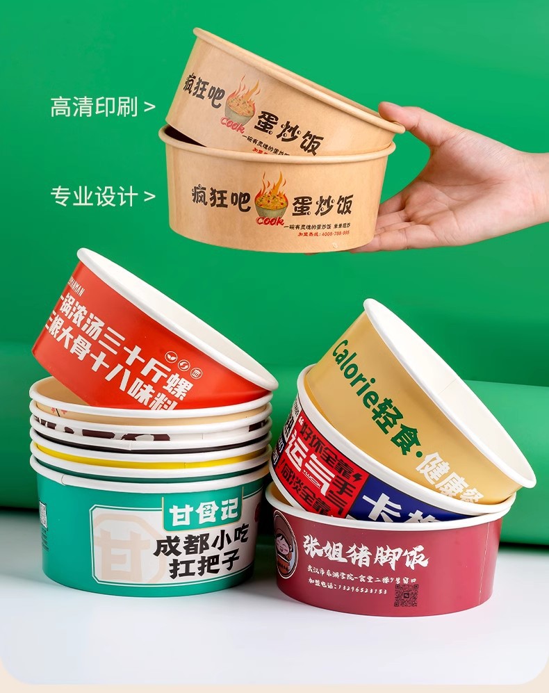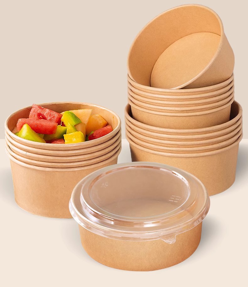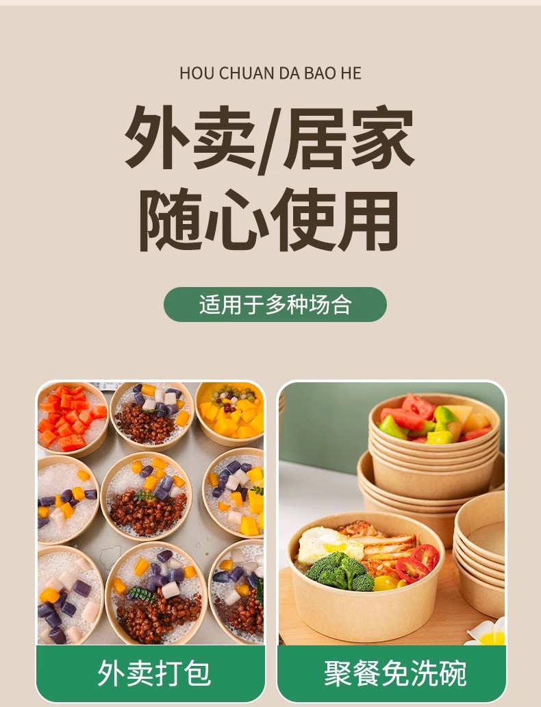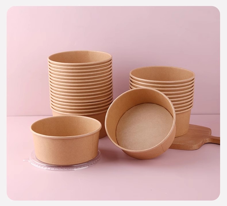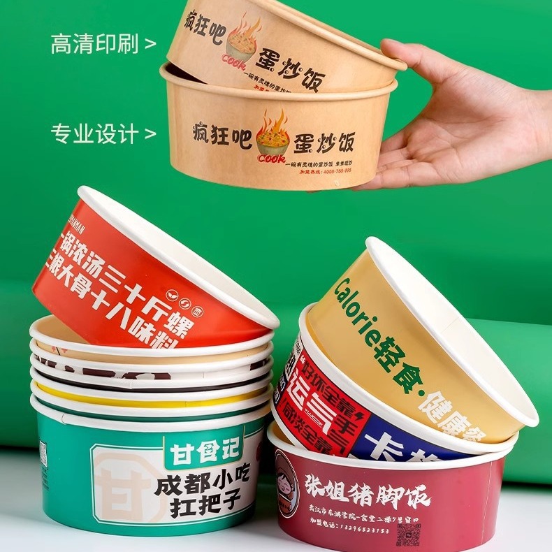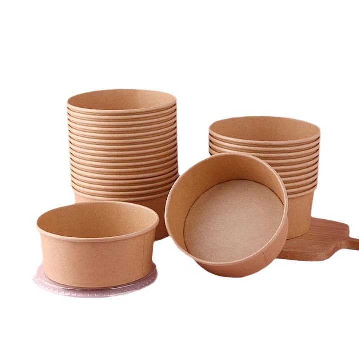 Одноразовая миска из крафт-бумаги, салатница, миска для лапши, уличная бумажная миска для закусок, утолщенная упаковка для фаст-фуда, бумажная миска, миска для ланч-боксов
