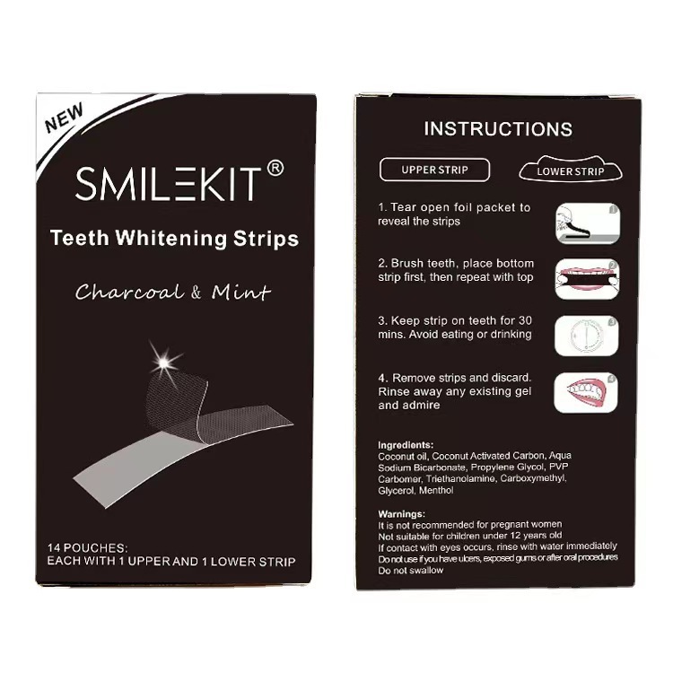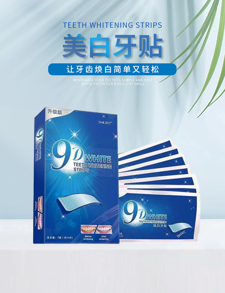 佩戴牙贴30分钟,取下,即可见不一样自己(remove the strios and discard after 30 minutes)