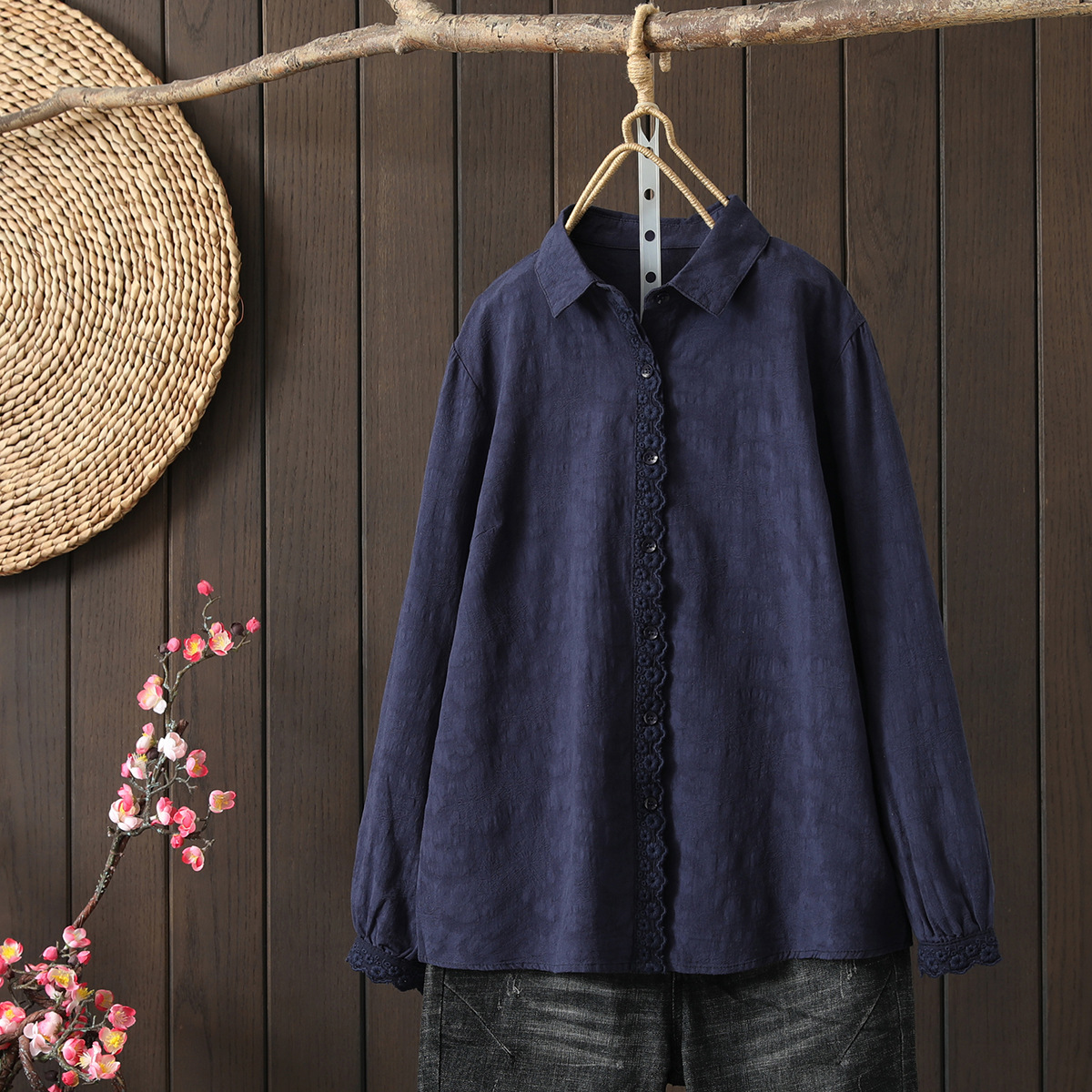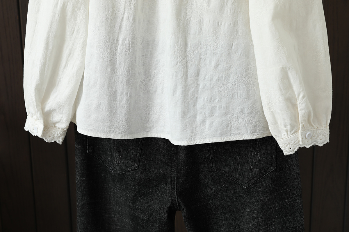 Новая весенне-осенняя женская рубашка с длинными рукавами и жаккардовыми манжетами на планке, элегантная рубашка для похудения.