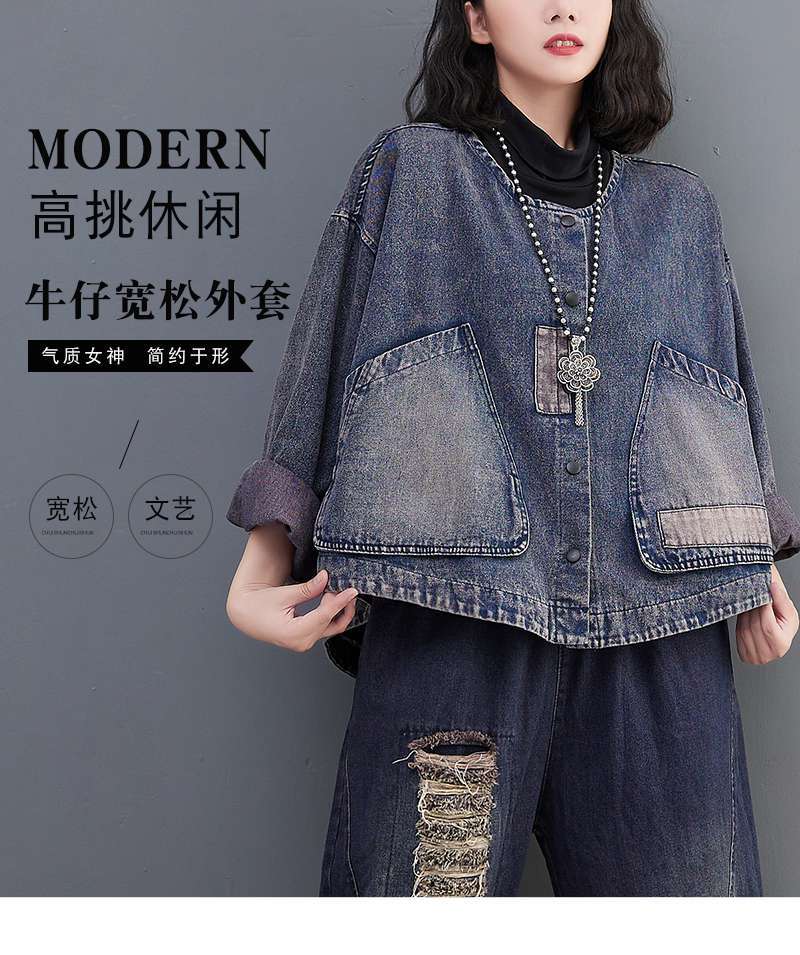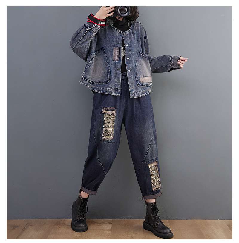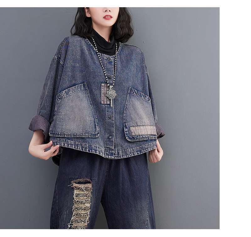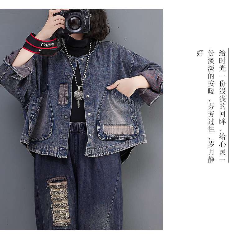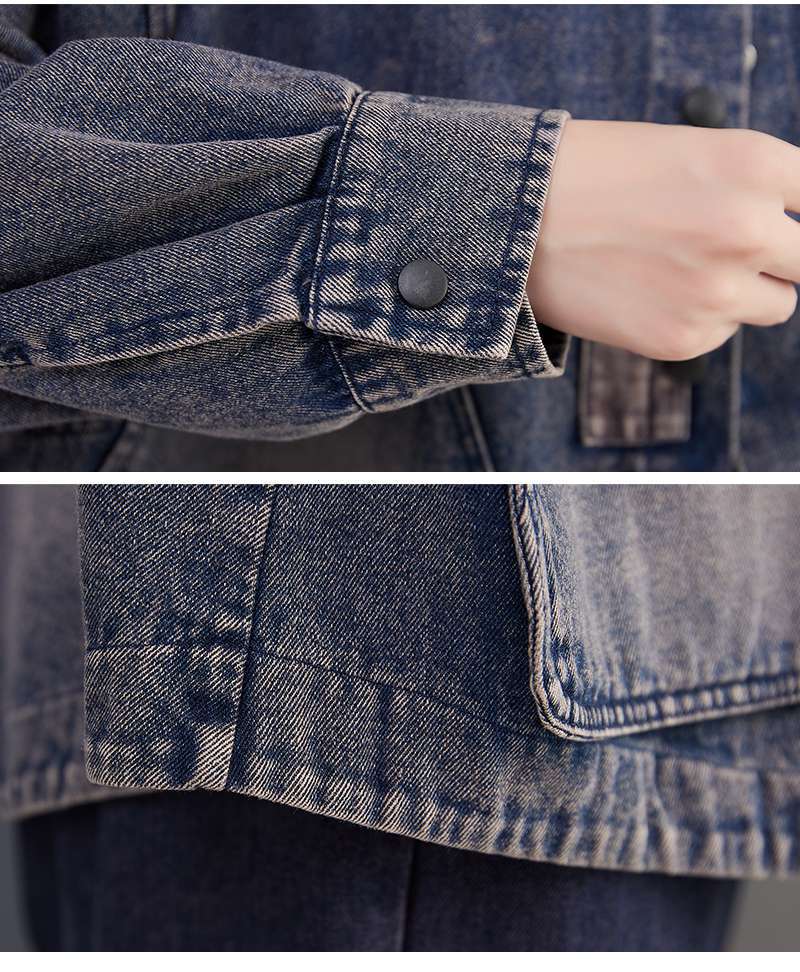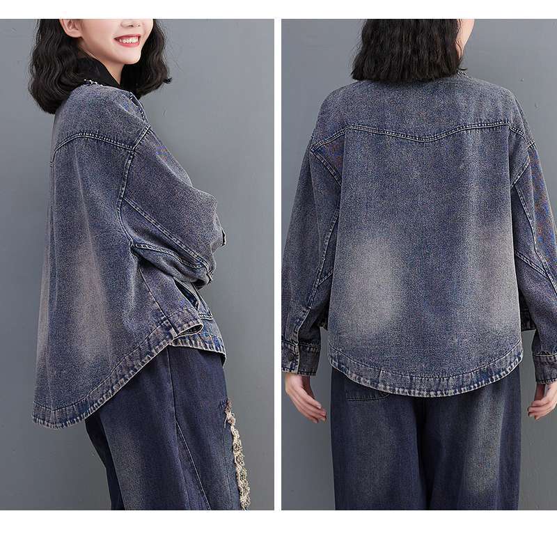 Настоящий выстрел в наличии джинсовое пальто Женская Осень 2024 с длинным рукавом темная ретро свободная Короткая Повседневная Женская одежда с вышивкой