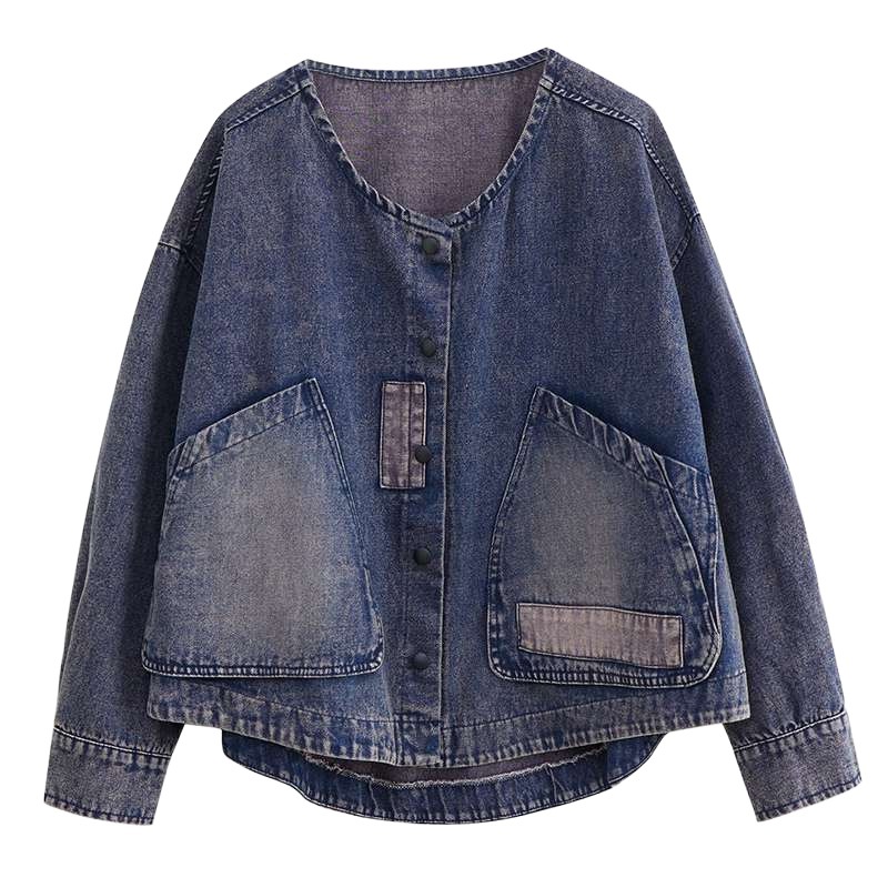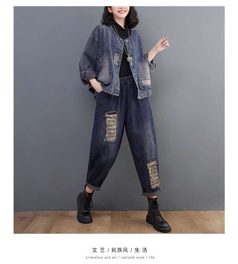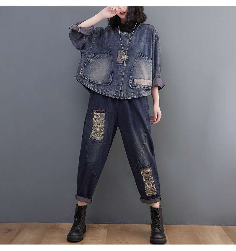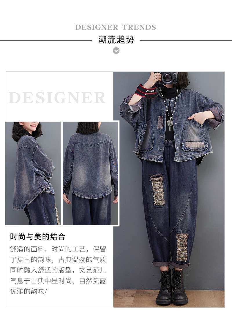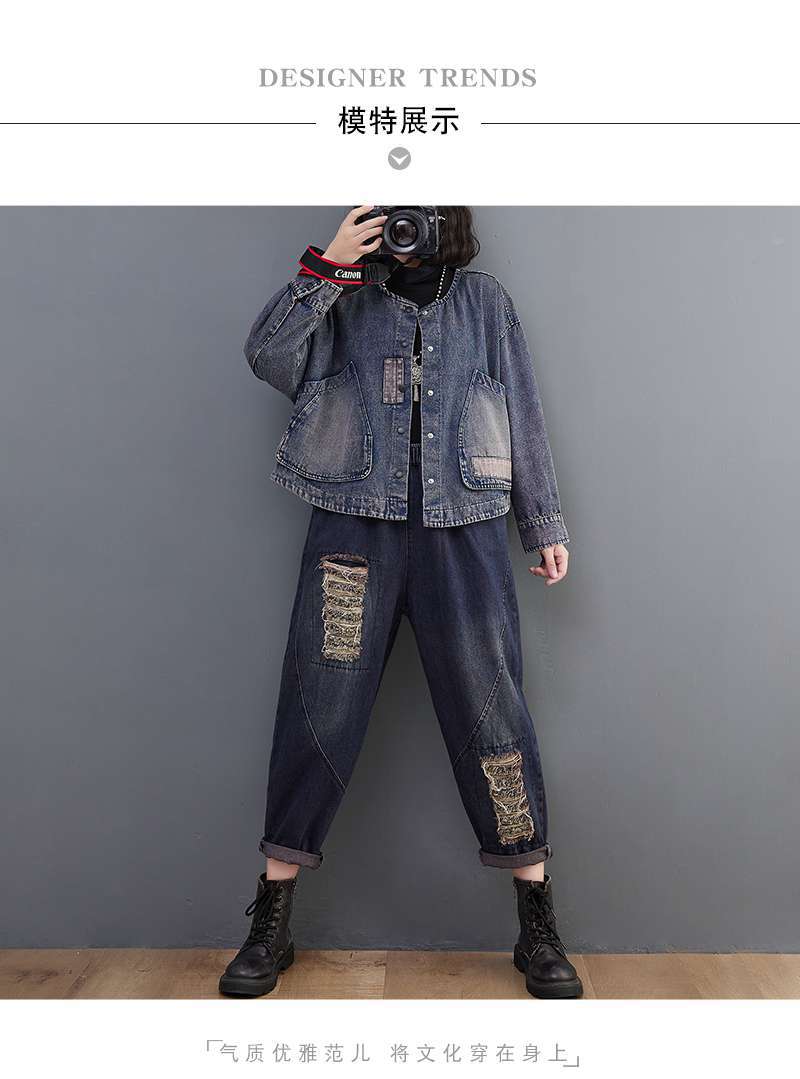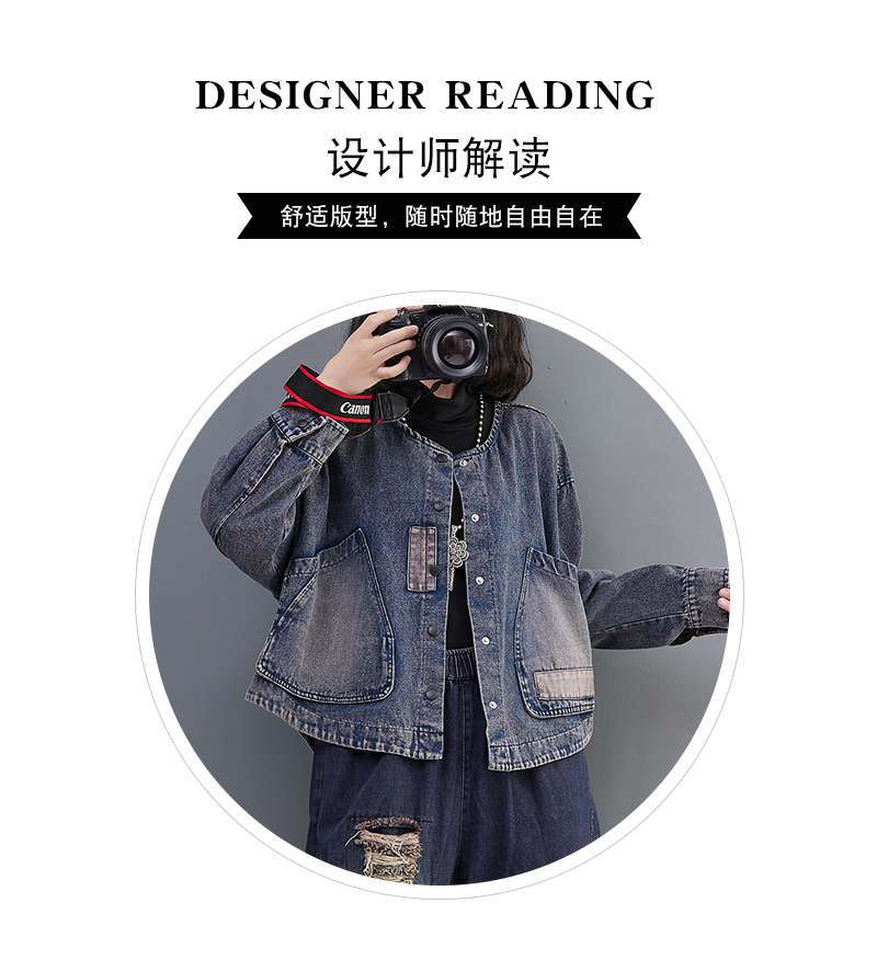 Настоящий выстрел в наличии джинсовое пальто Женская Осень 2024 с длинным рукавом темная ретро свободная Короткая Повседневная Женская одежда с вышивкой