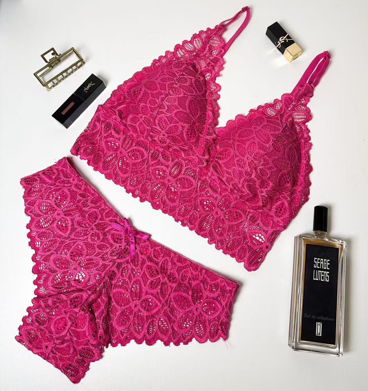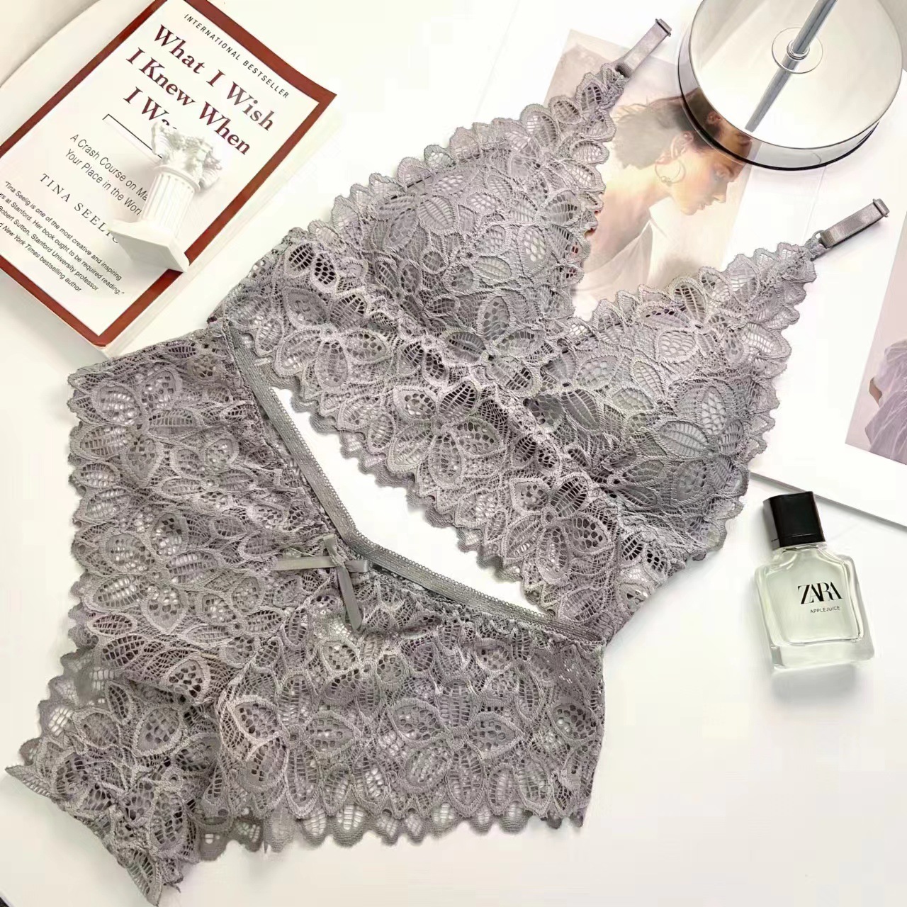 Комплект с бюстгальтером для женщин, летний стиль, дышащий и приятный для кожи французский бюстгальтер без ободков, сексуальный кружевной комплект из двух предметов