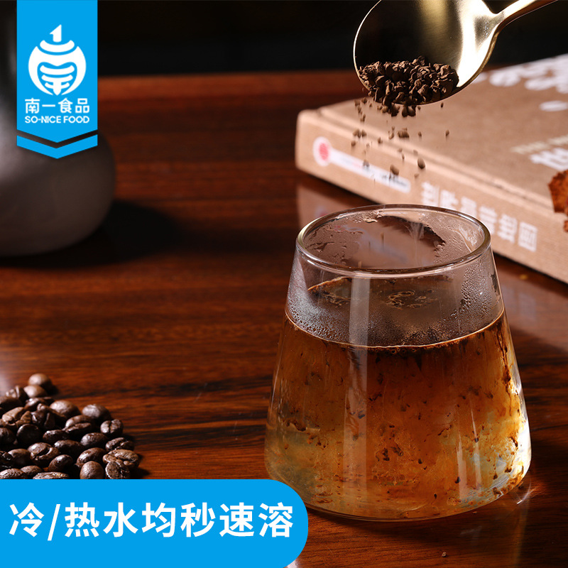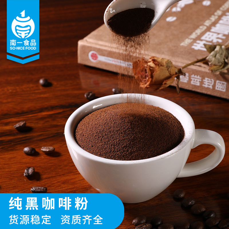 Чистый черный кофе в коммерческом растворимом кофейном порошке на заводе