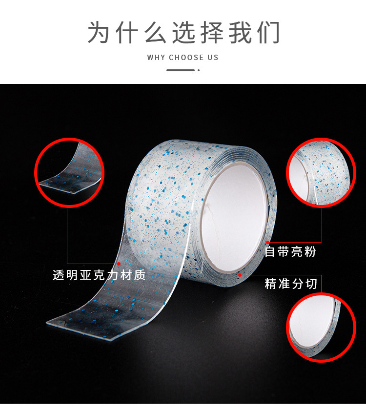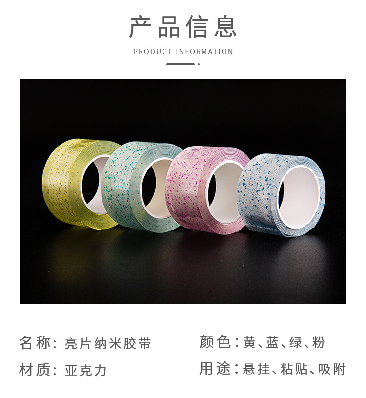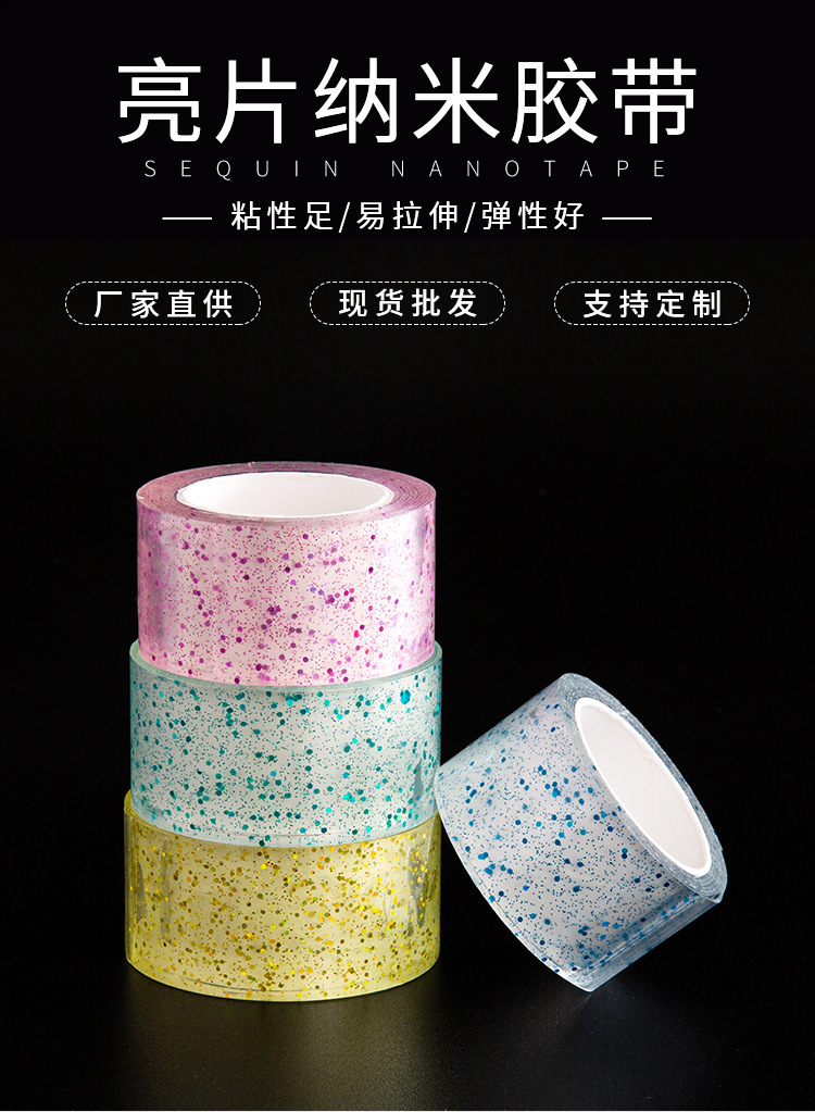Новая прозрачная красочная нано-двусторонняя лента с блестками, блестящая пудра для домашних животных, волшебная пленка, популярная бесследная лента для выдувания пузырей