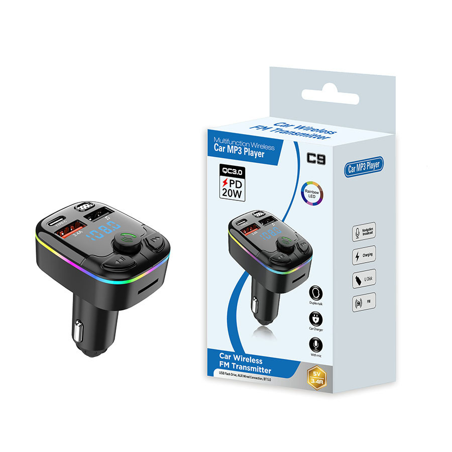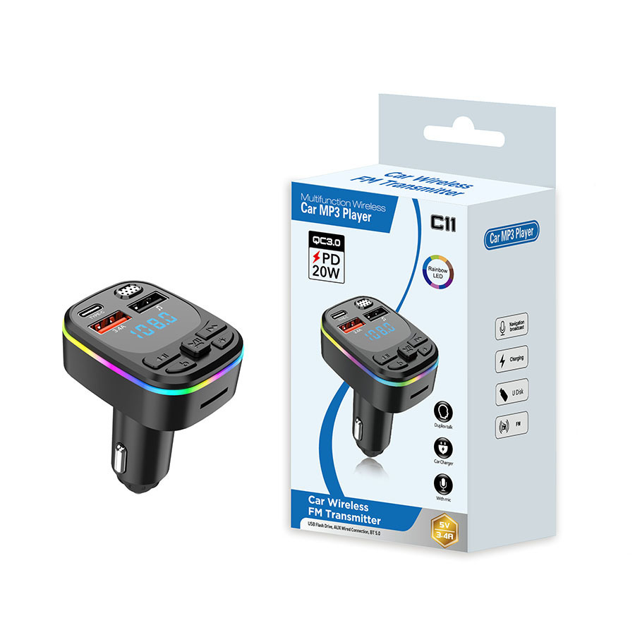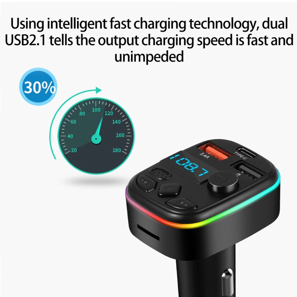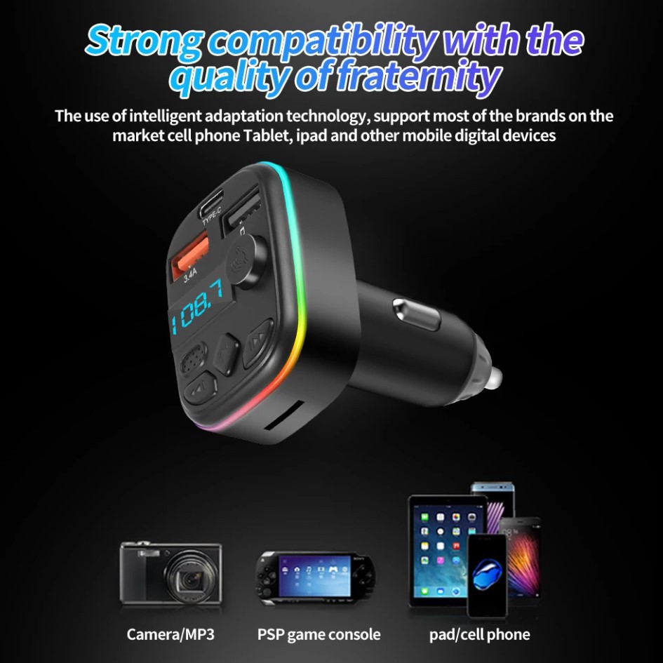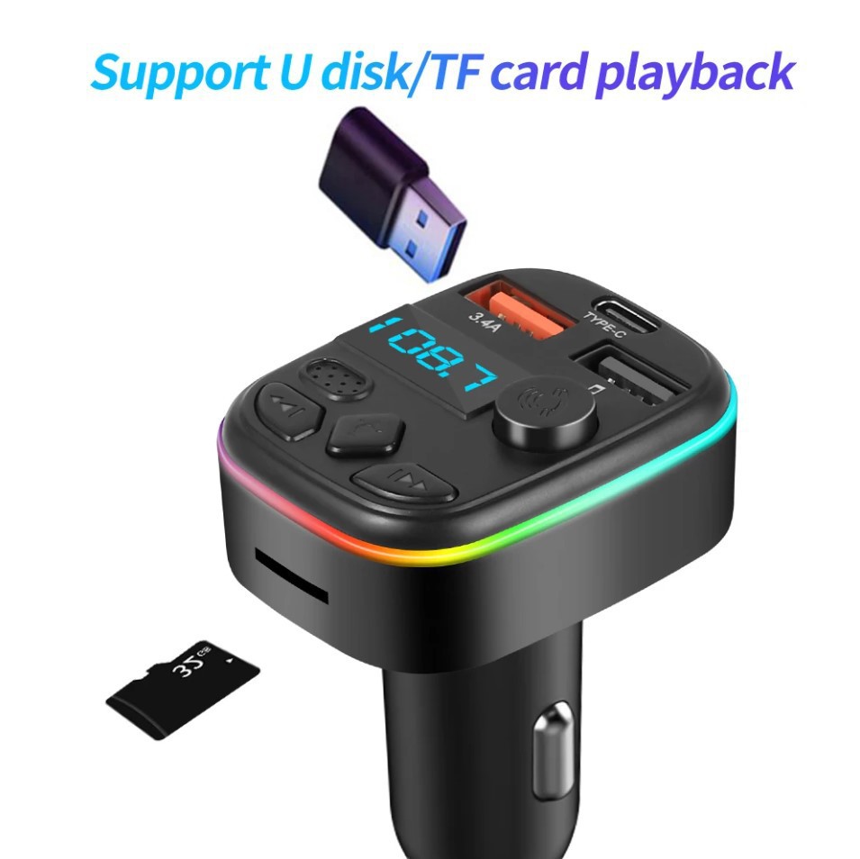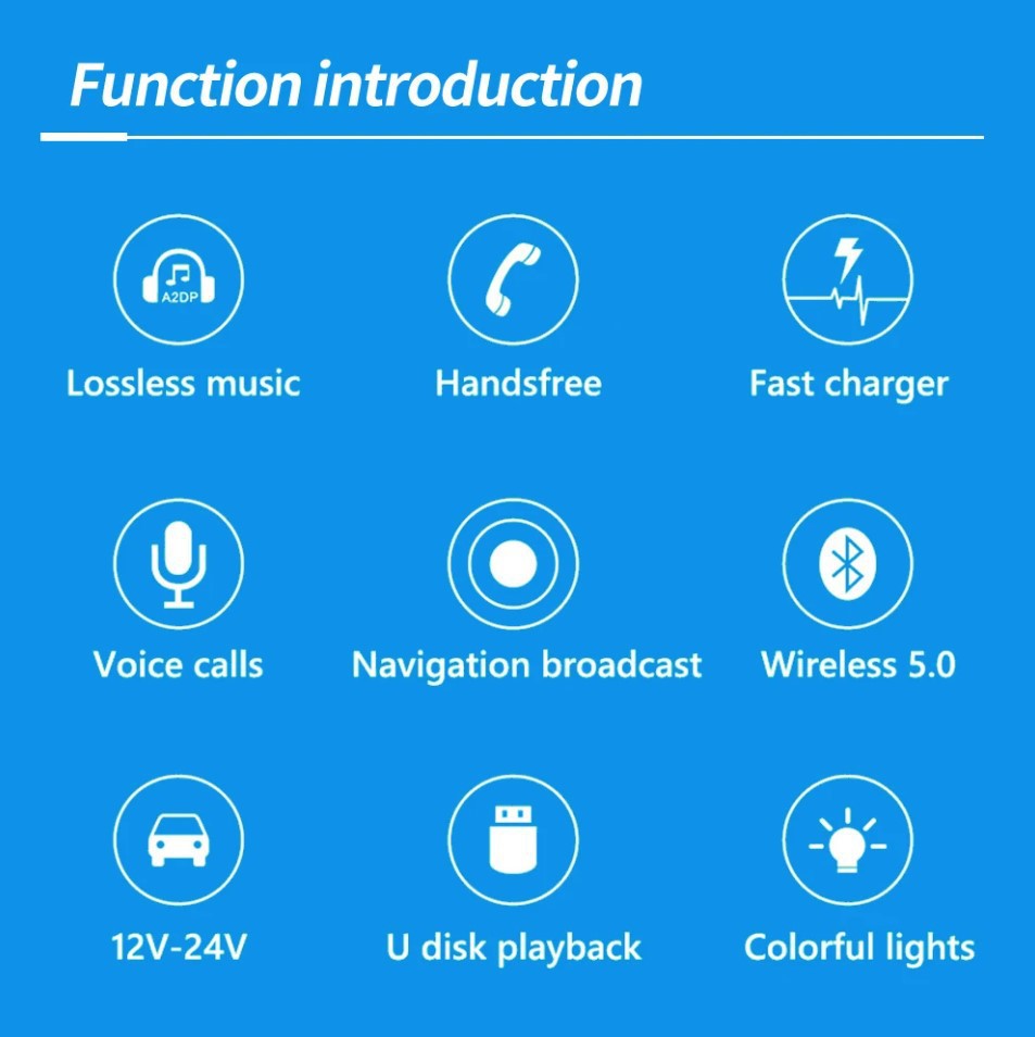 特点:款式新颖,足5V3.1A充电功能,炫彩灯,Type-c口充电,可插TF卡/U盘支持32GB,12-24V车型通用。