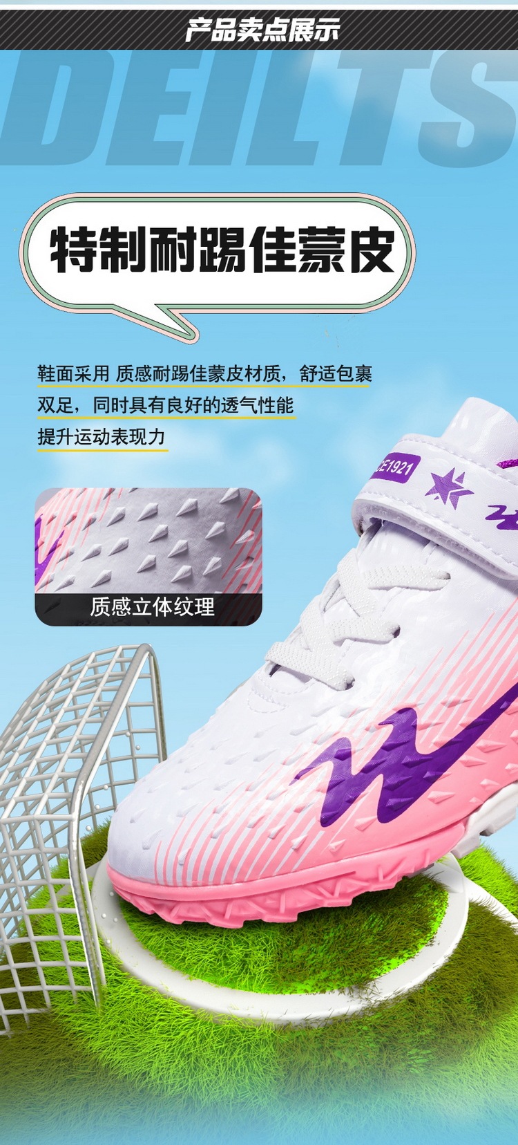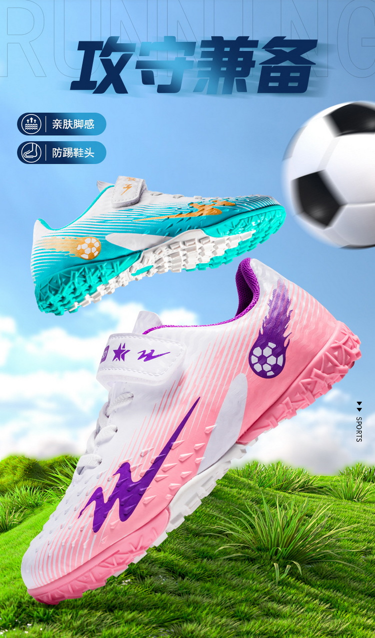 Футбольная обувь Double Star для мальчиков и девочек TF сломанный ноготь детская Студенческая дышащая тренировочная обувь на липучке для газона