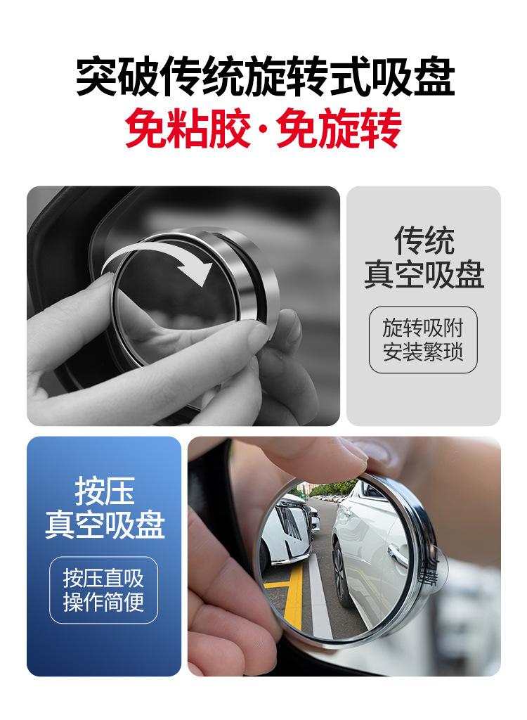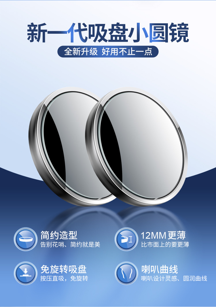 Маленькое круглое зеркало заднего вида Автомобильное зеркало заднего вида на присоске автомобильное регулируемое на 360 градусов большое вспомогательное широкоугольное зеркало для слепых зон