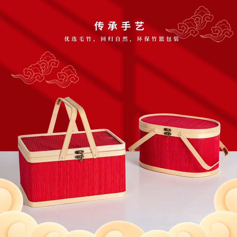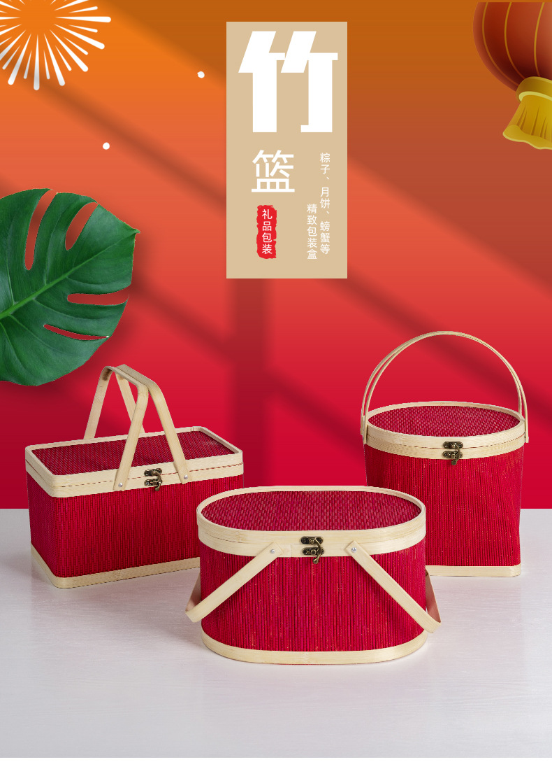 2025 новый стиль бамбуковая корзина упаковка из бамбука подарочная коробка для рисовых пельменей, лунных пряников, яиц и местных фирменных закусок