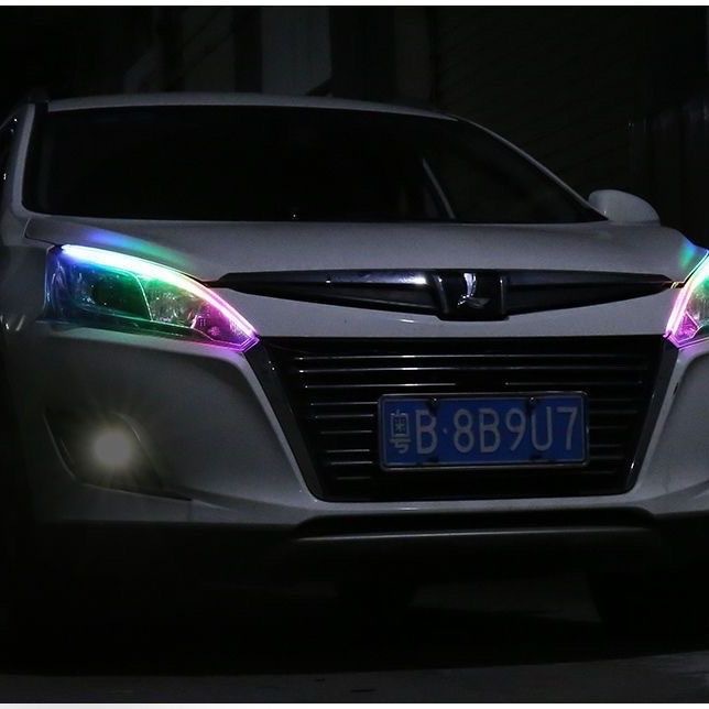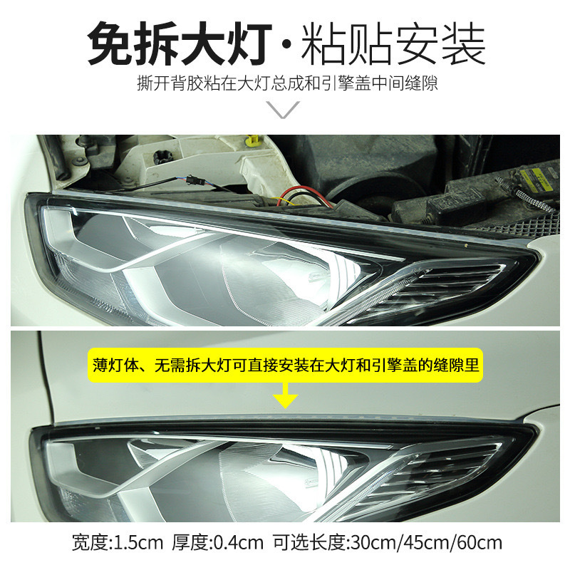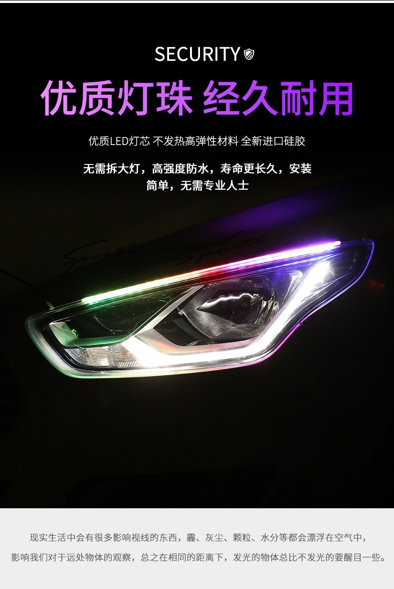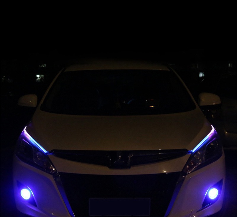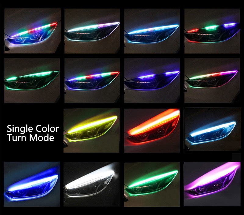 Автомобильные светодиодные дневные ходовые огни, ультратонкая RGB световодная полоса, 30, 45, 60 см, указатель поворота с декоративным светом «текущая вода», 12 В