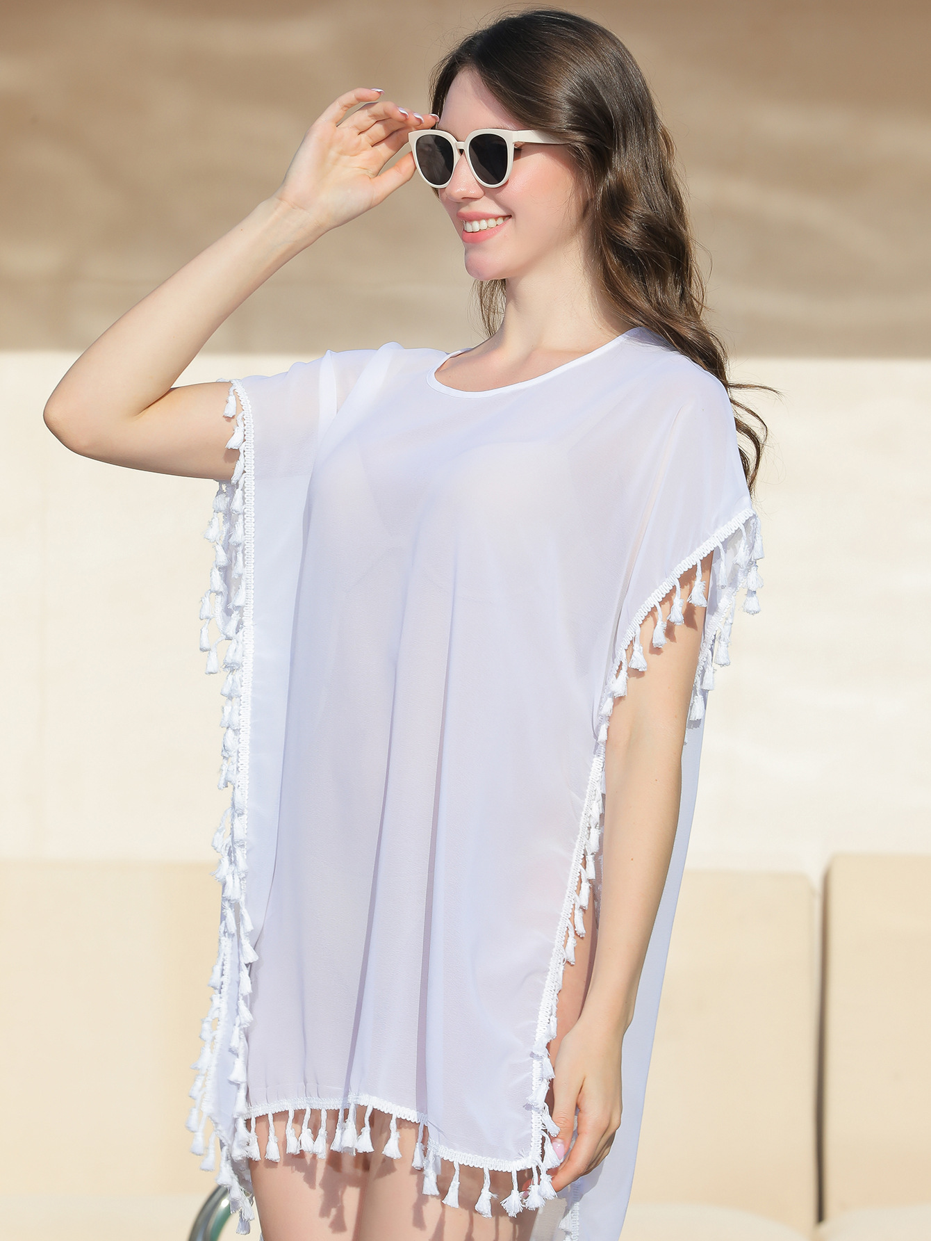 Фабрика продаж Летние круглые шифоновые кисточки пляжные юбки плюс размер свободный сплошной цвет купальник блузка женская амазонка