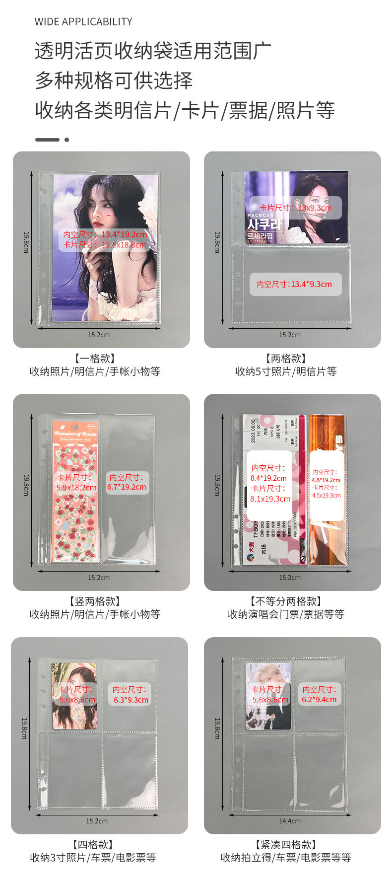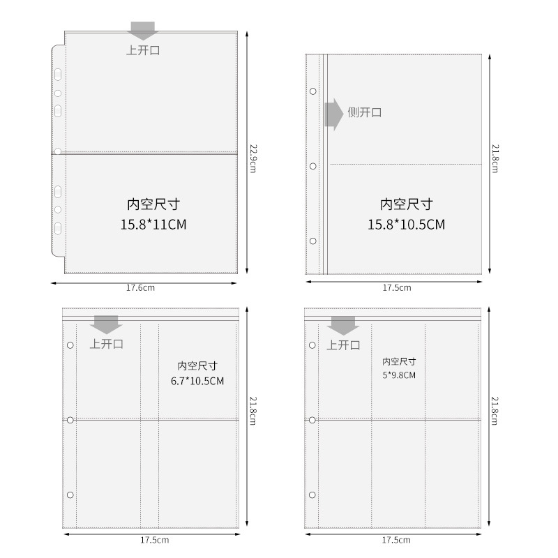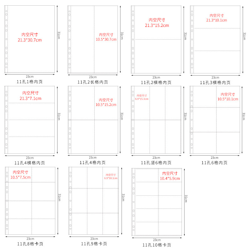 Сменные карточные страницы карманного типа A4, A5, A7, M с 0.25kg ячейками, четырьмя ячейками, шестью ячейками, девятью ячейками для фотоальбома, прозрачные внутренние страницы для фотоальбома из полипропилена