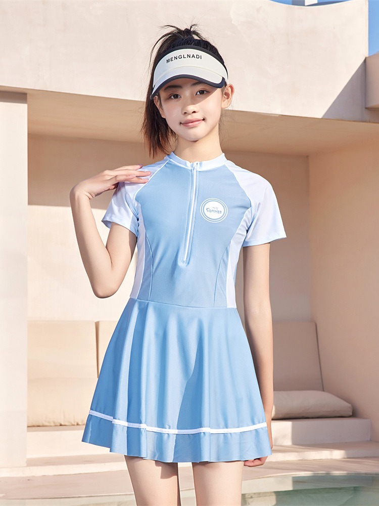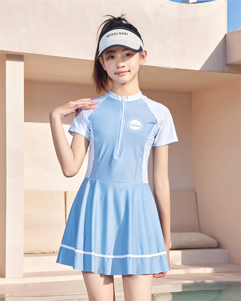 Детский купальник 2024 Летний новый купальник принцессы для средних и больших детей, летний Быстросохнущий Купальник для девочек с защитой от солнца
