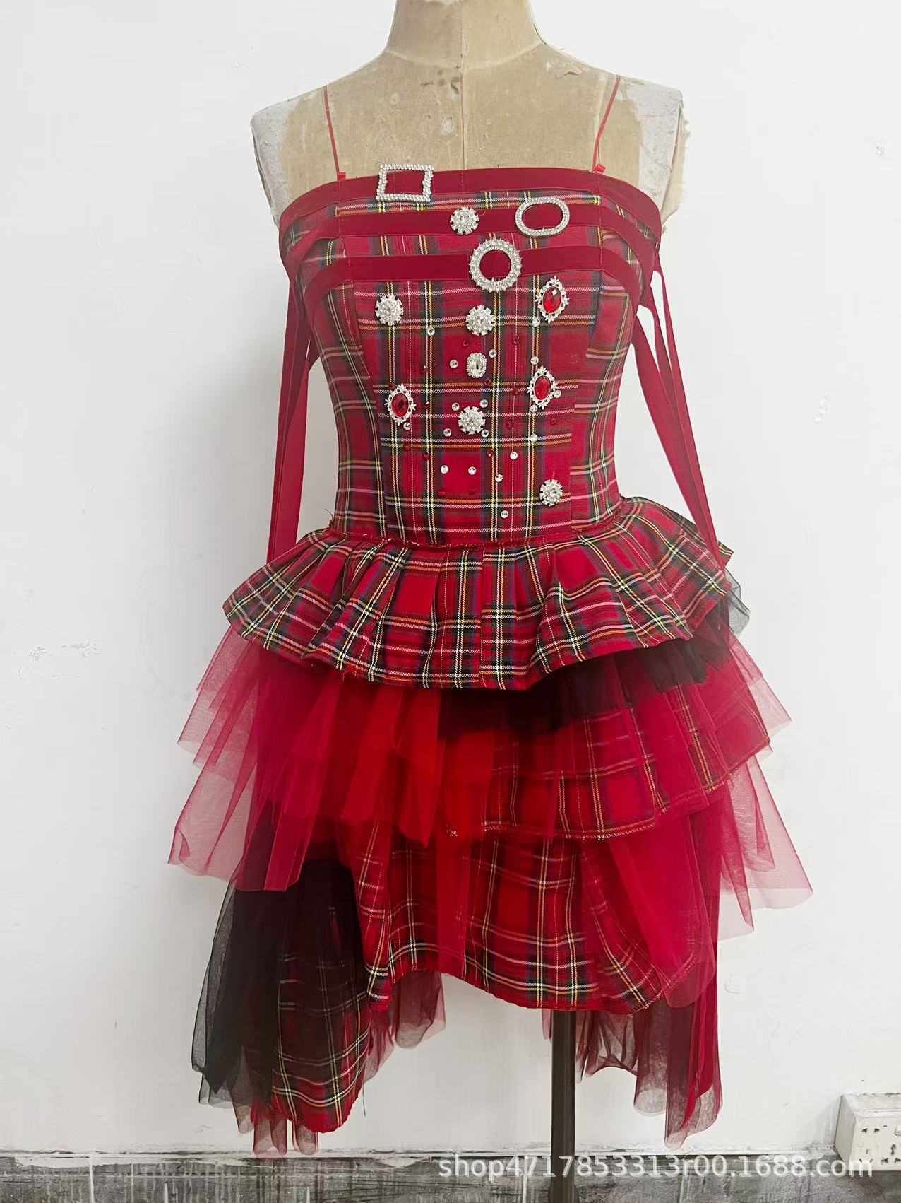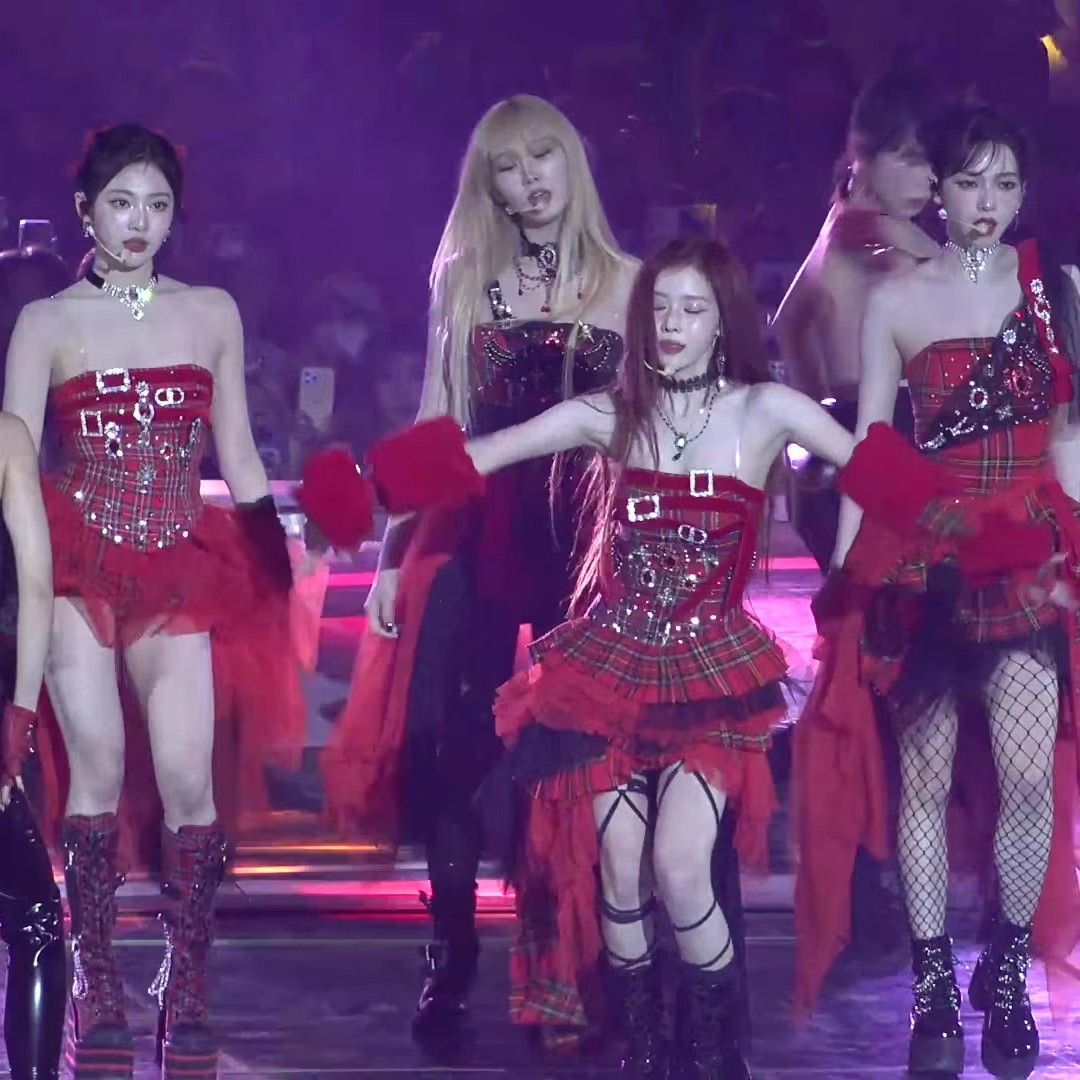 Aespa Женская групповая одежда в том же стиле для пения Джаз-танец корейский танец красная клетчатая сетчатая юбка-юбка одежда для выступлений костюм