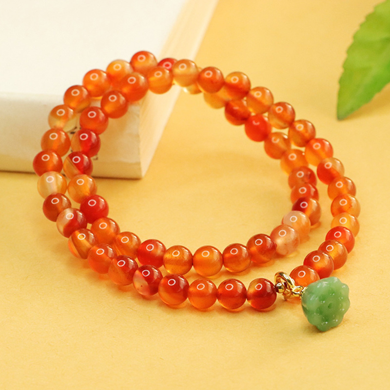 Браслет с двойными кругами и кисточками из красного агата (AY4031206)