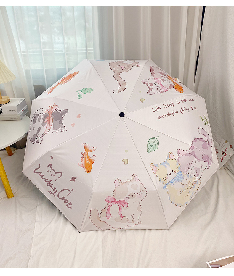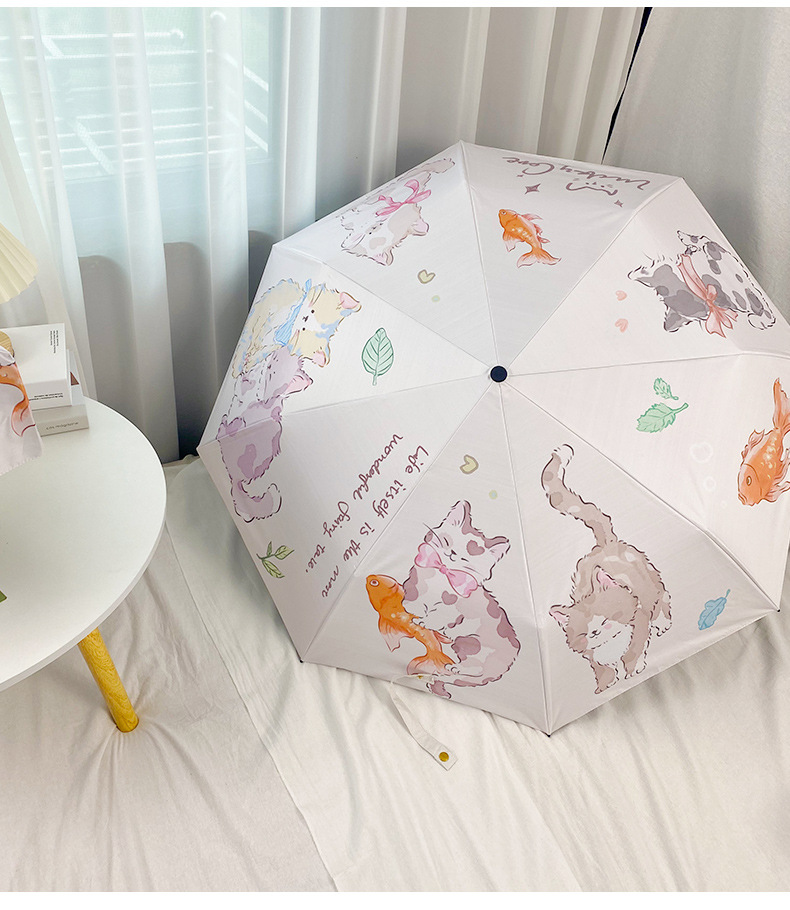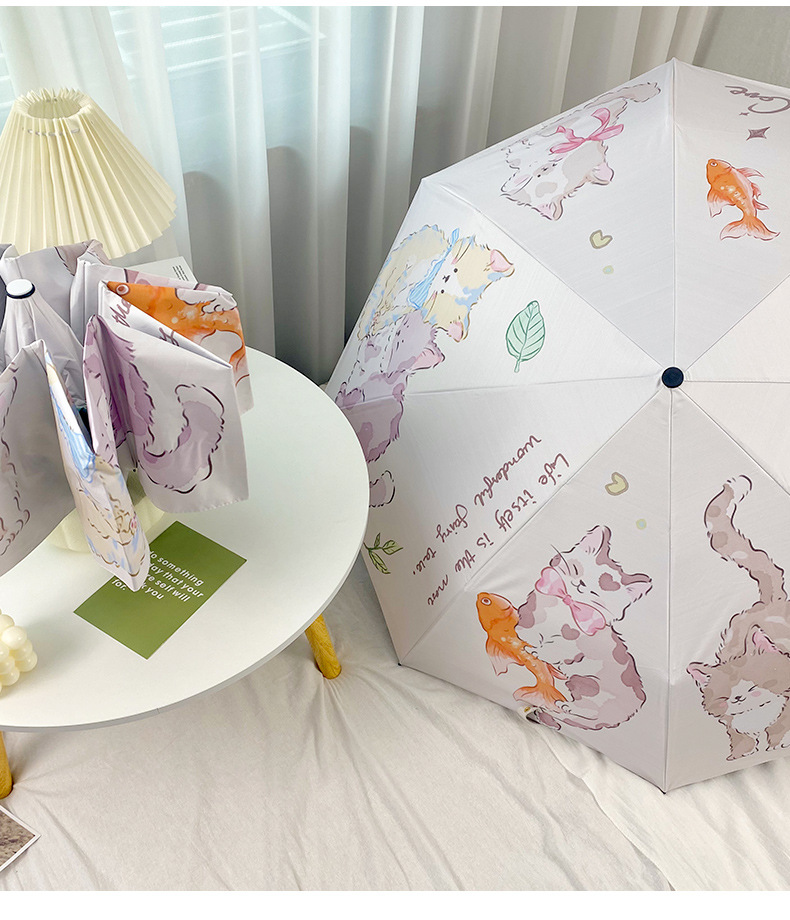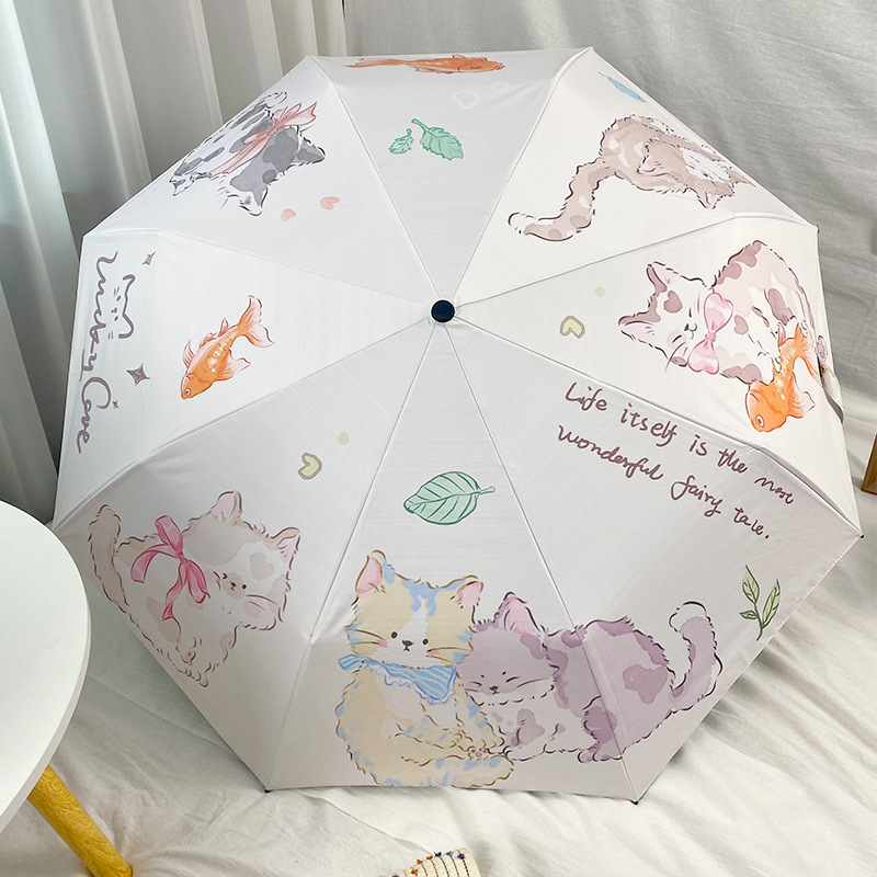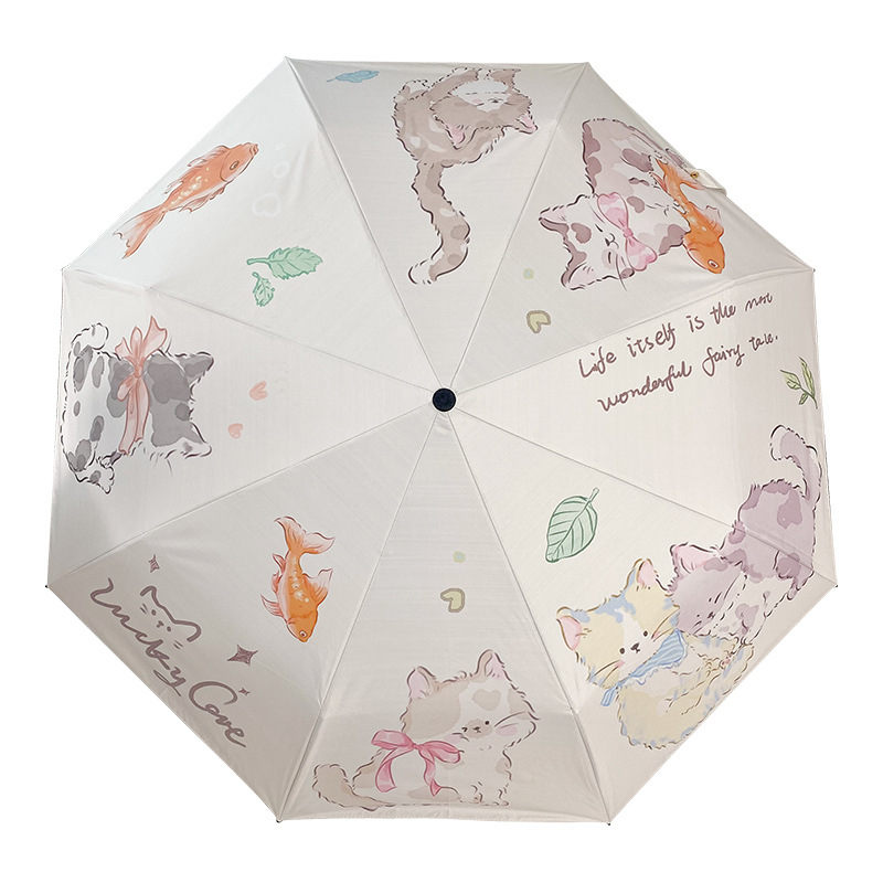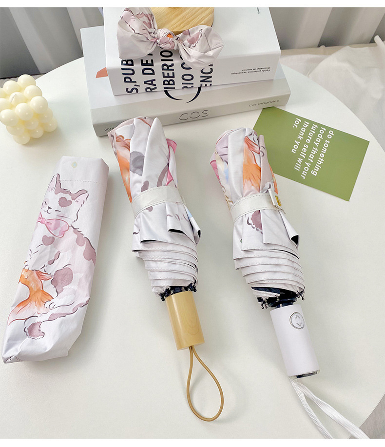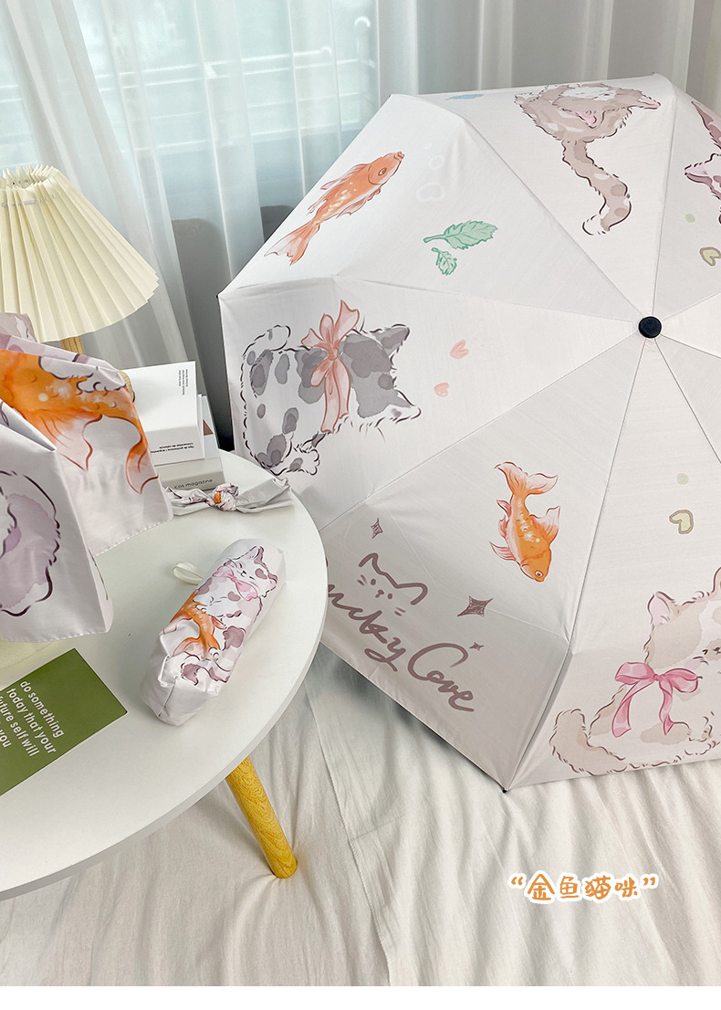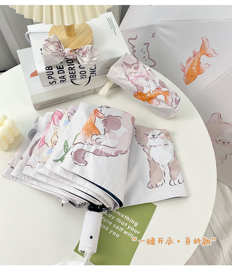 Оригинальный дизайн, милая Золотая рыбка, кошка, автоматический складной зонт, женский складной зонт двойного назначения, черный клей, Солнцезащитный зонт