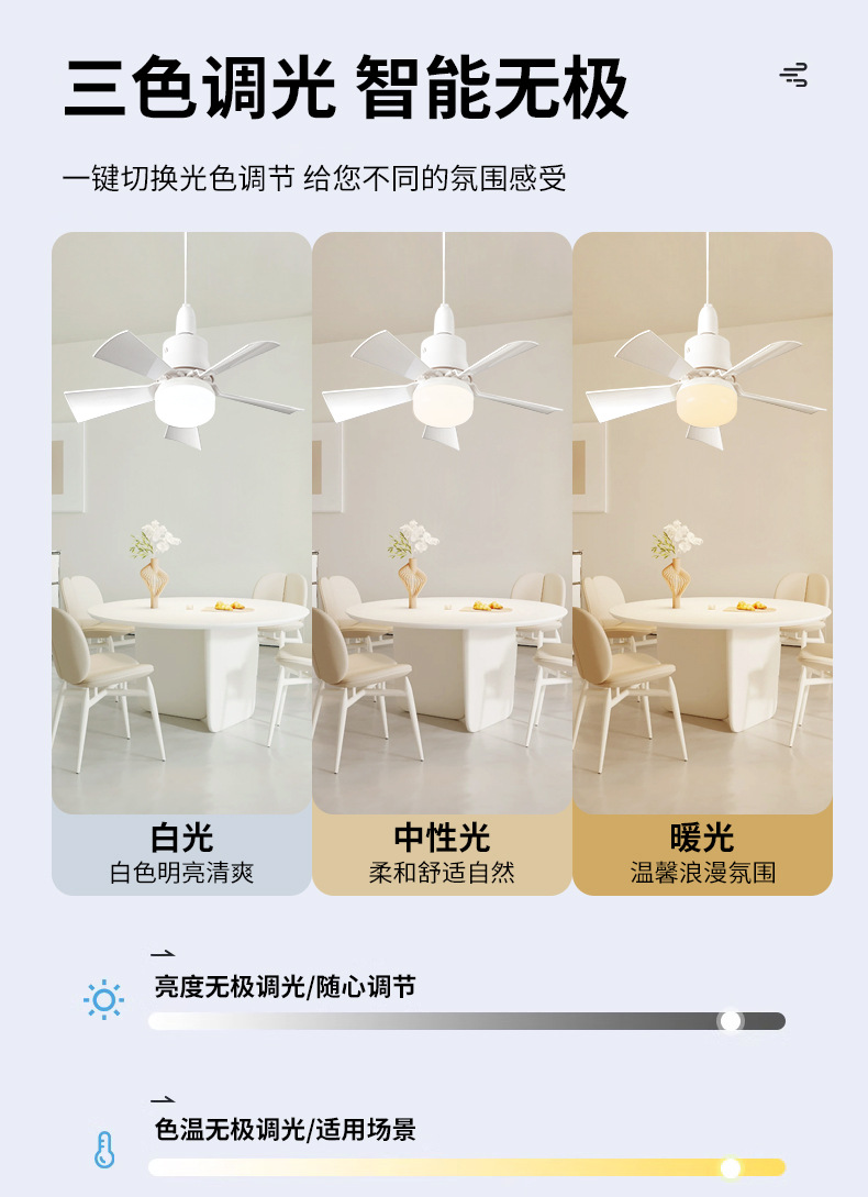 跨境新款E27螺口家用静音小型风扇灯 智能吊扇灯餐厅卧室风扇灯