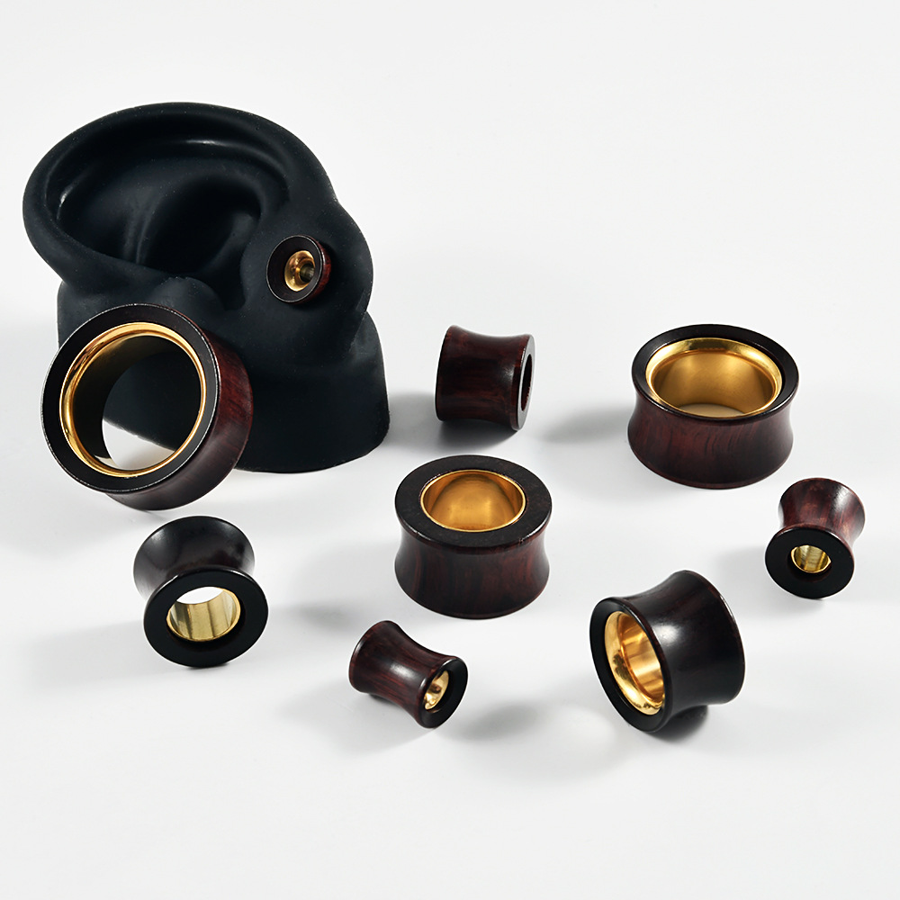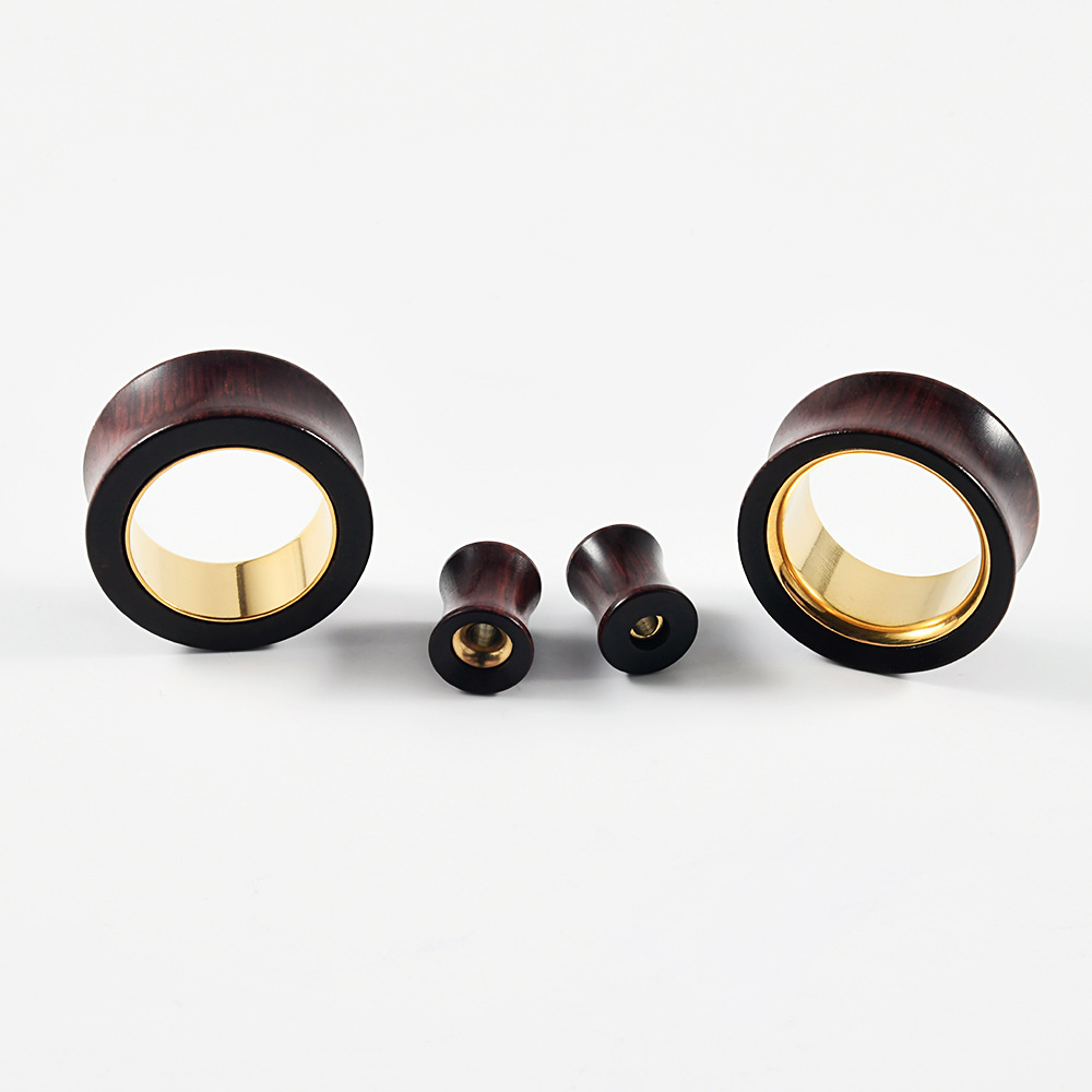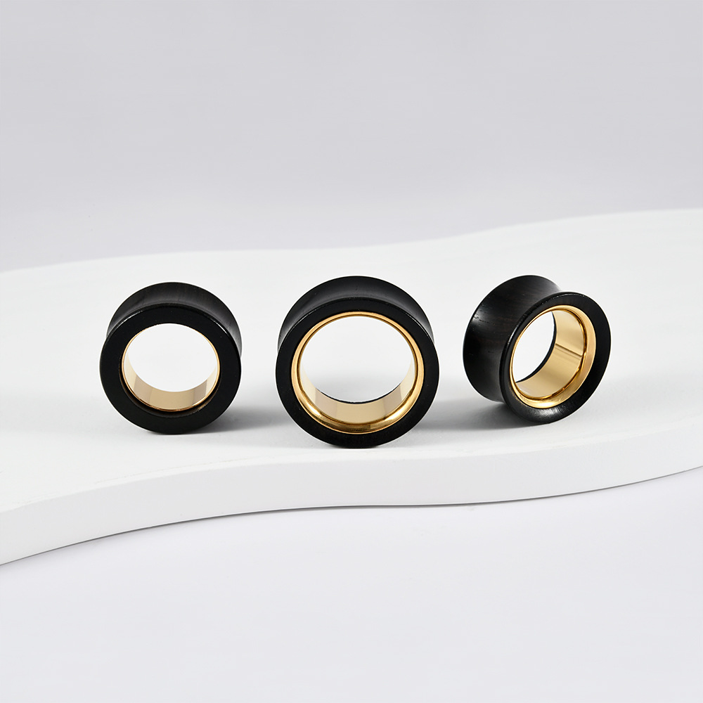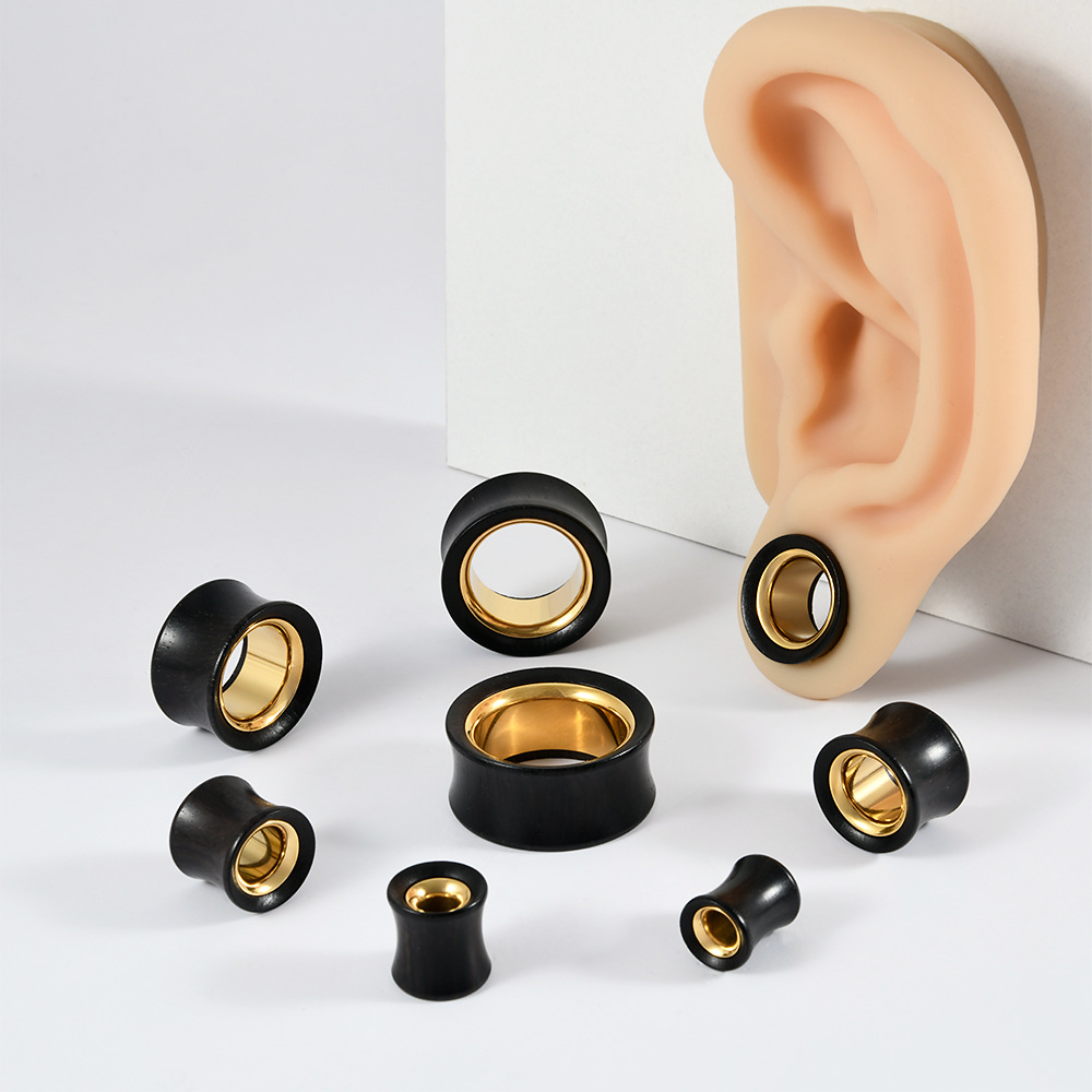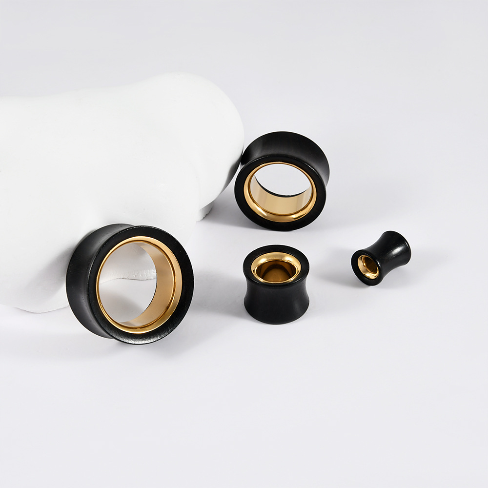 .名称:跨境新款不锈钢檀木/金耳廓 双色两面色耳钉空心穿刺扩耳器