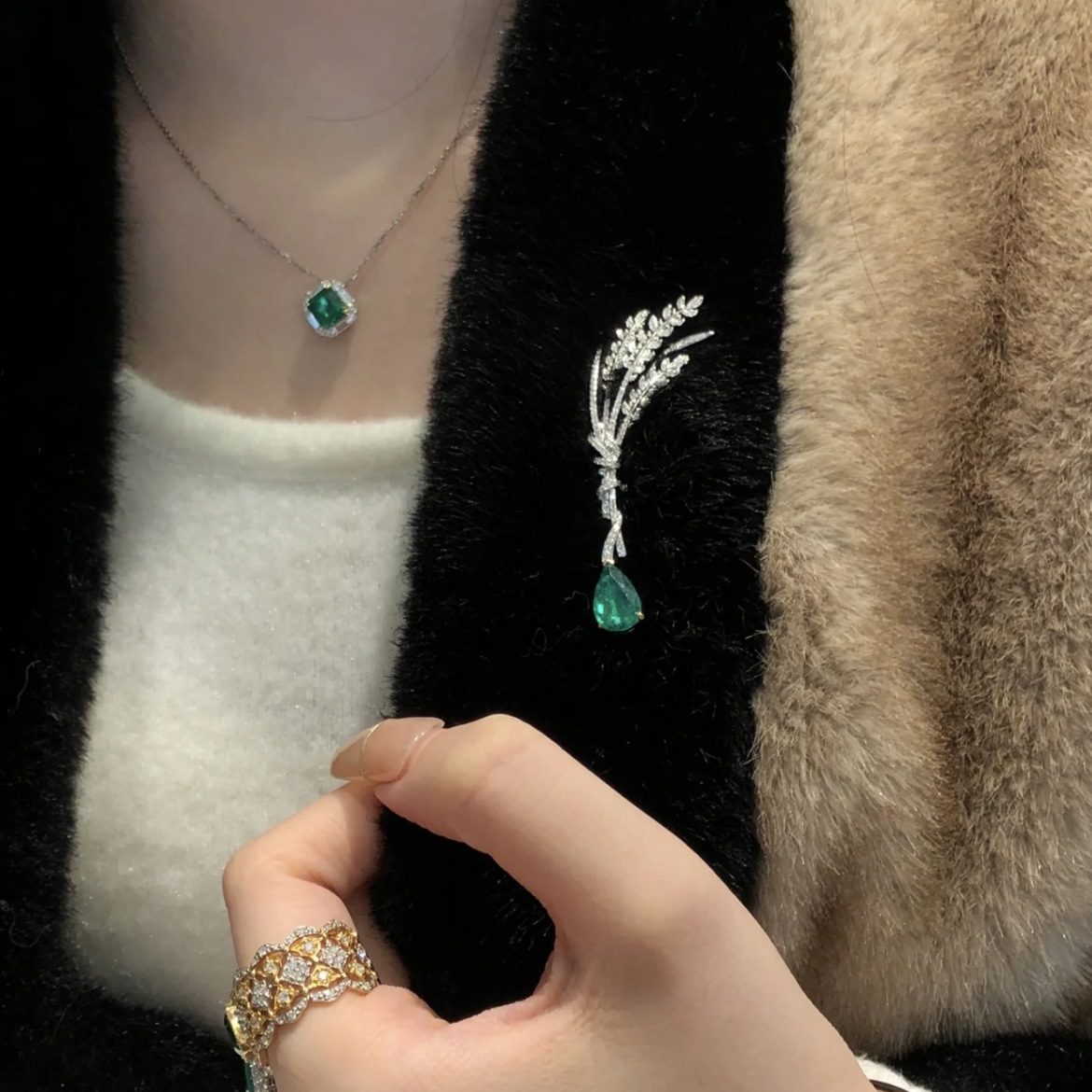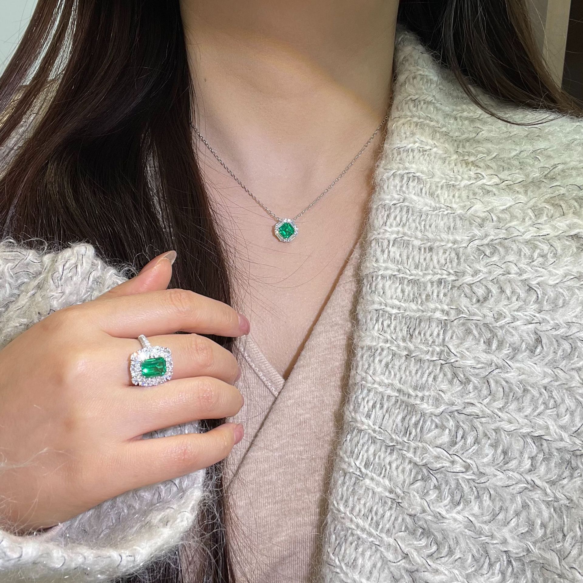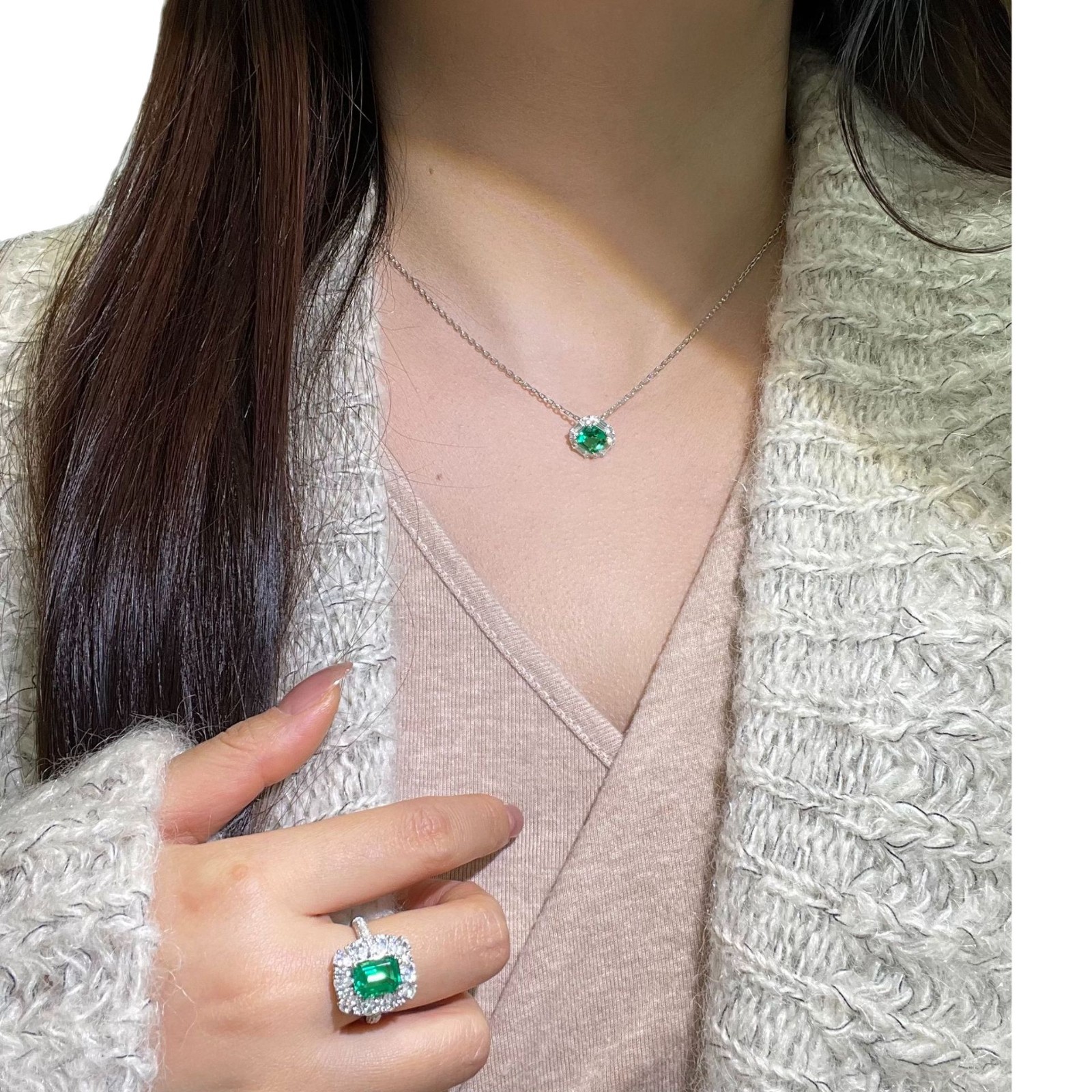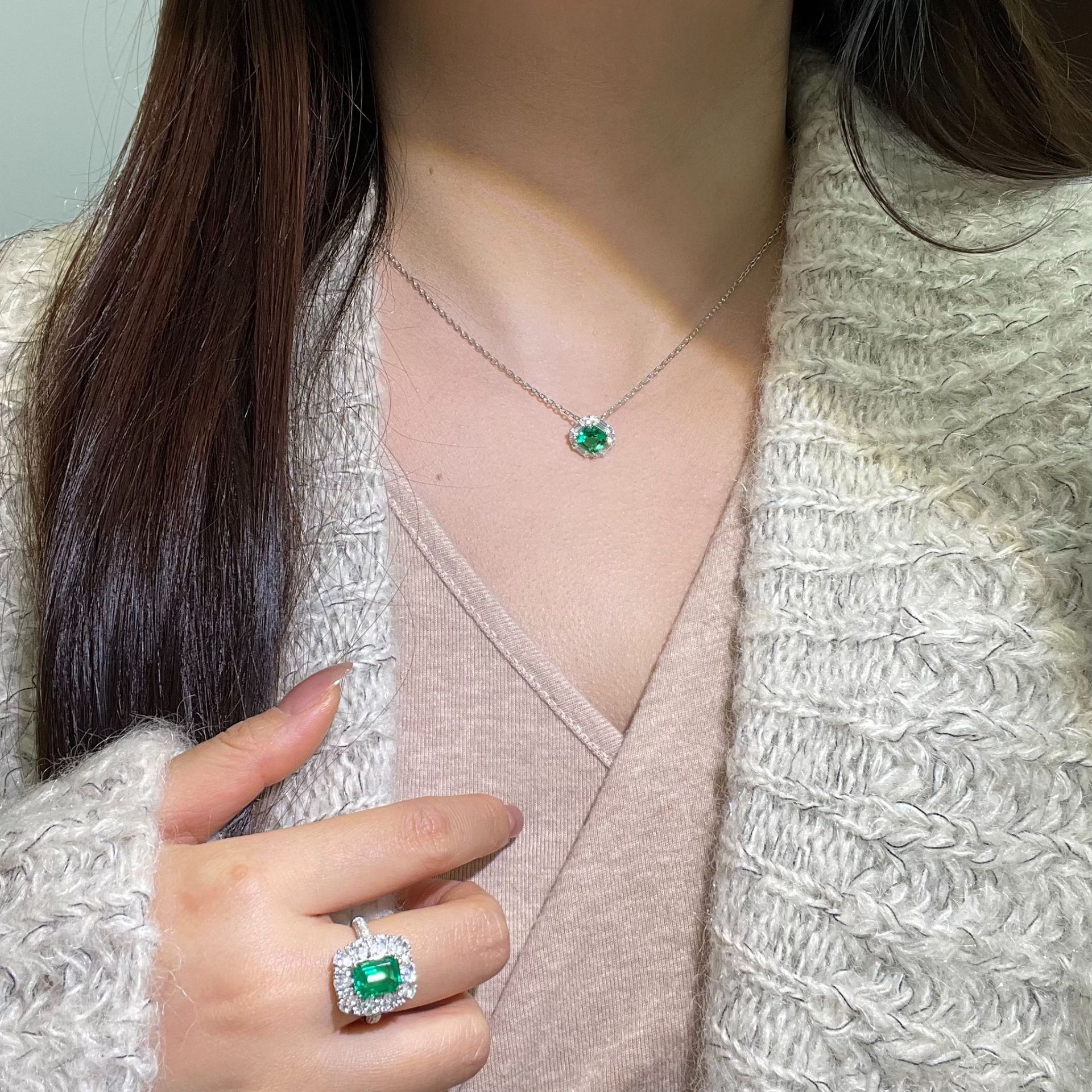 2ct деревянный цвет Колумбия выращивает изумруд изумруд ожерелье брошь кольцо GRC Сертификат