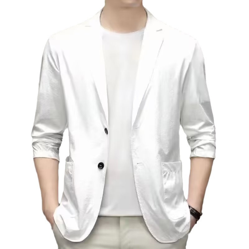 Летний костюм из ледяного шелка, мужской Ультратонкий повседневный костюм для защиты от солнца, маленький костюм, легкий весенне-осенний одиночный топ в стиле вестерн