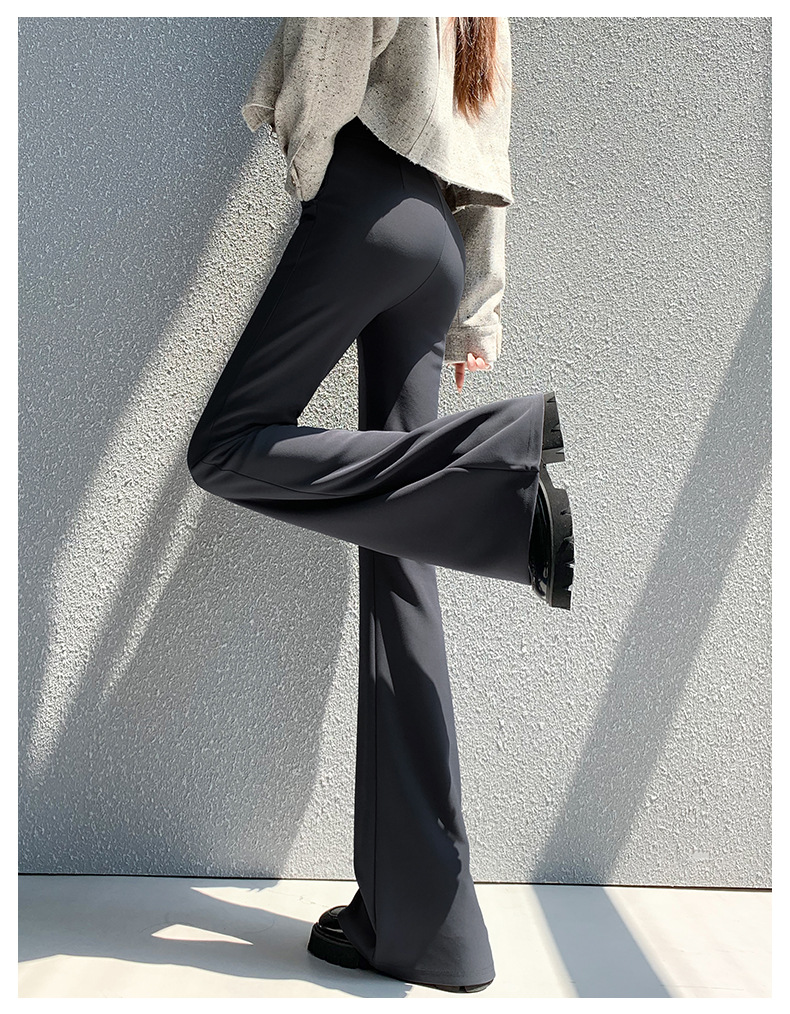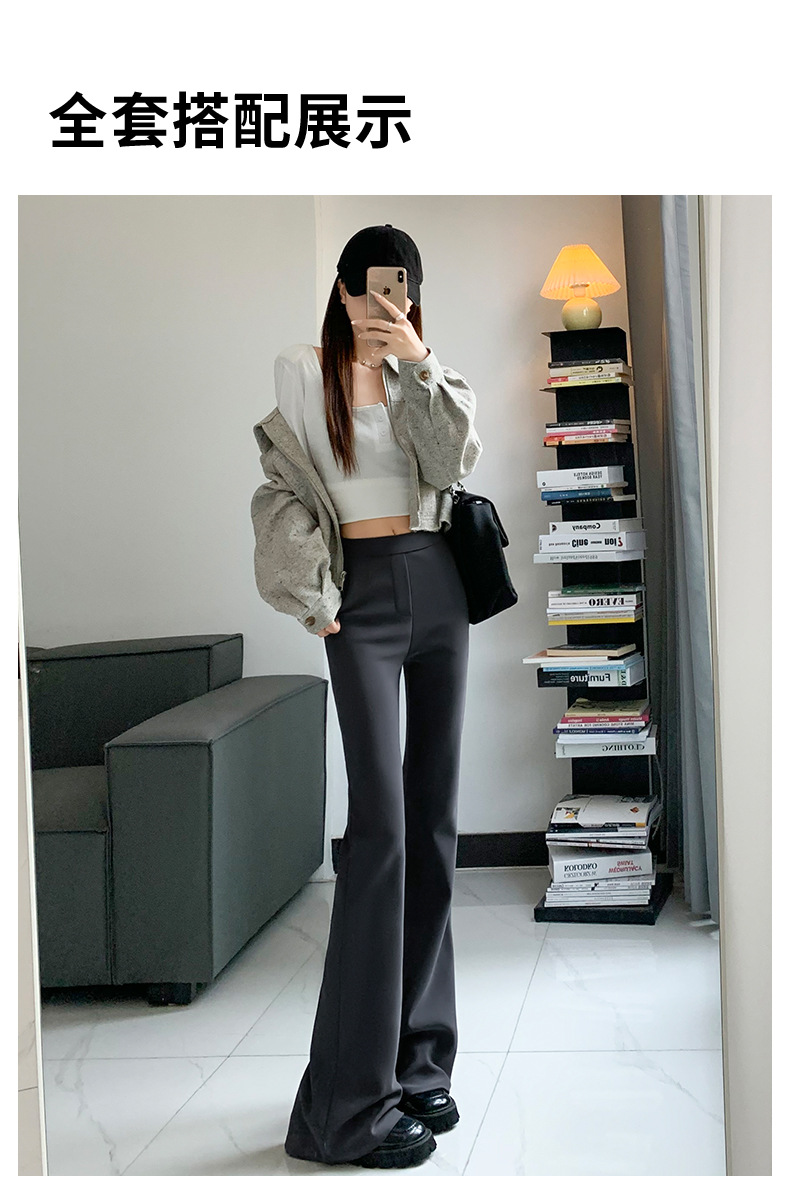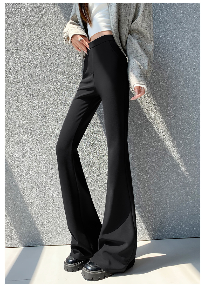 Черные расклешенные брюки для женщин, новая модель осень-зима 2025, с высокой талией, утягивающие, зауженные к низу, для миниатюрных размеров, в стиле костюма, на флисовой подкладке, слегка расклешенные.