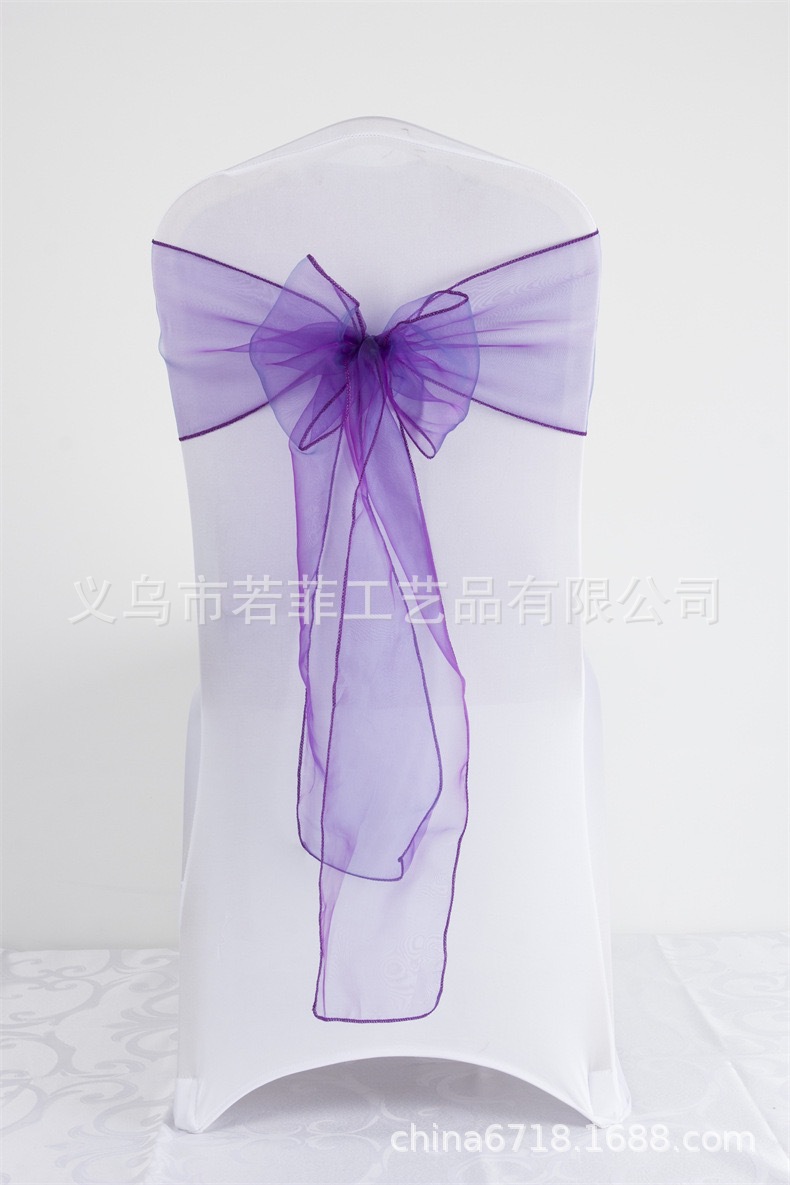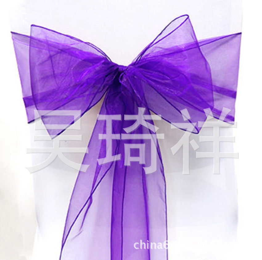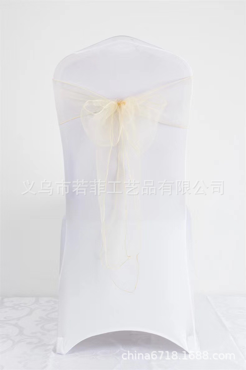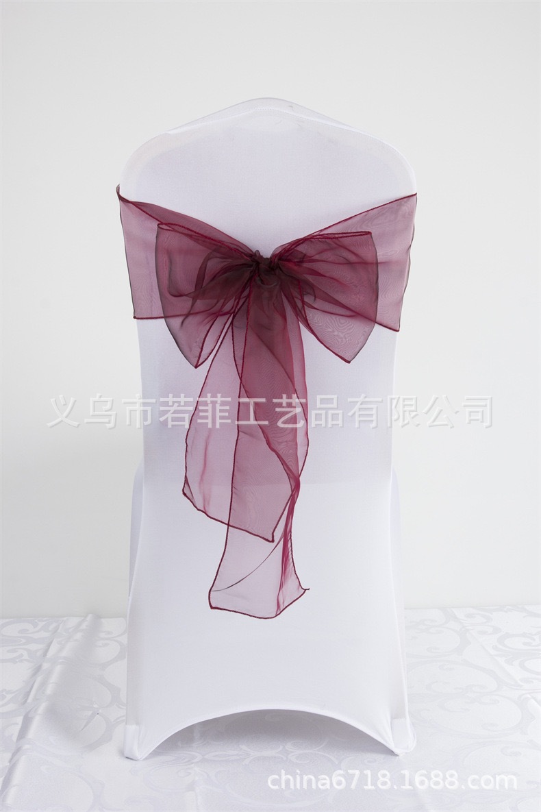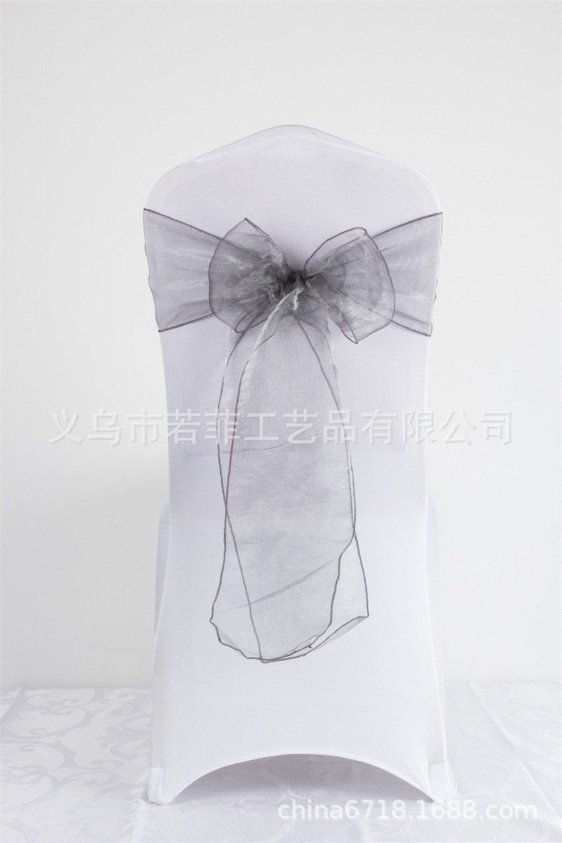 Органза стул обратно пряжа лента стеклянная пряжа стул обратно цветок бант свадебный стул украшение задней части ленты из органзы