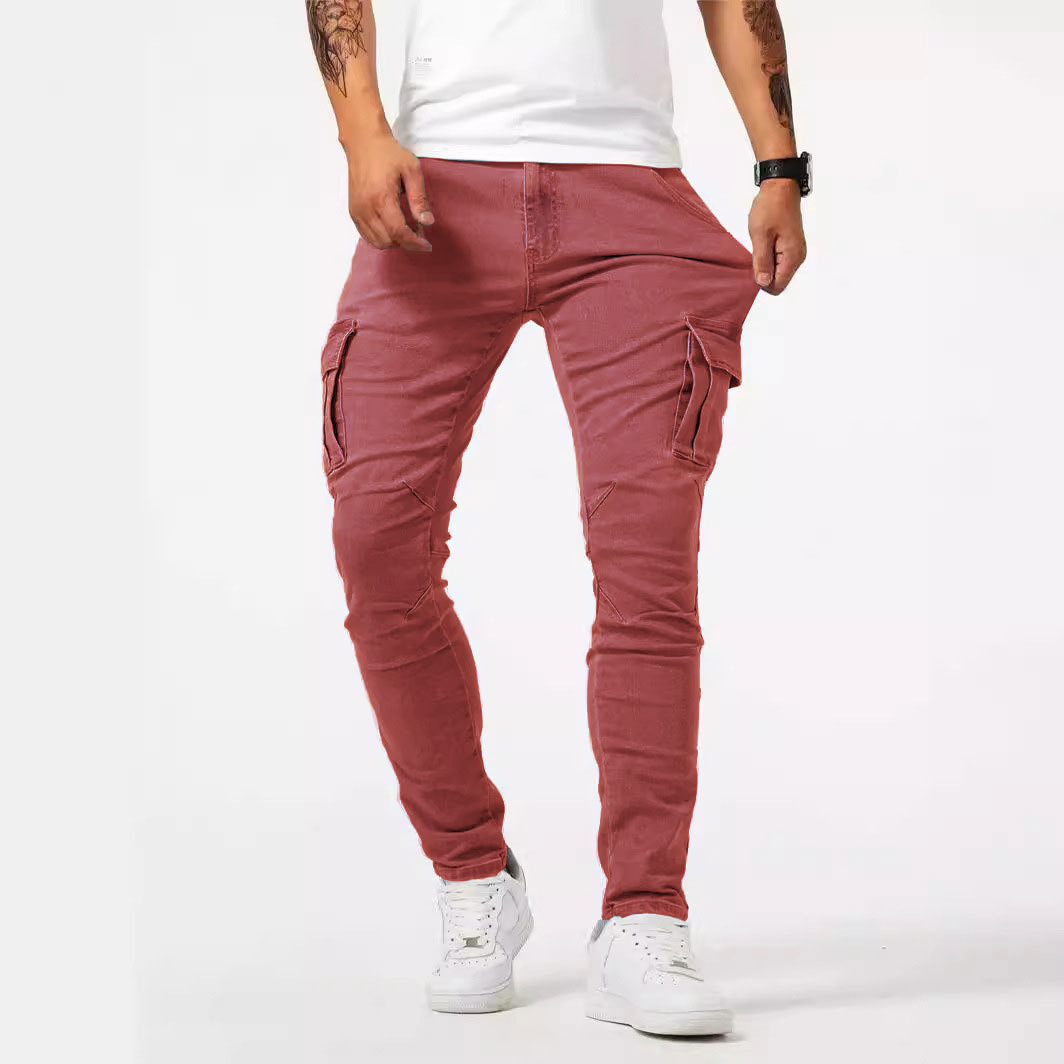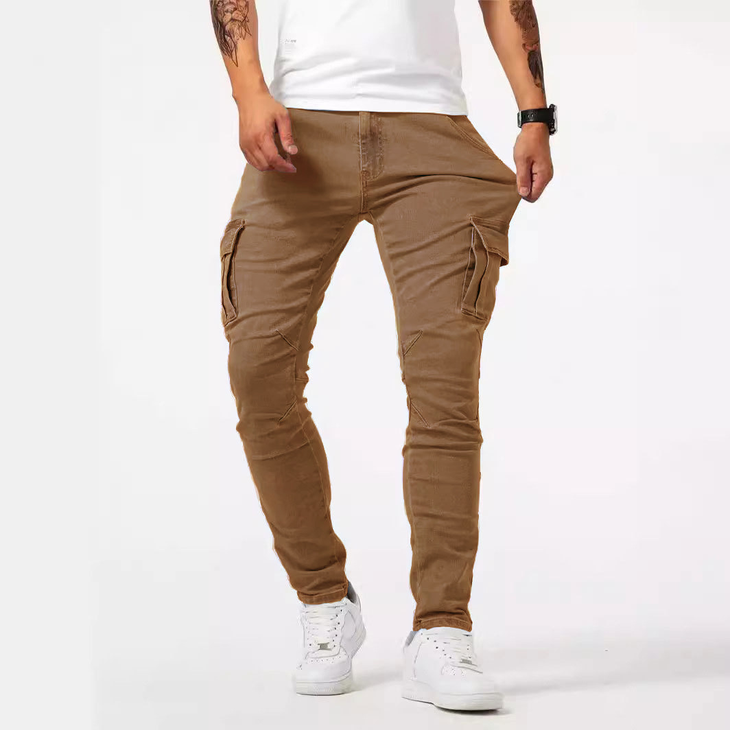 Мужские повседневные брюки-карго для внешней торговли, мужские джинсовые брюки-карго AliExpress Amazon, мужские рабочие брюки с несколькими карманами.
