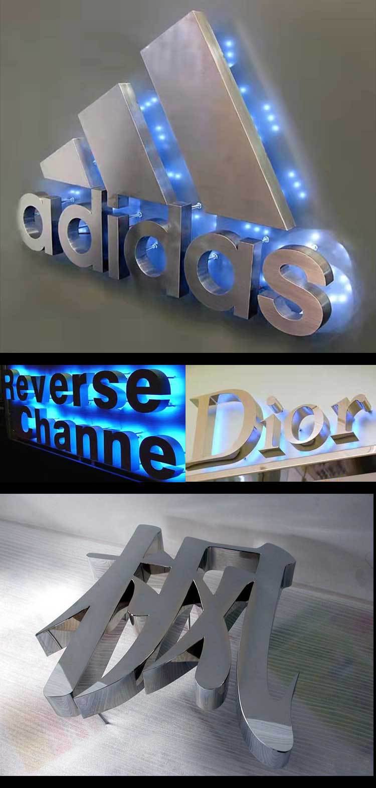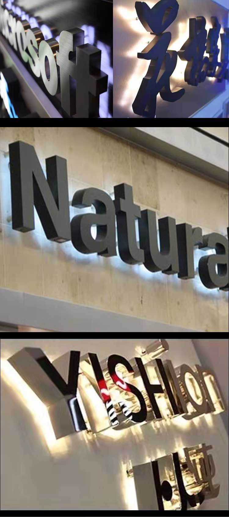 Светодиодные наружные 3D-вывески с подсветкой — настраиваемые для магазинов, торговых центров, супермаркетов — рекламные вывески из нержавеющей стали