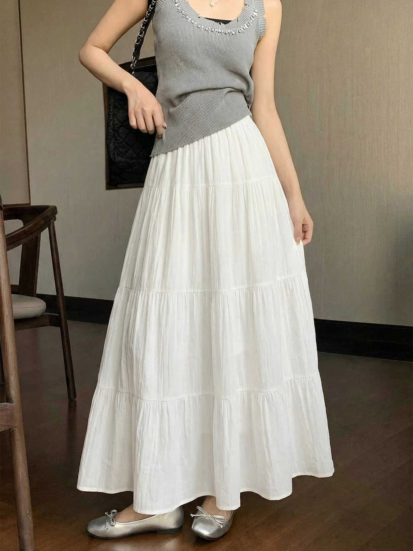 Белая женская юбка А-силуэта с высокой талией, новая коллекция весна-лето 2026, длинная расклешенная юбка, подходит для миниатюрных фигур, многоярусная юбка-тортик.