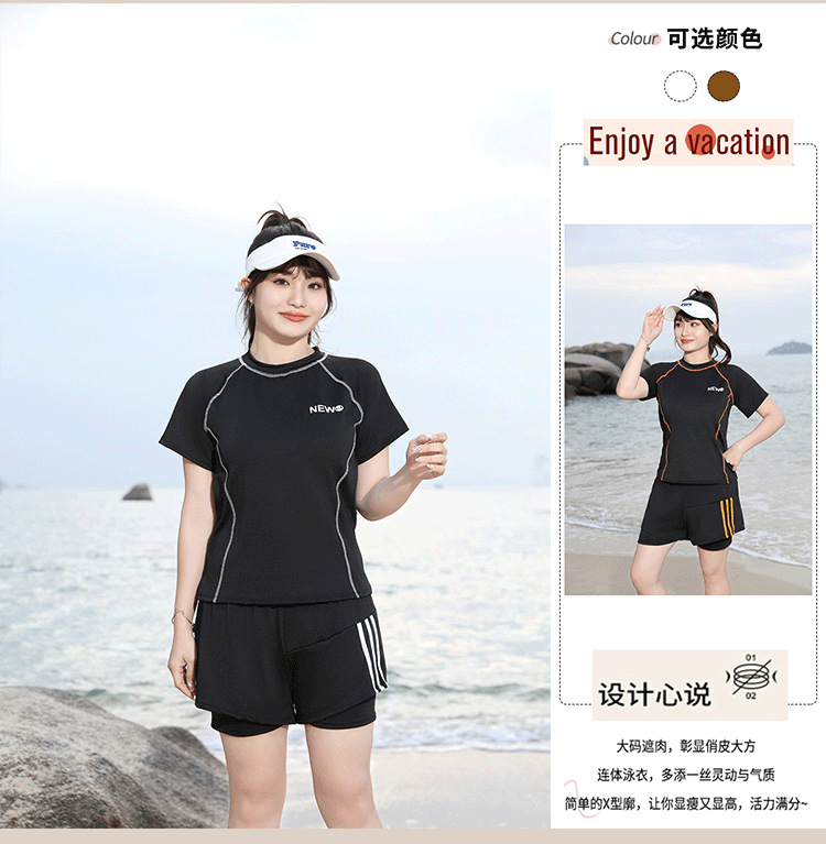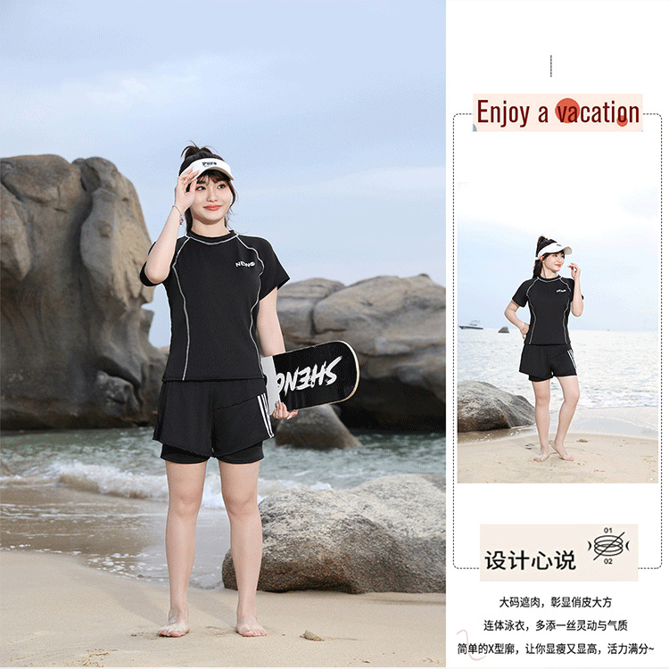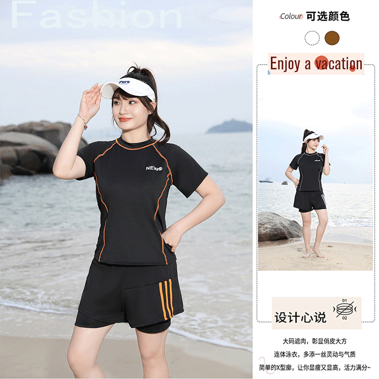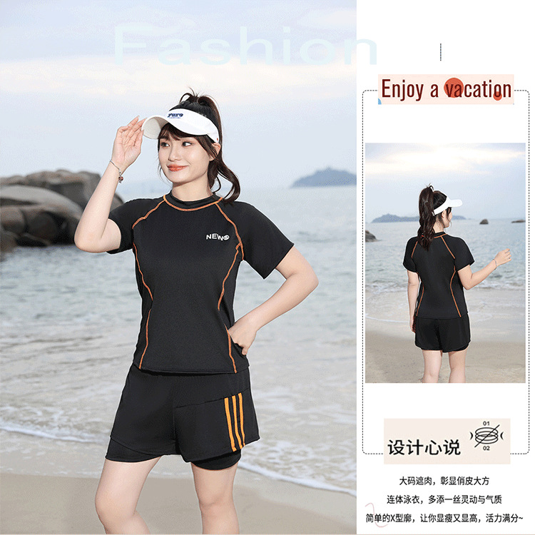 Купальник больших размеров Женский Лето 2024 Новый стройнящий консервативный Боксер сплит-студент пухлая Девушка Плюс Размер Горячий весенний купальный костюм