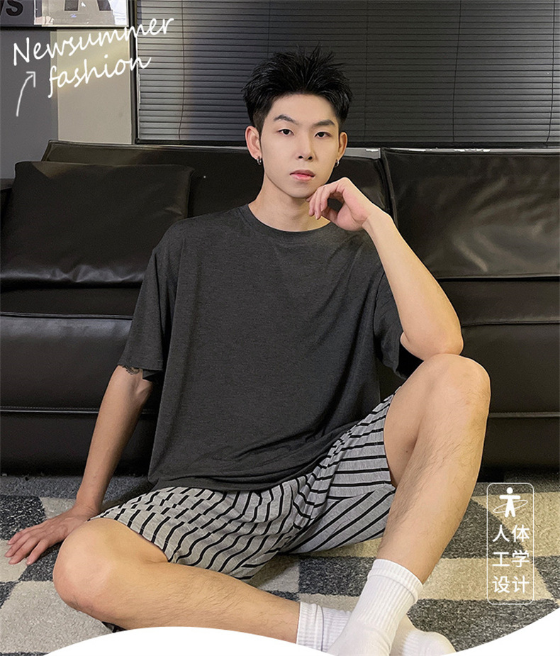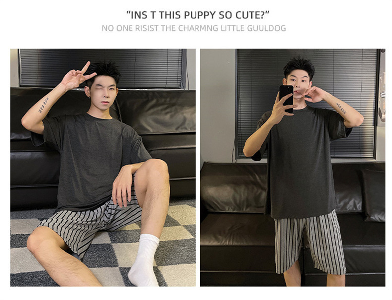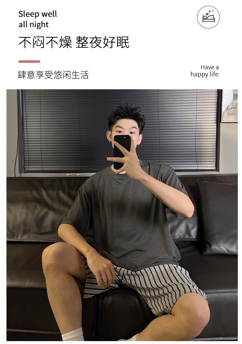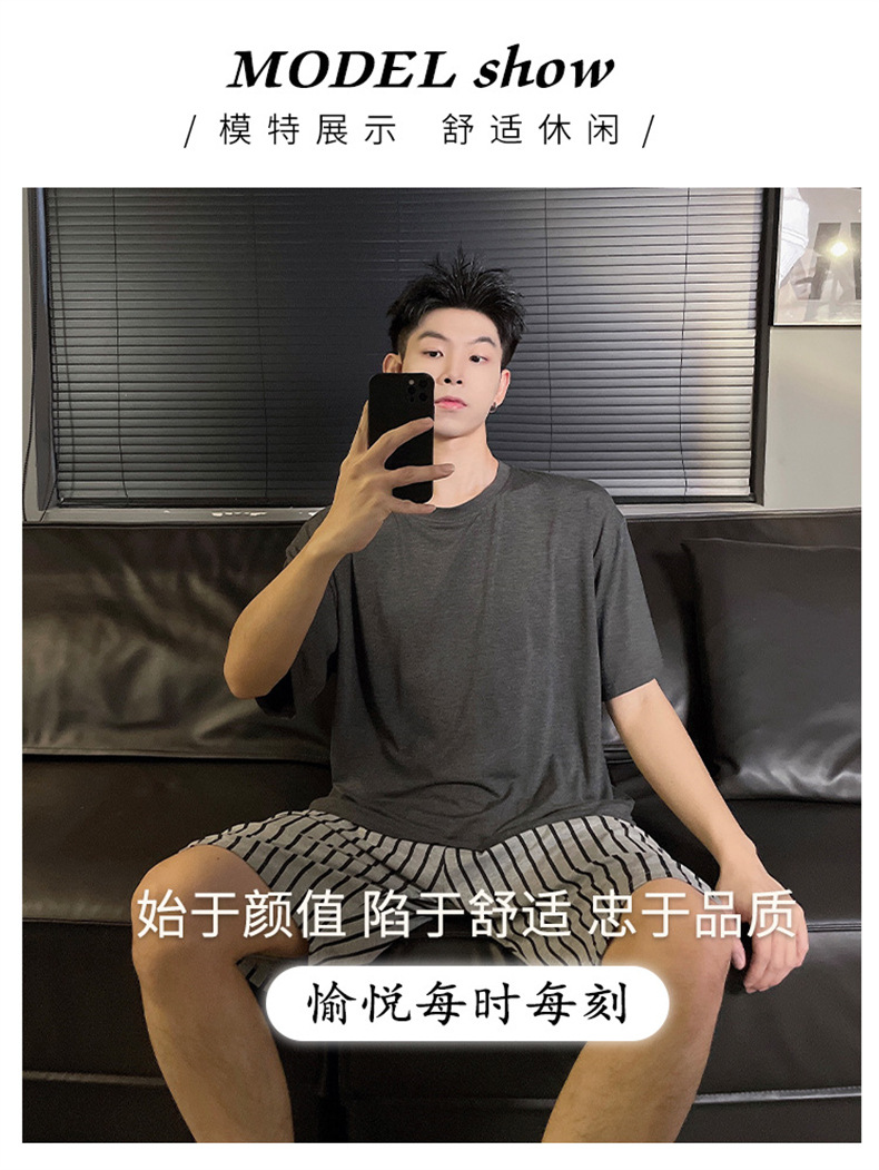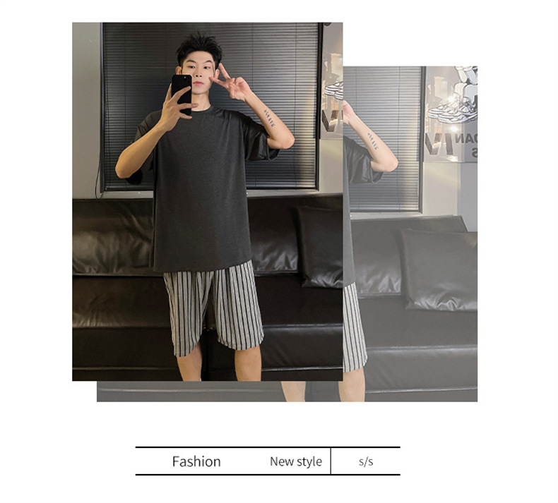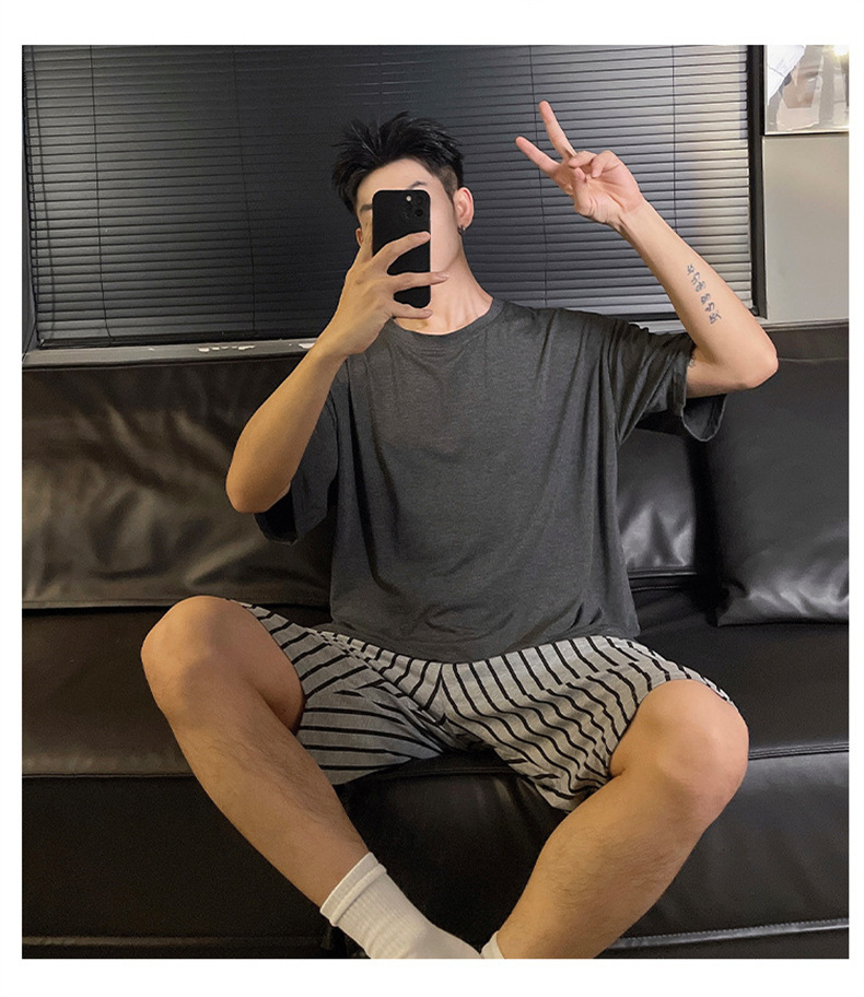 Модальные пижамы мужские летние тонкие с короткими рукавами простые свободные большие размеры Студенческая Домашняя одежда летние новые можно носить на улице