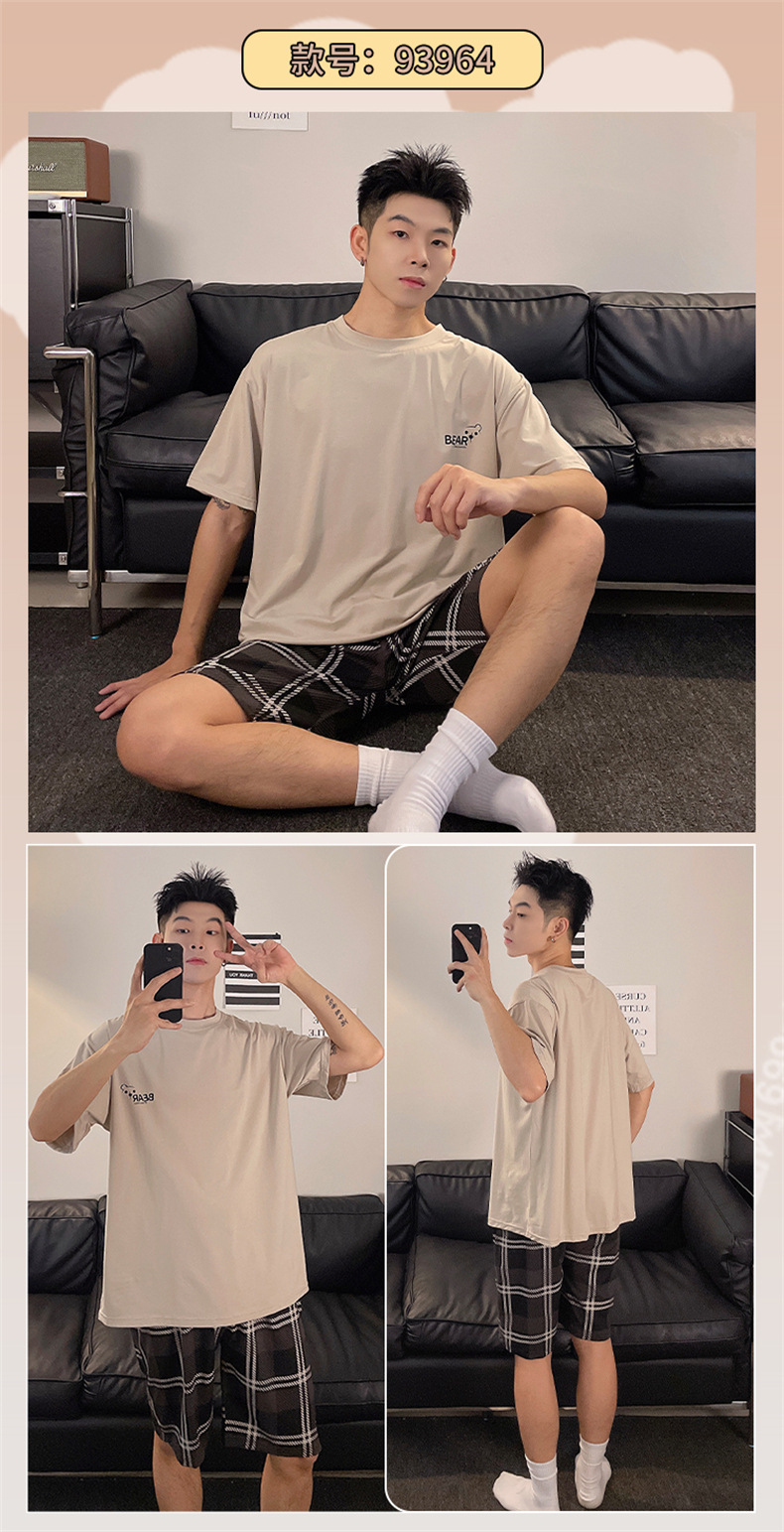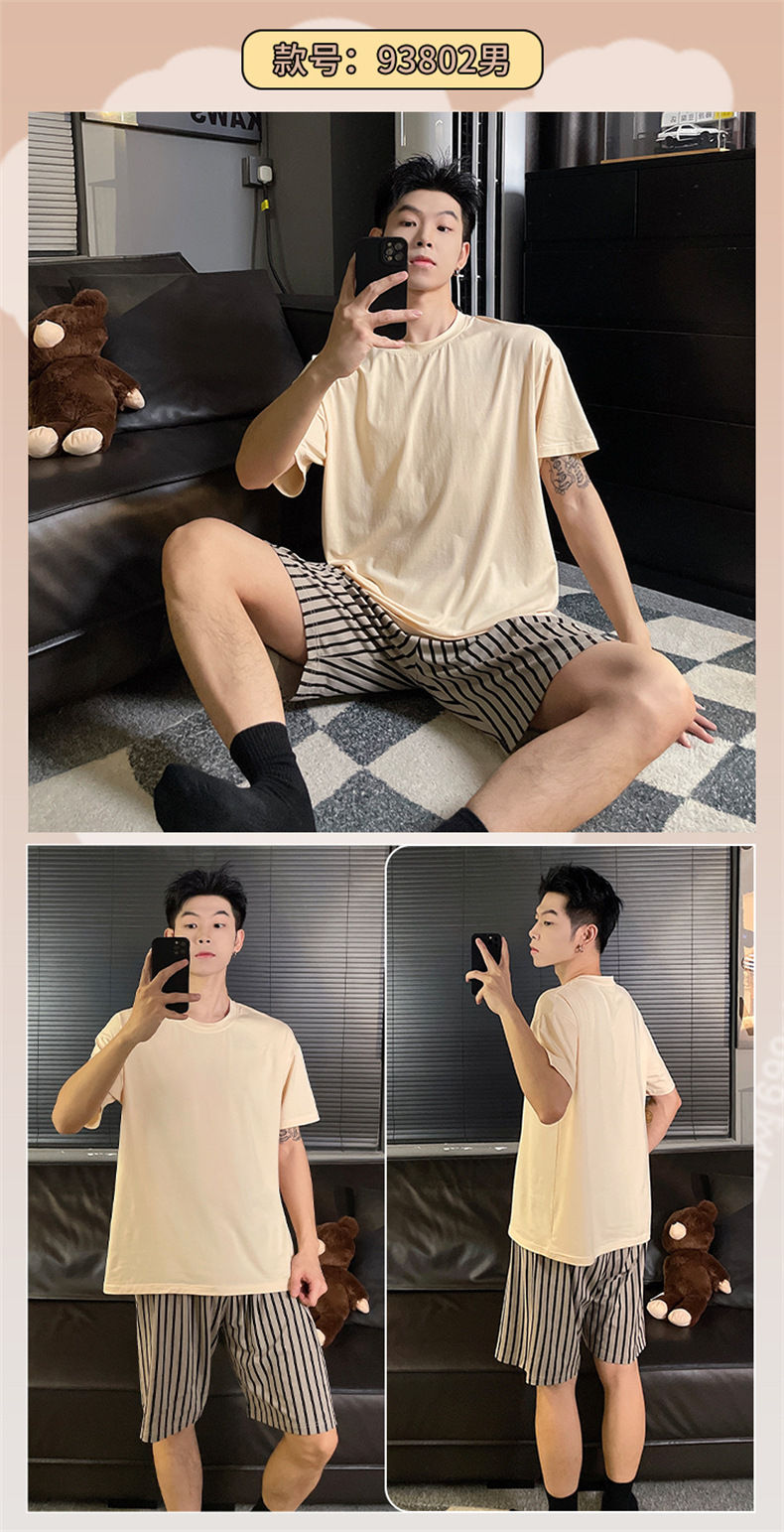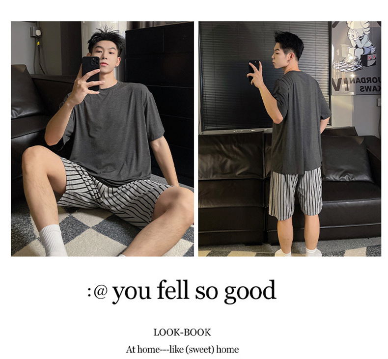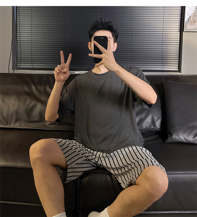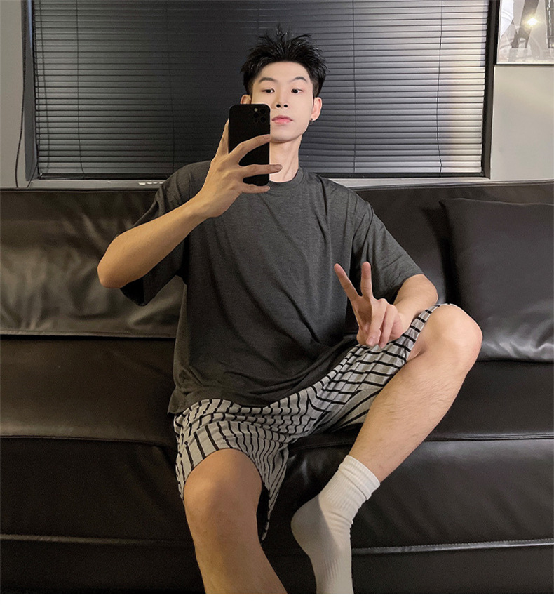 Модальные пижамы мужские летние тонкие с короткими рукавами простые свободные большие размеры Студенческая Домашняя одежда летние новые можно носить на улице