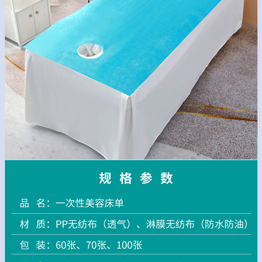 Одноразовая простыня для салона красоты утолщенная Водонепроницаемая маслостойкая массажная кровать с отверстиями из нетканого материала, дышащего 100 простыней