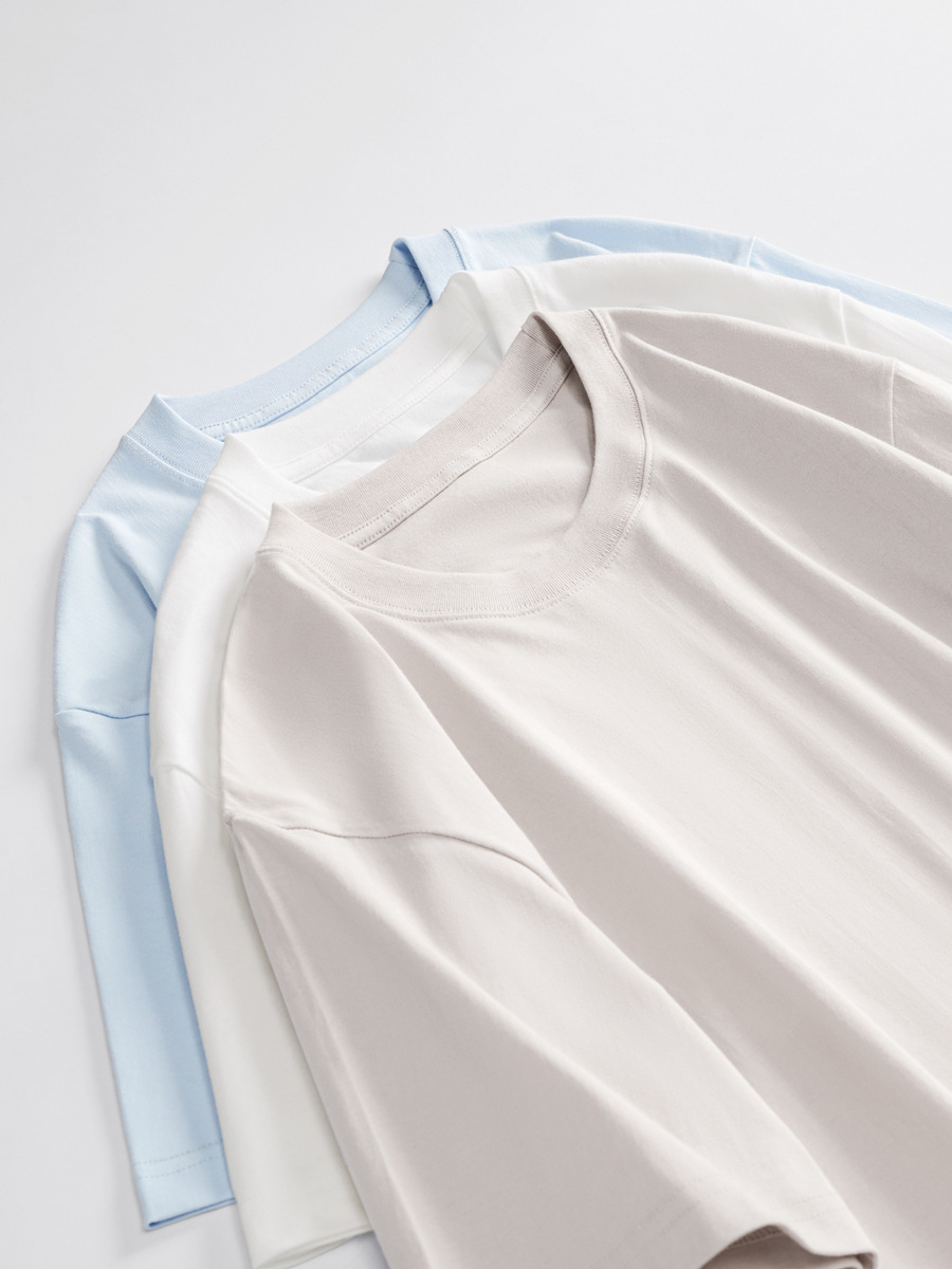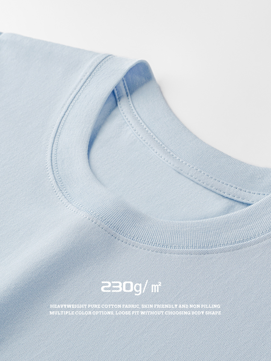 230 г хлопковая свободная Мужская летняя новая однотонная простая футболка с открытыми плечами и короткими рукавами в японском стиле оптом, универсальная мужская одежда