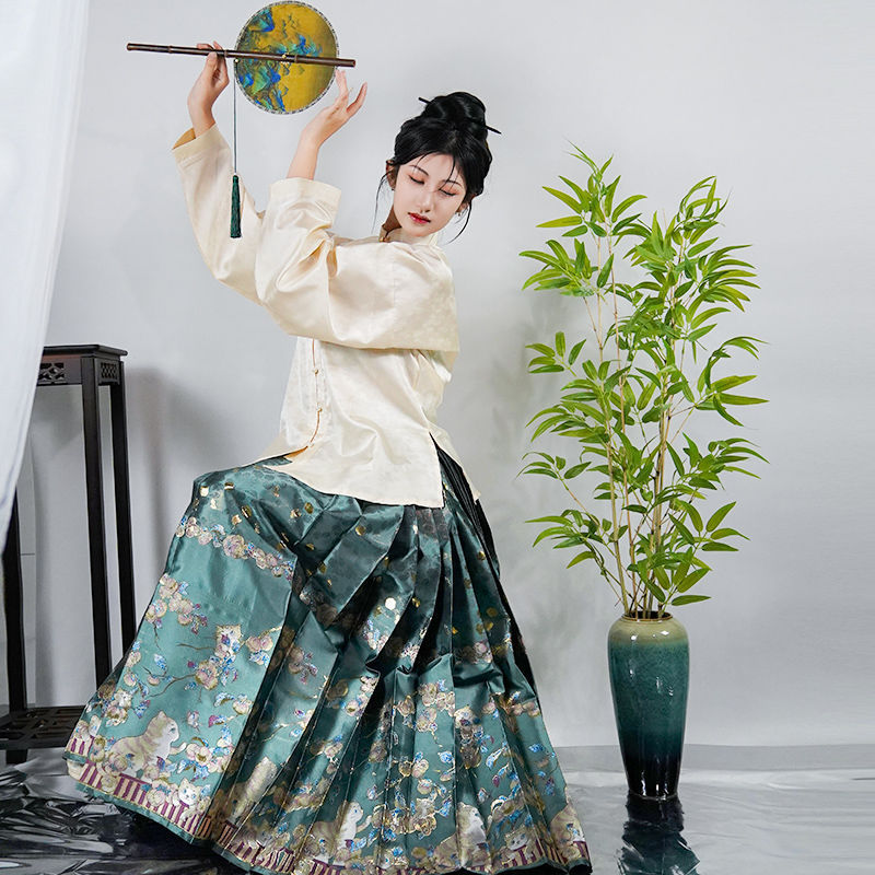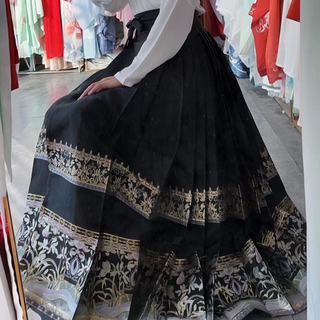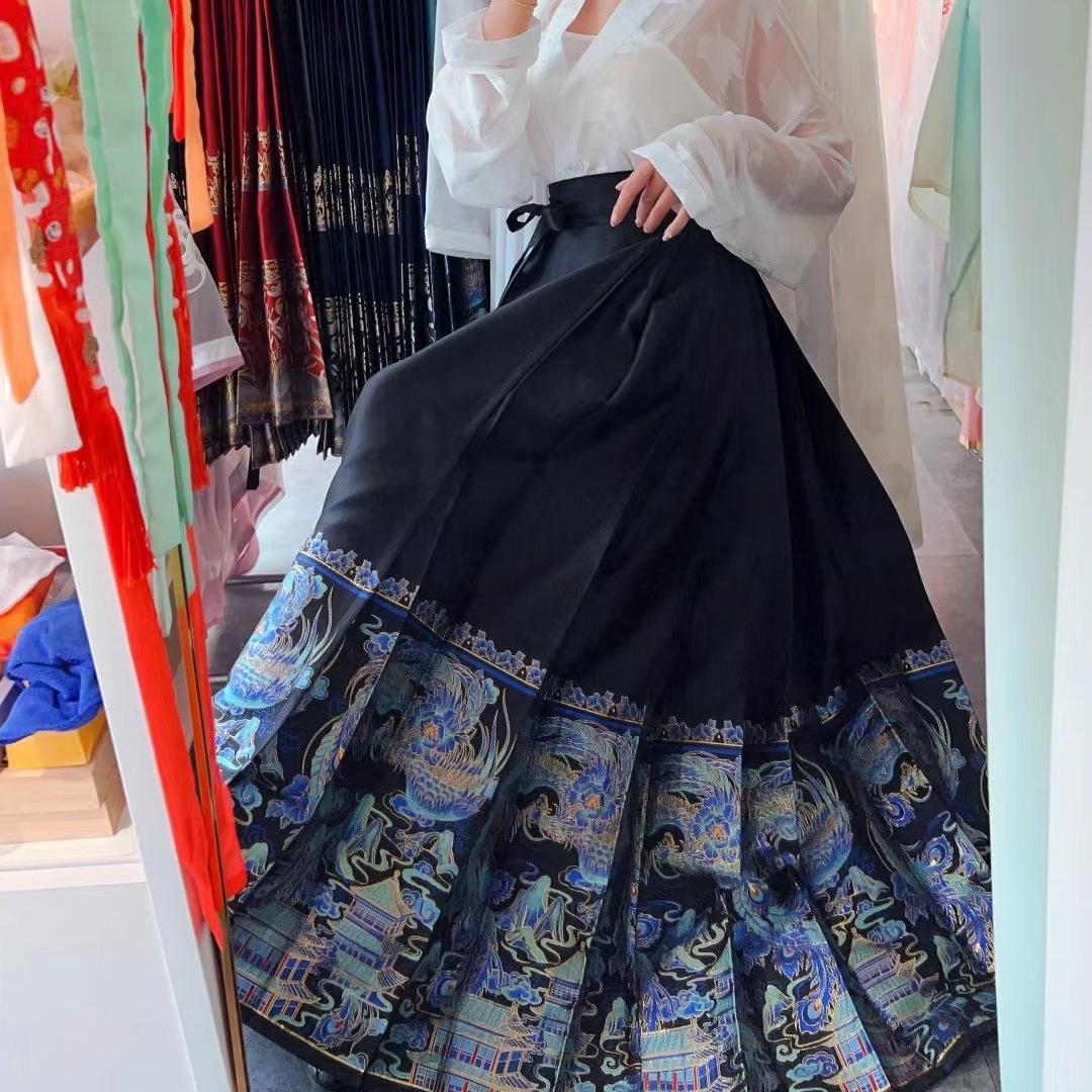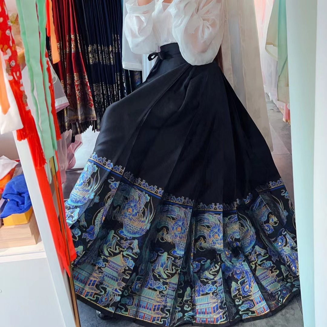 Ретро Макияж Цветок Новая Улучшенная юбка макси в китайском стиле тяжелая промышленность Волшебный Цвет Тканая Золотая макси юбка китайский стиль ханьфу женские ежедневные пригородные