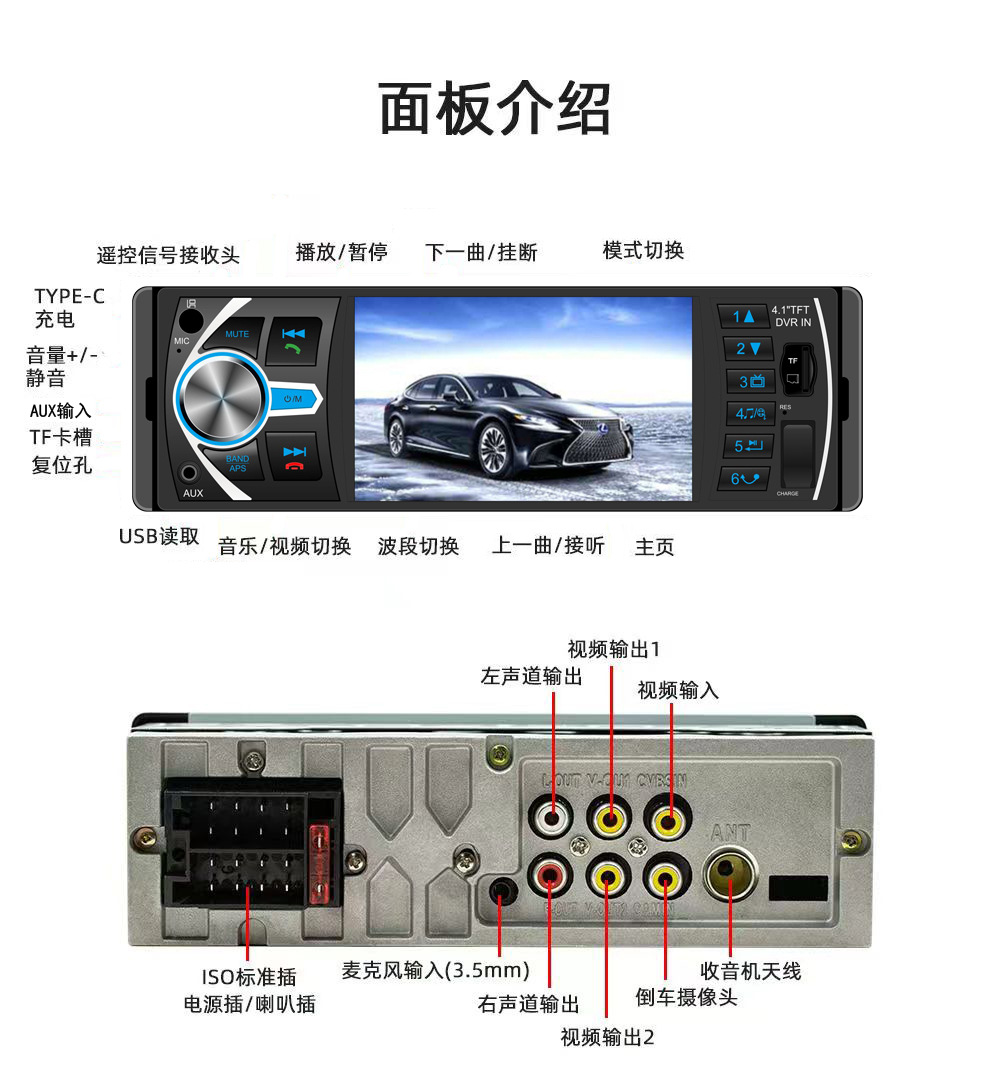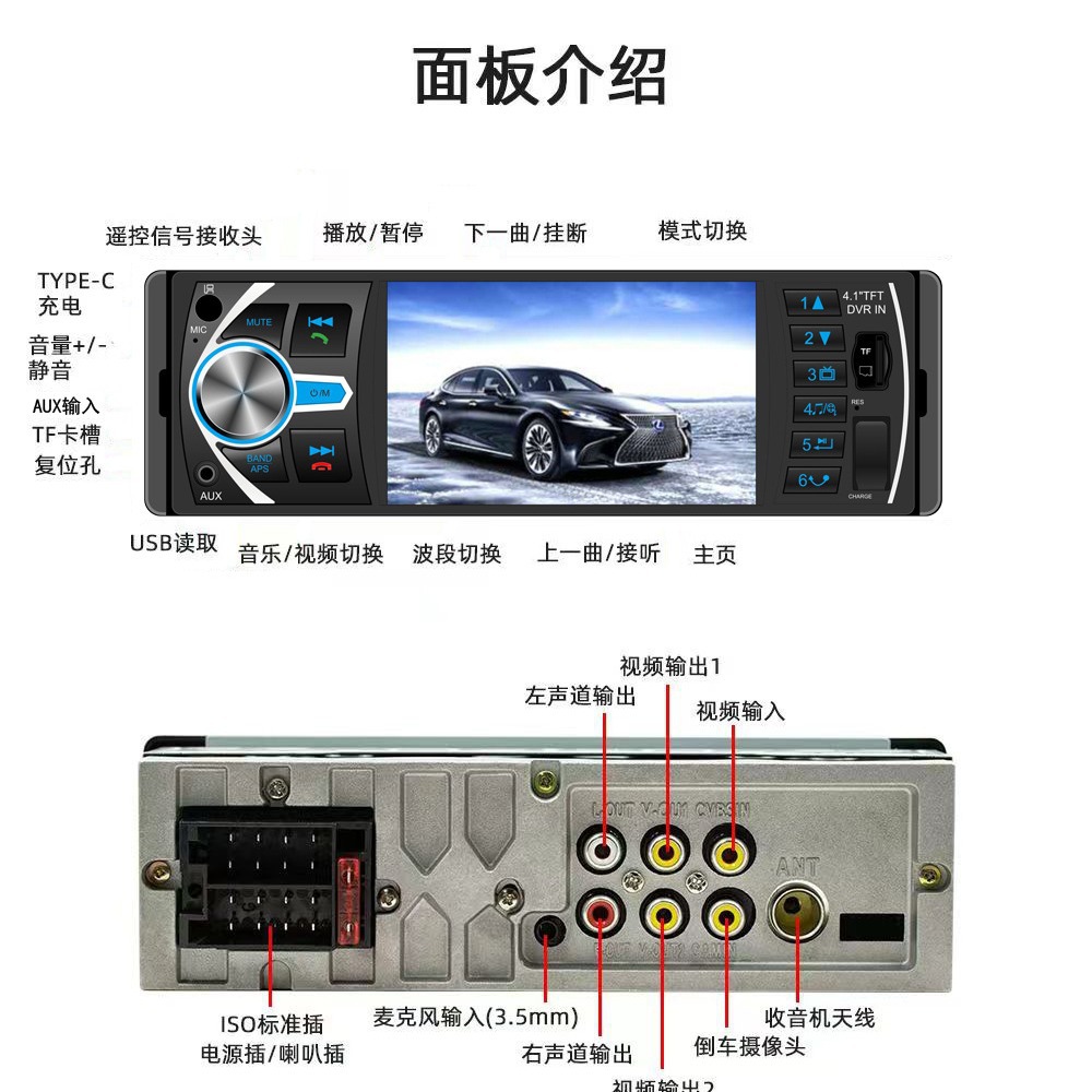 Автомобильный MP5-плеер с одним диском, слотом для USB-карты, Bluetooth-усилителем, радио и функцией приоритета заднего хода 4025B