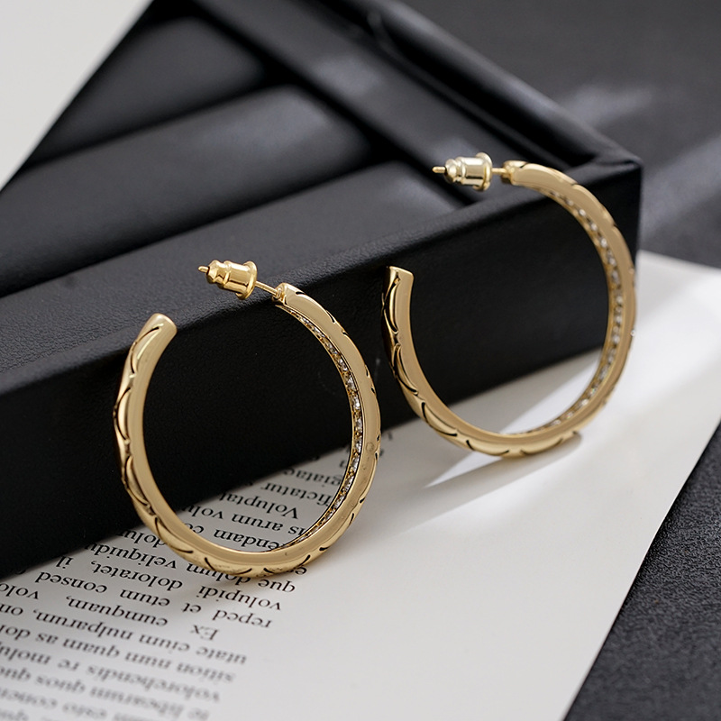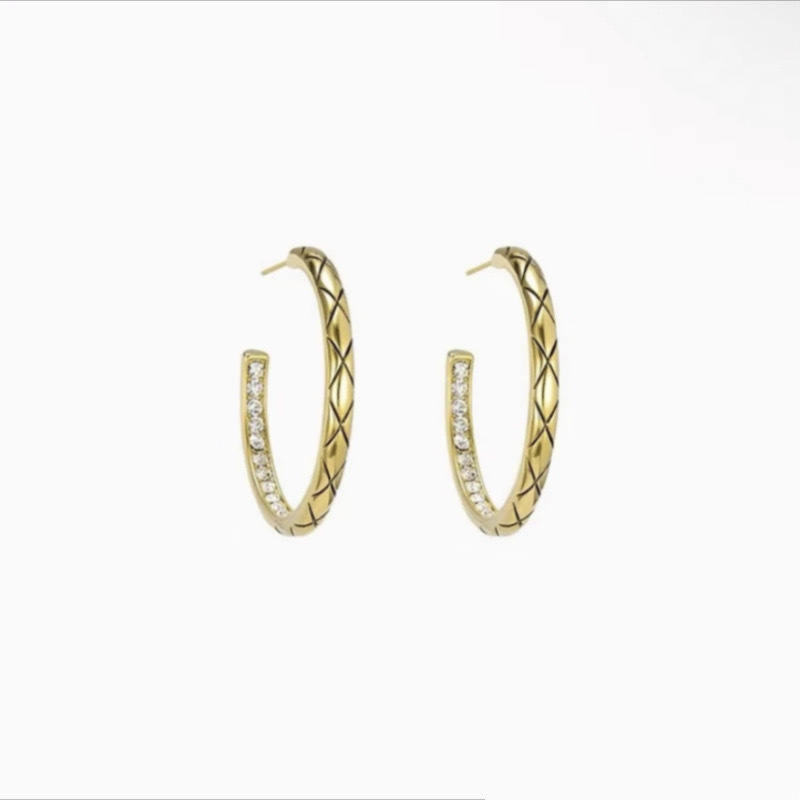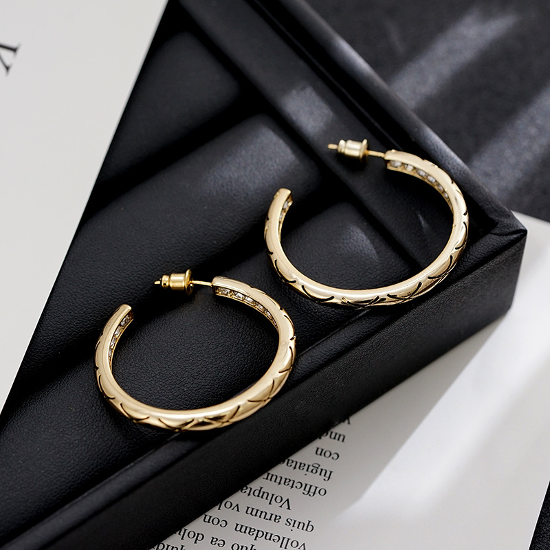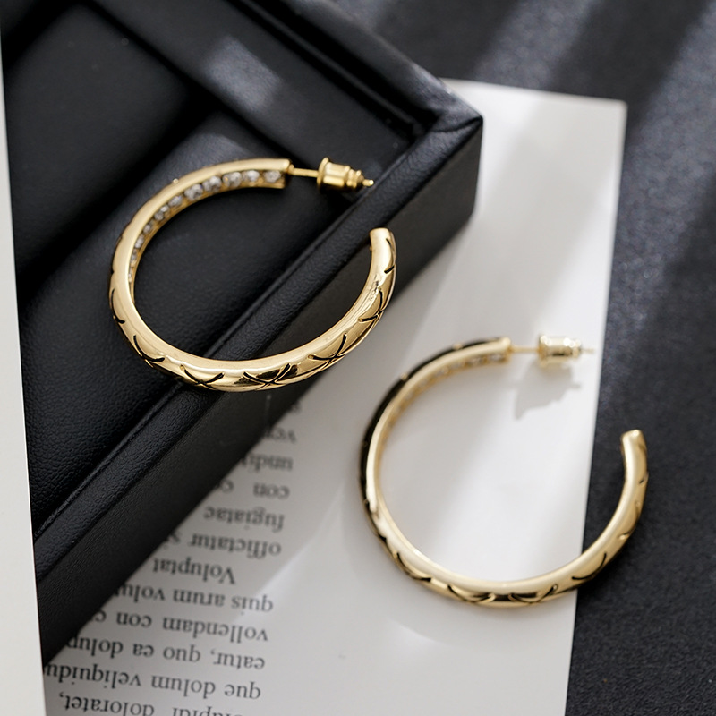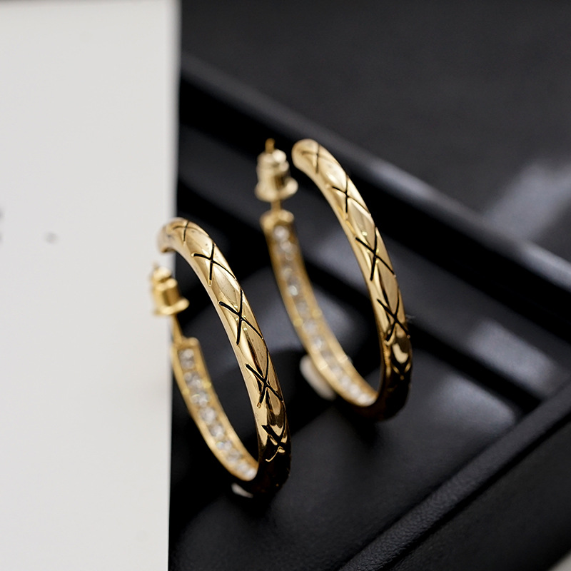 Серебряные серьги-кольца 925 пробы с ромбовидным узором для женщин, винтажные серьги-кольца в стиле Chanel, большие C-образные серьги, новая модель 2024 года