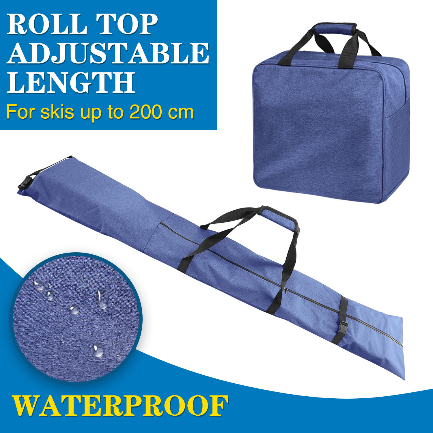 【适合大多数标准尺寸的设设计】软垫滑雪套适合大多数长度不超过 200 厘米的滑雪板。 足够宽大,可以将帽子、裤子、手套或护目镜放入里面。 独特的卷顶设计可缩短滑雪长度。 这款靴子包适合大多数 13 码以下的滑雪靴。