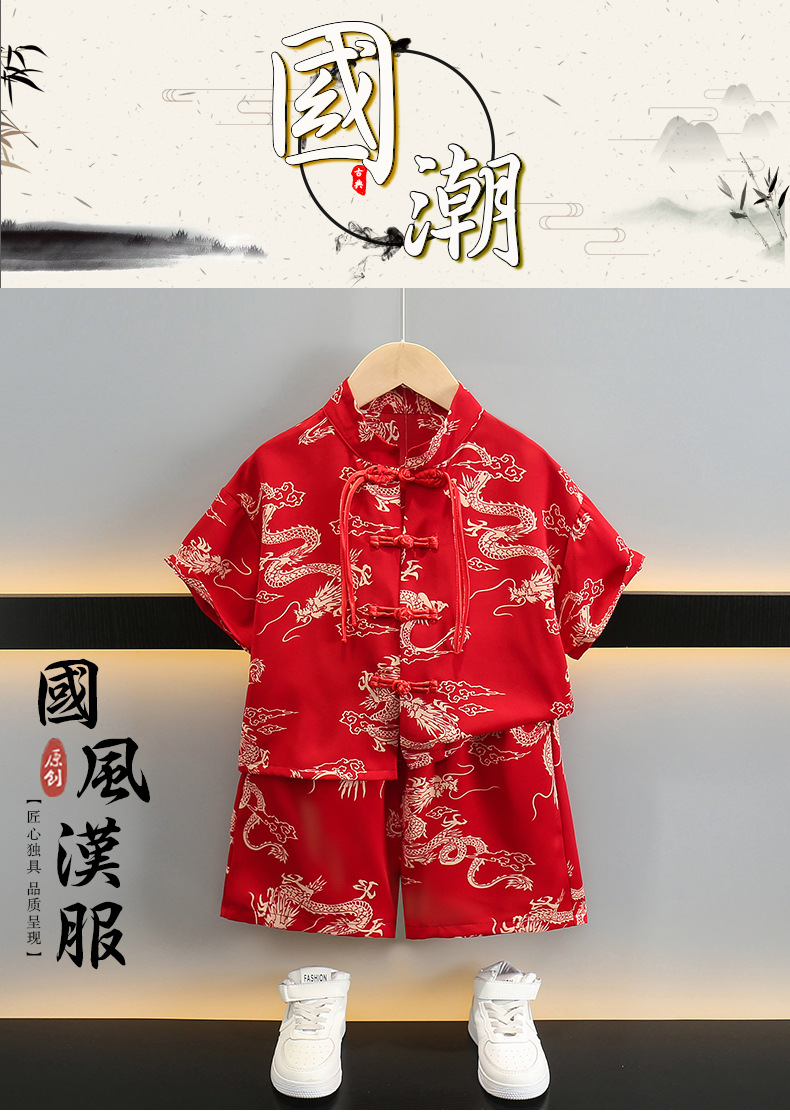 Детская Одежда для мальчиков Hanfu Детская летняя одежда костюм детский летний новый костюм в китайском стиле Tang одежда годовое платье
