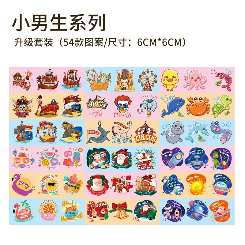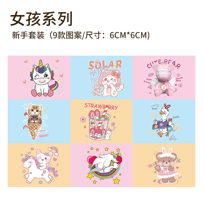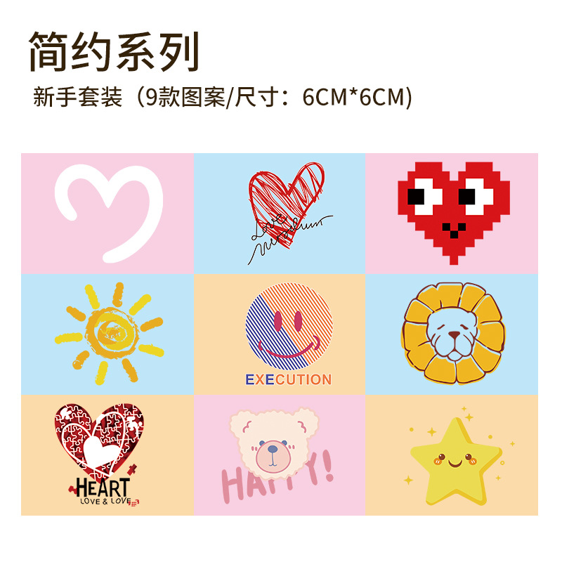 烫画贴尺寸:每个图案6*6CM;54张组合:20*7.5*0.5CM
