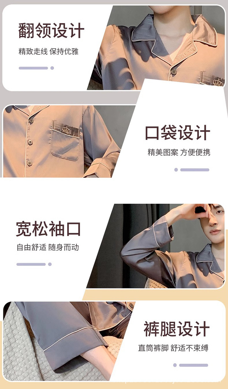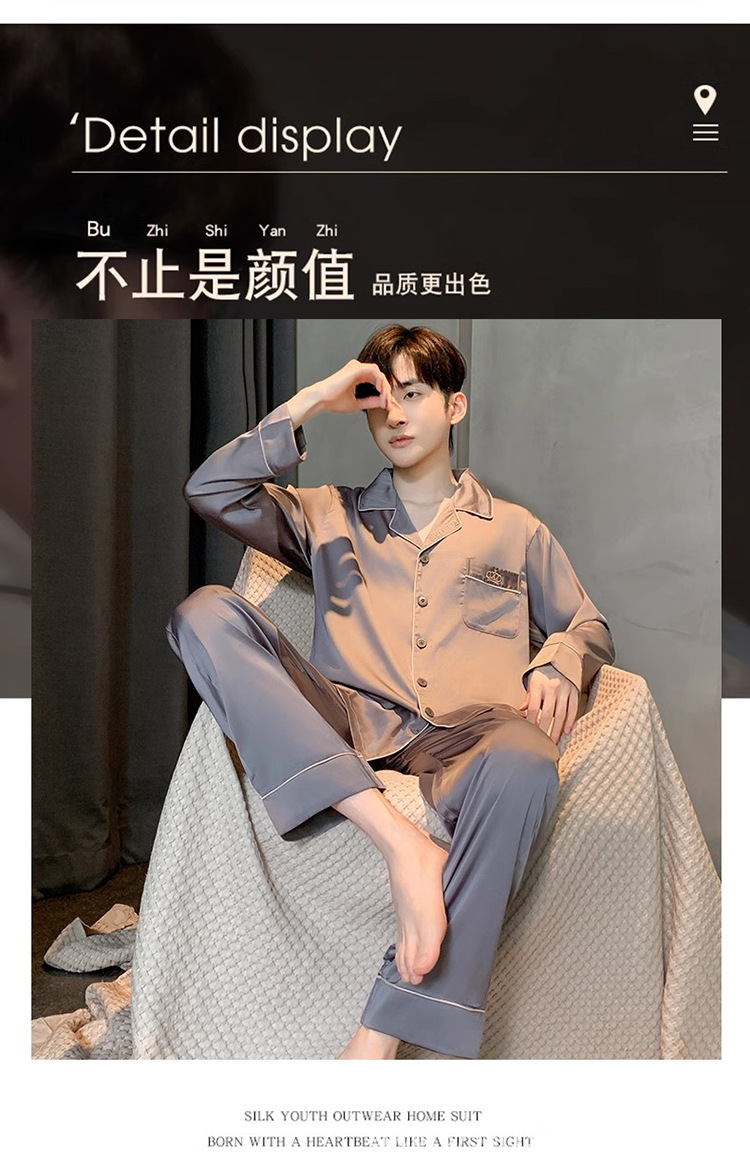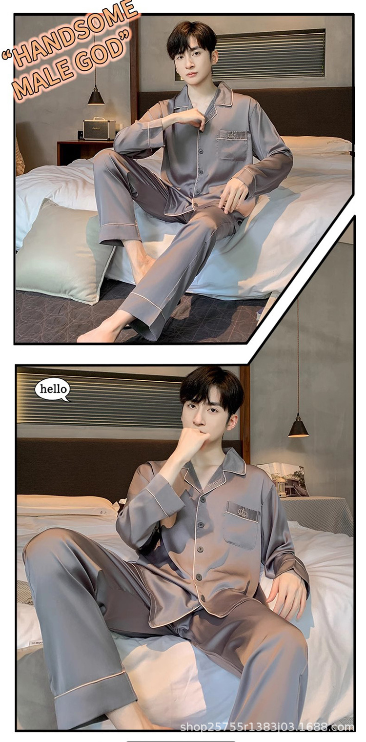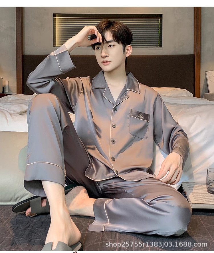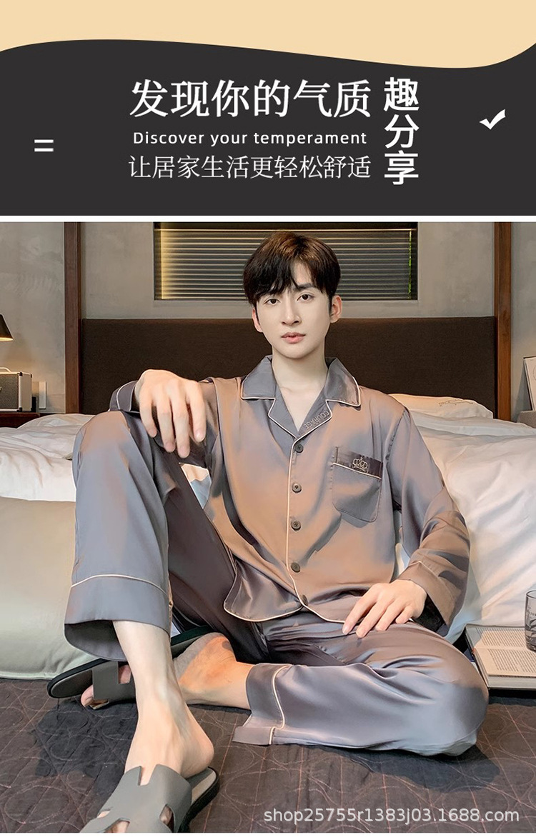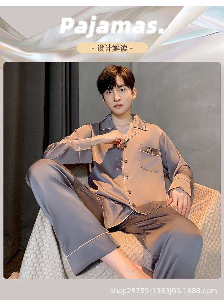 Пижамы мужские весенне-осенние, пижамы из ледяного шелка с длинными рукавами, новинка 2025, летние мужские тонкие шелковые домашние носимые домашние одежды
