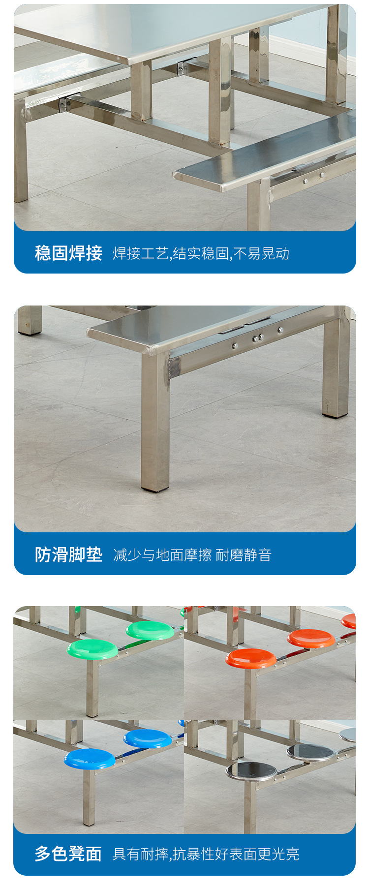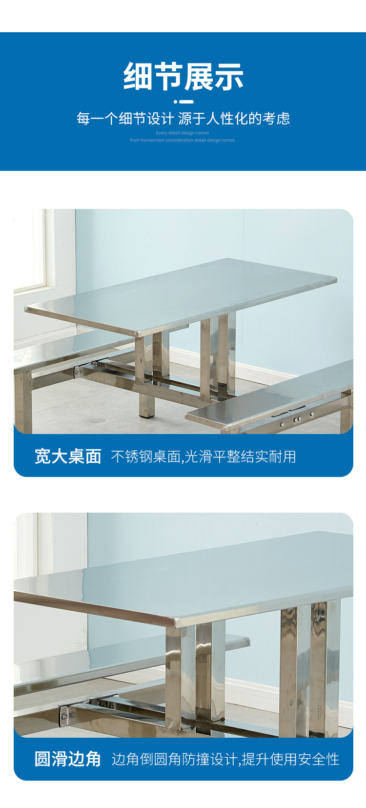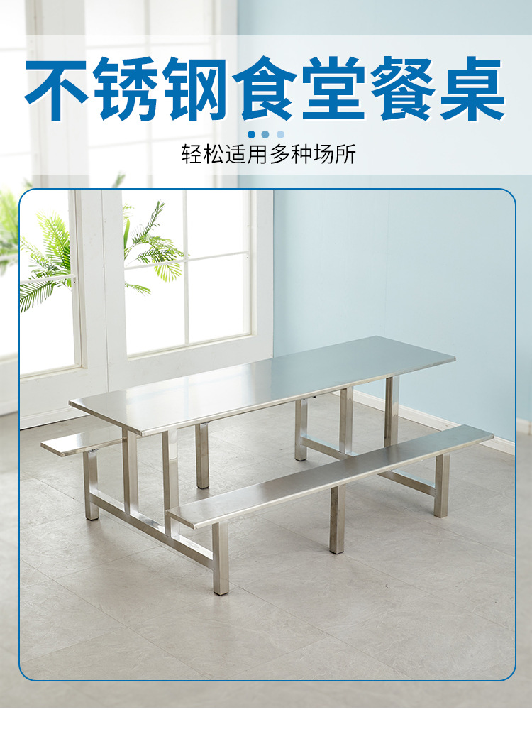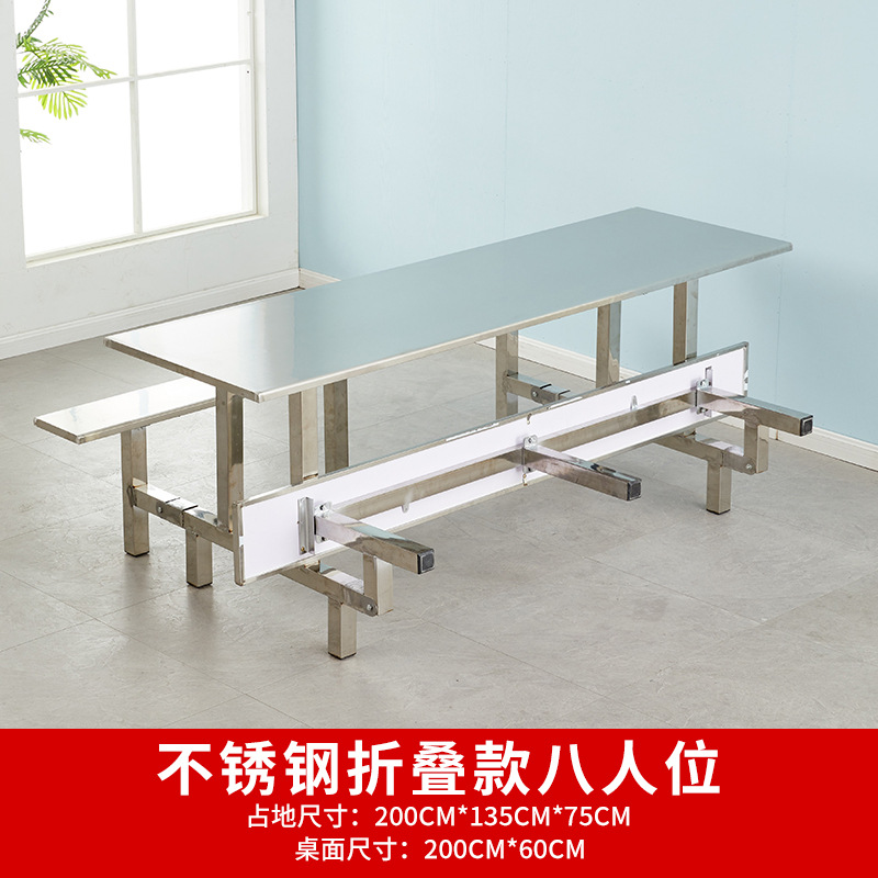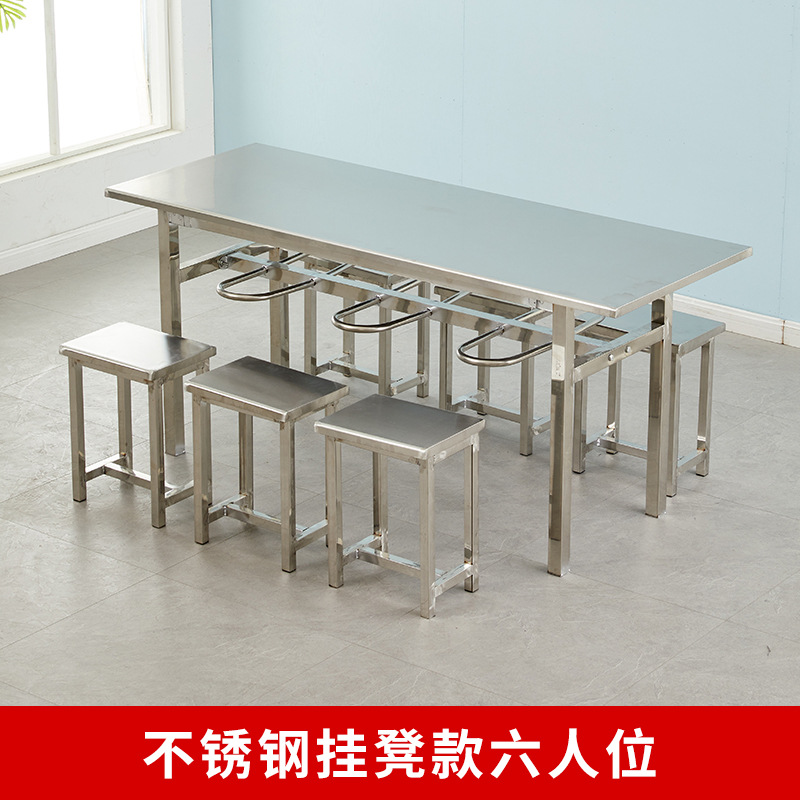 Школьная столовая, обеденный стол и стулья из нержавеющей стали, 4 человека, 6 человек, 8 человек, заводская столовая для персонала, соединенная комбинация обеденного стола и стула быстрого питания