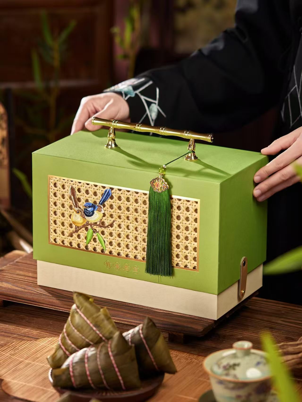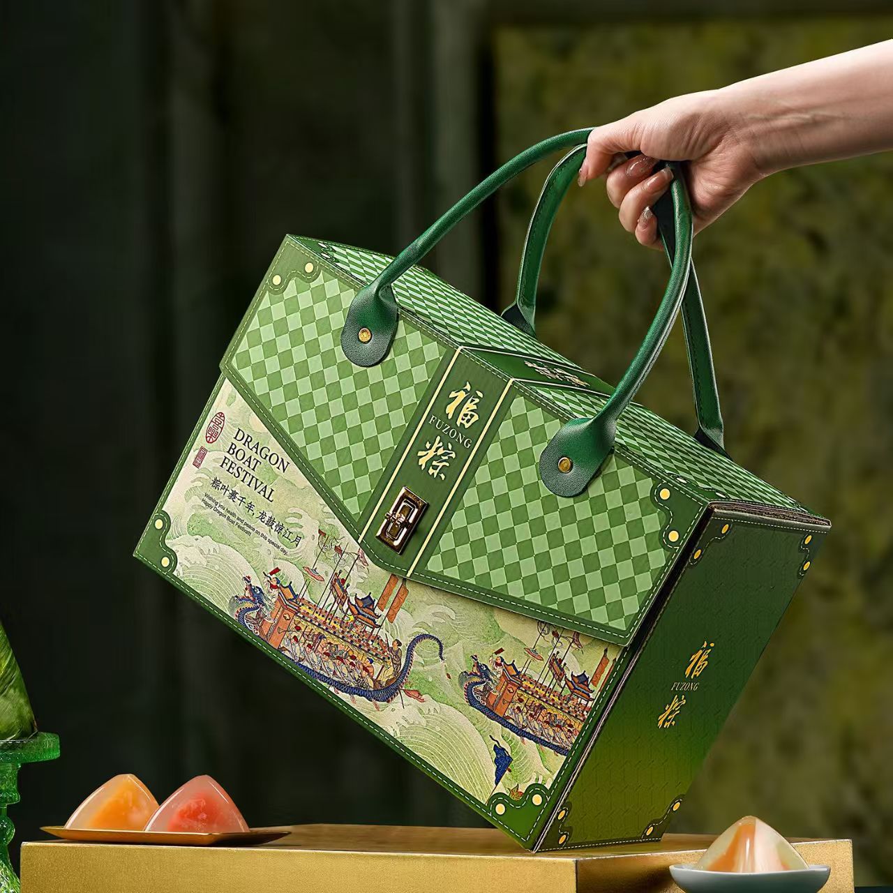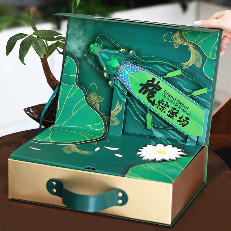 Индивидуальная высококачественная двухслойная вращающаяся подарочная коробка для рисовых пельменей на фестивале драконьих лодок, креативная трехмерная сумка, упаковочная коробка для рисовых пельменей, модель с двумя дверями