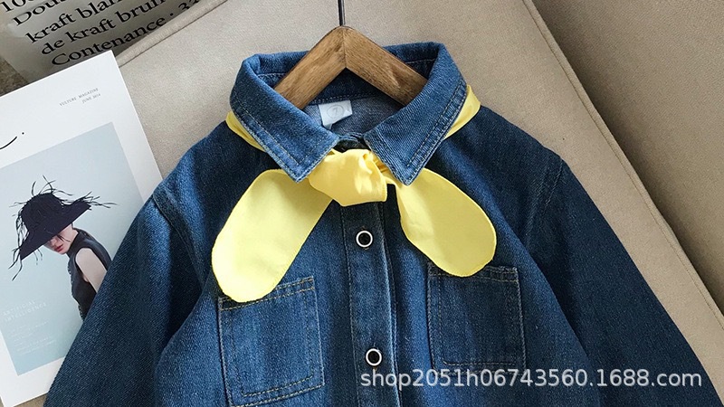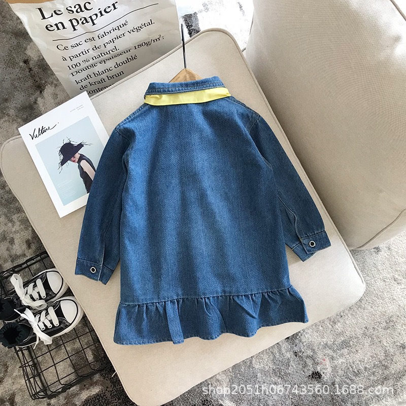 Джинсовая юбка для девочек, детская весна и осень, корейское новое платье с длинными рукавами
