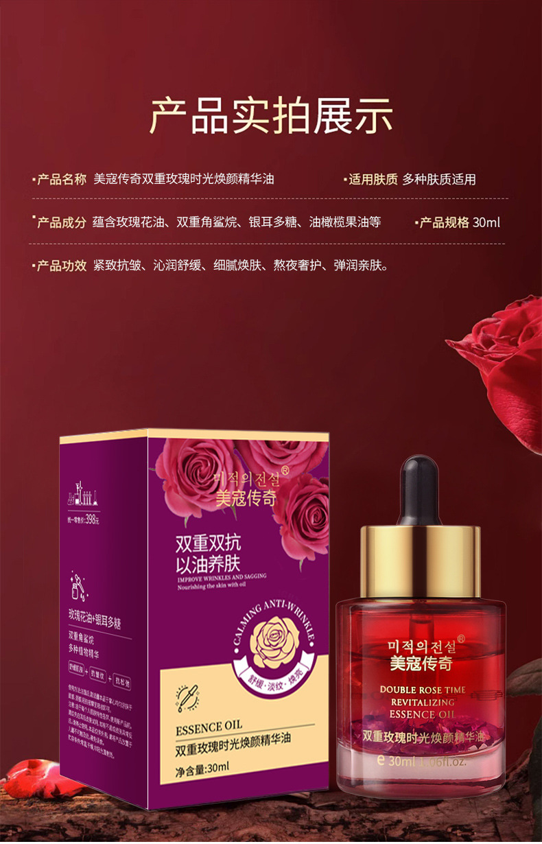 Hot Double Rose Time осветляющее эфирное масло против морщин, укрепляющее розовое масло, эфирное масло розы, эссенция розы против морщин