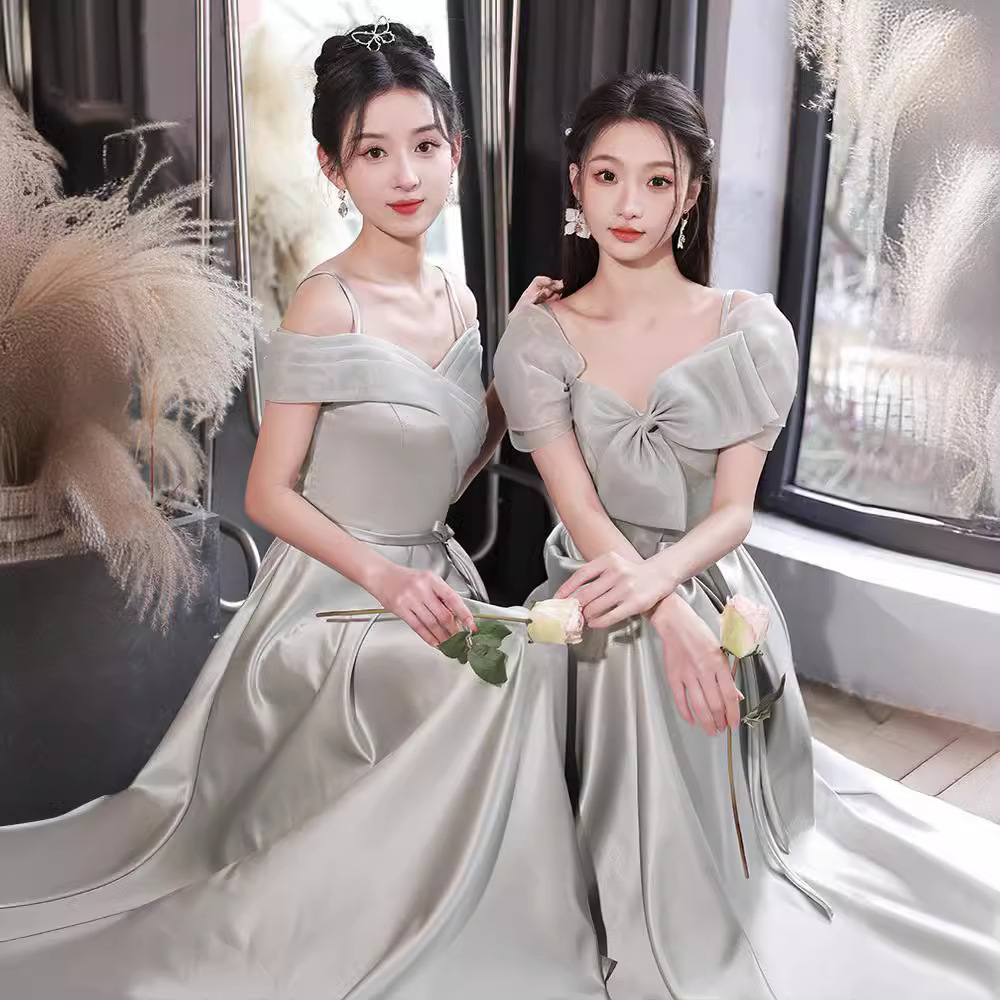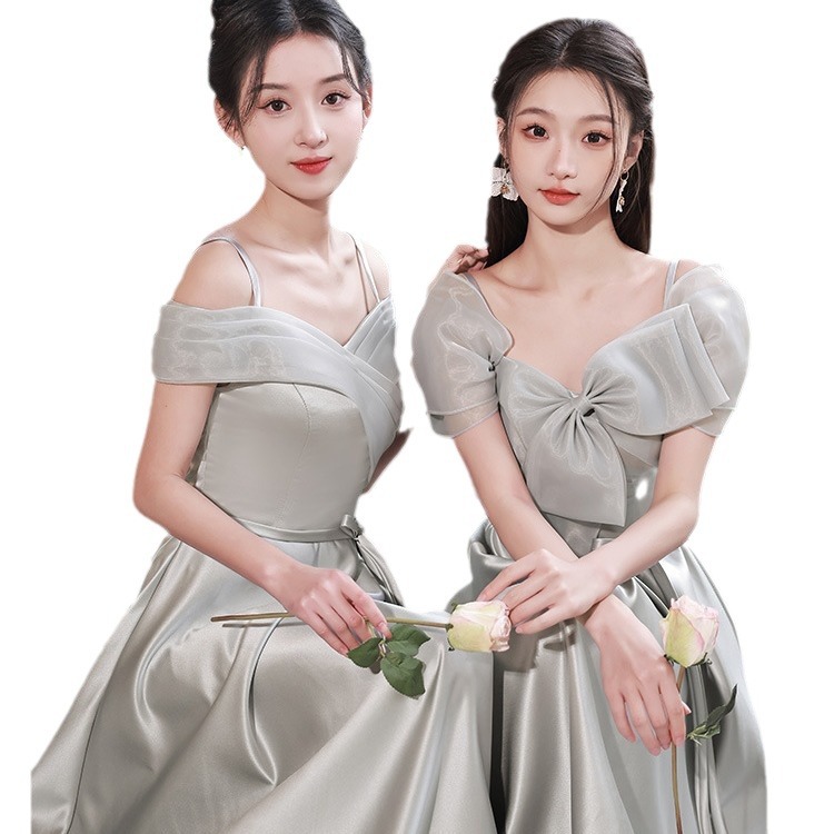 Серый платье невесты 2024 Новый сестры невесты платье сестры платье атласная Простой ниша платье женская мода