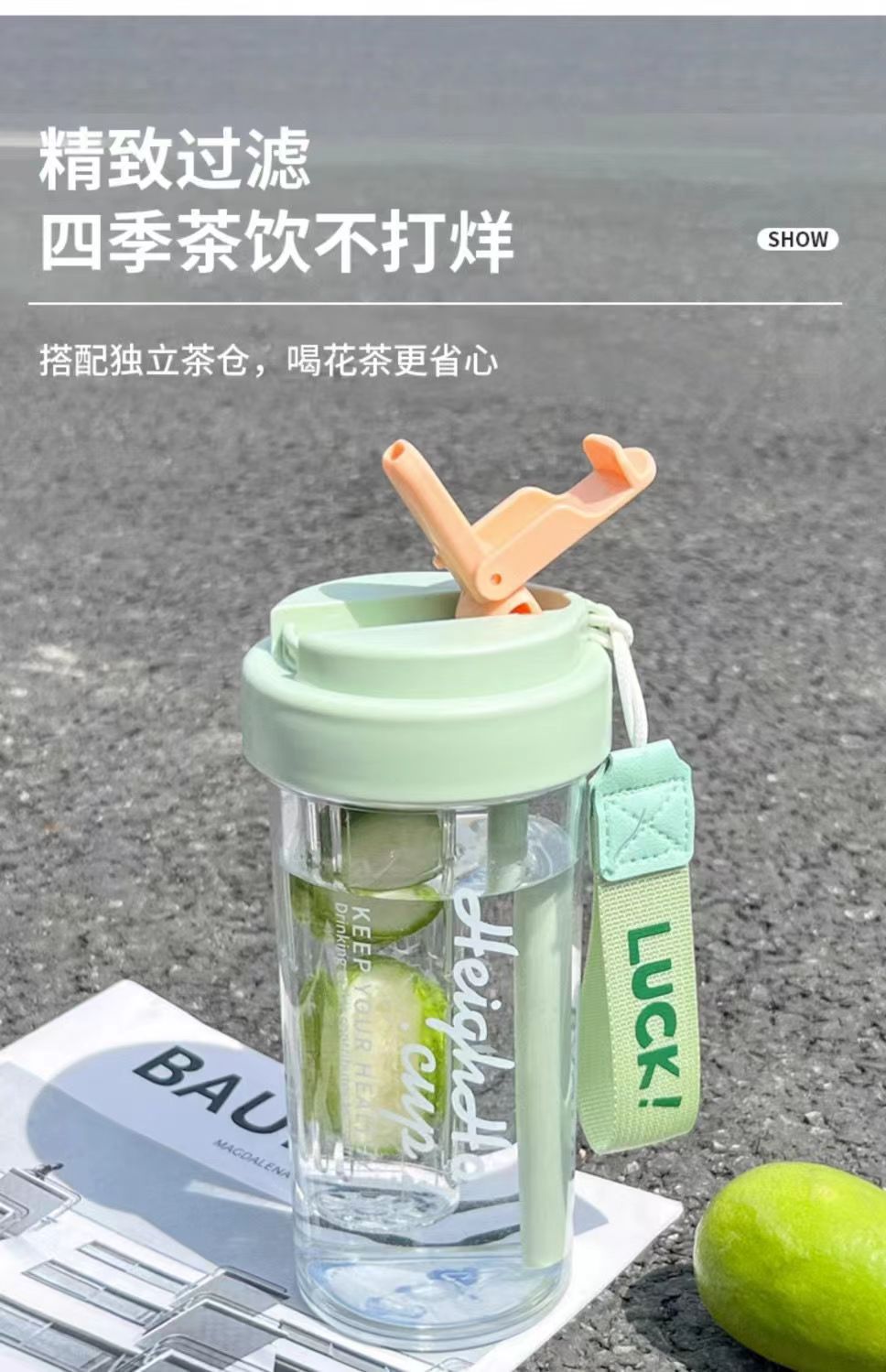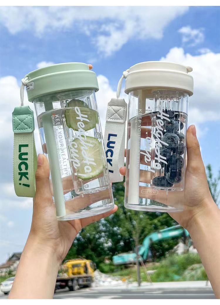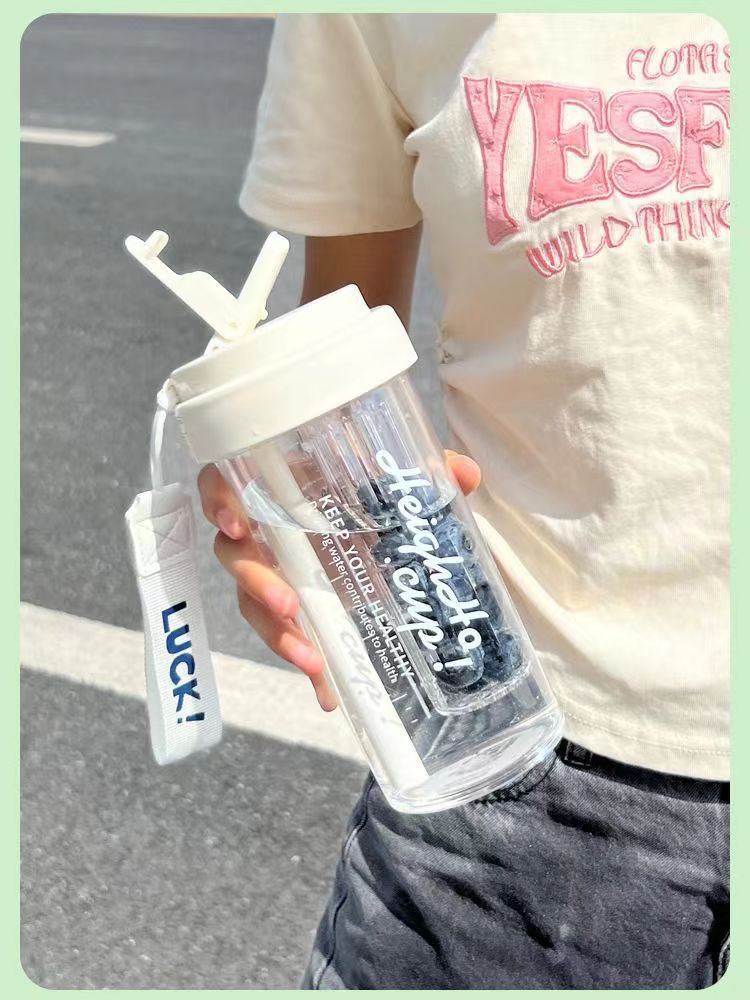 Летняя чашка для воды для девочек Высокий вид 2023 новый стиль с чайной перегородкой соломенная чашка летняя термостойкая чайная чашка интернет-знаменитостей