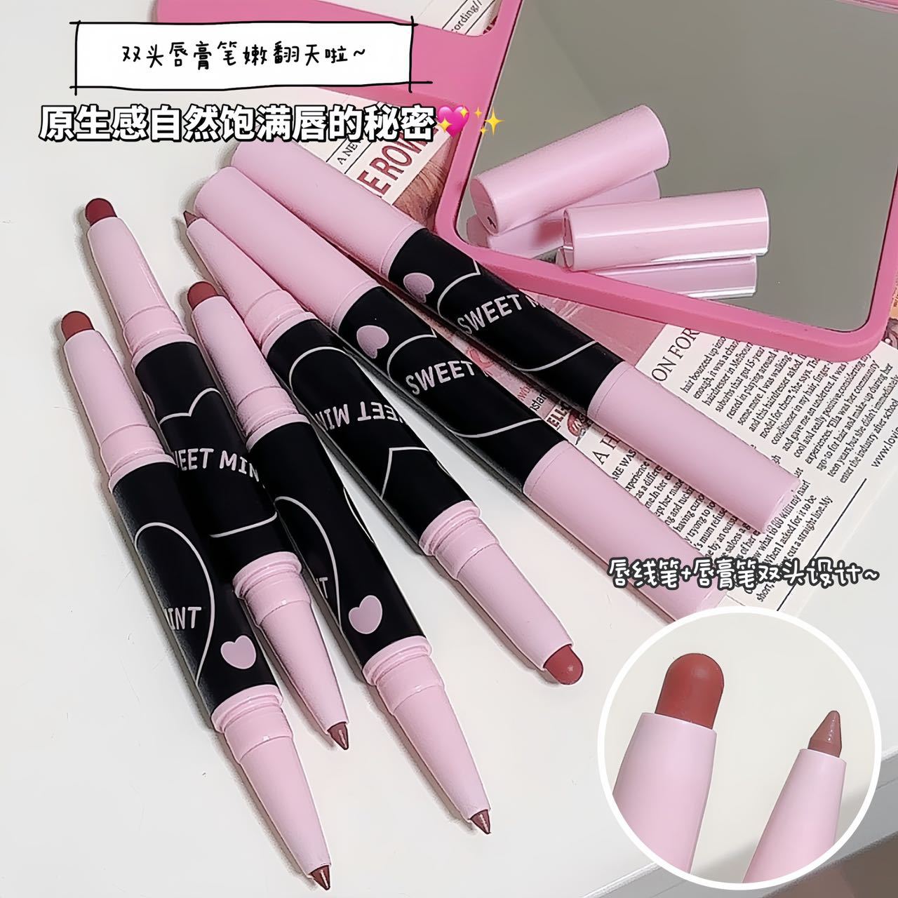 SWEETMINT Двуглавый бальзам для губ Карандаш для губ Губная помада два-в-одном контур форма губ матовый двухглавый карандаш для губ